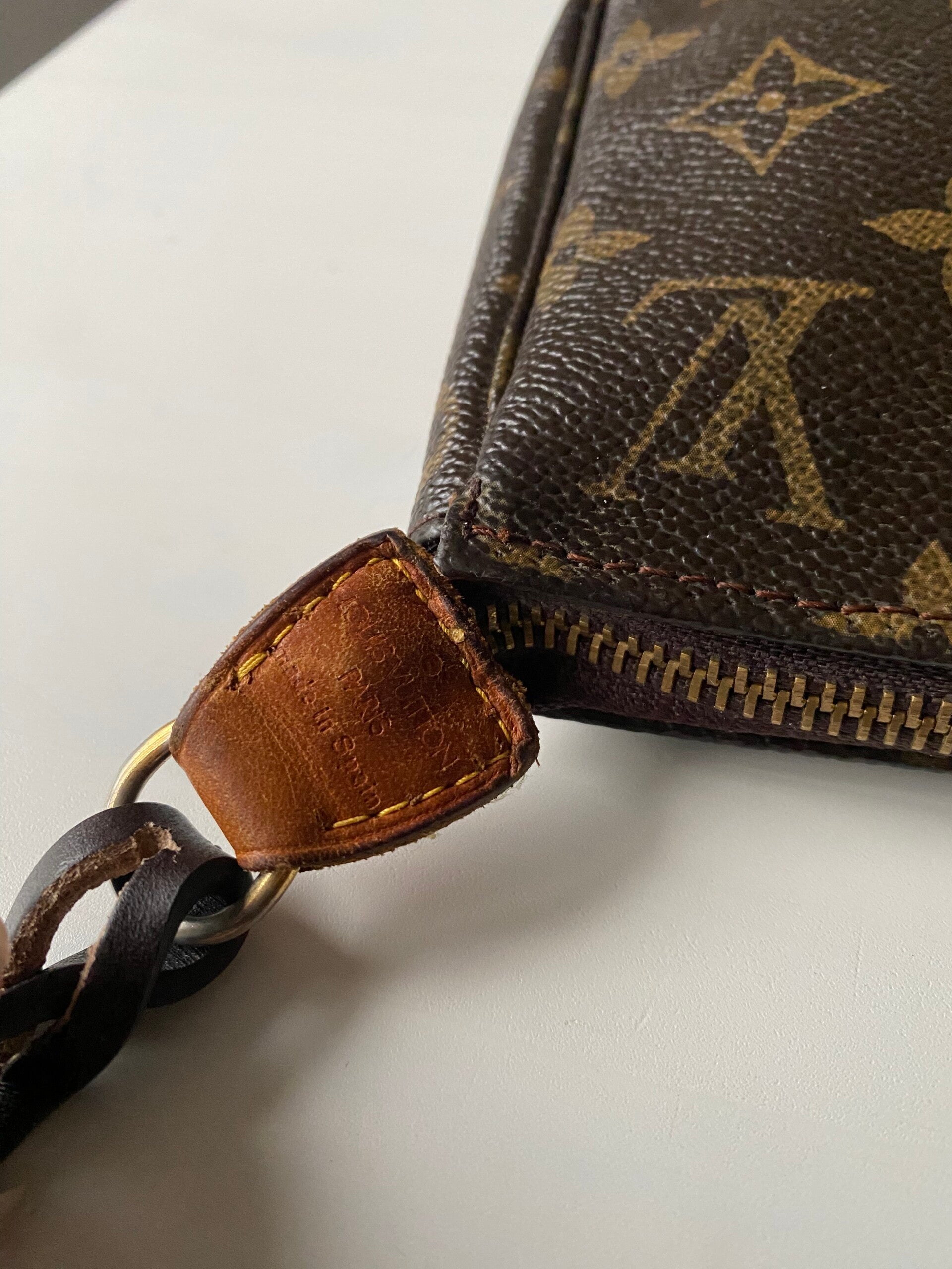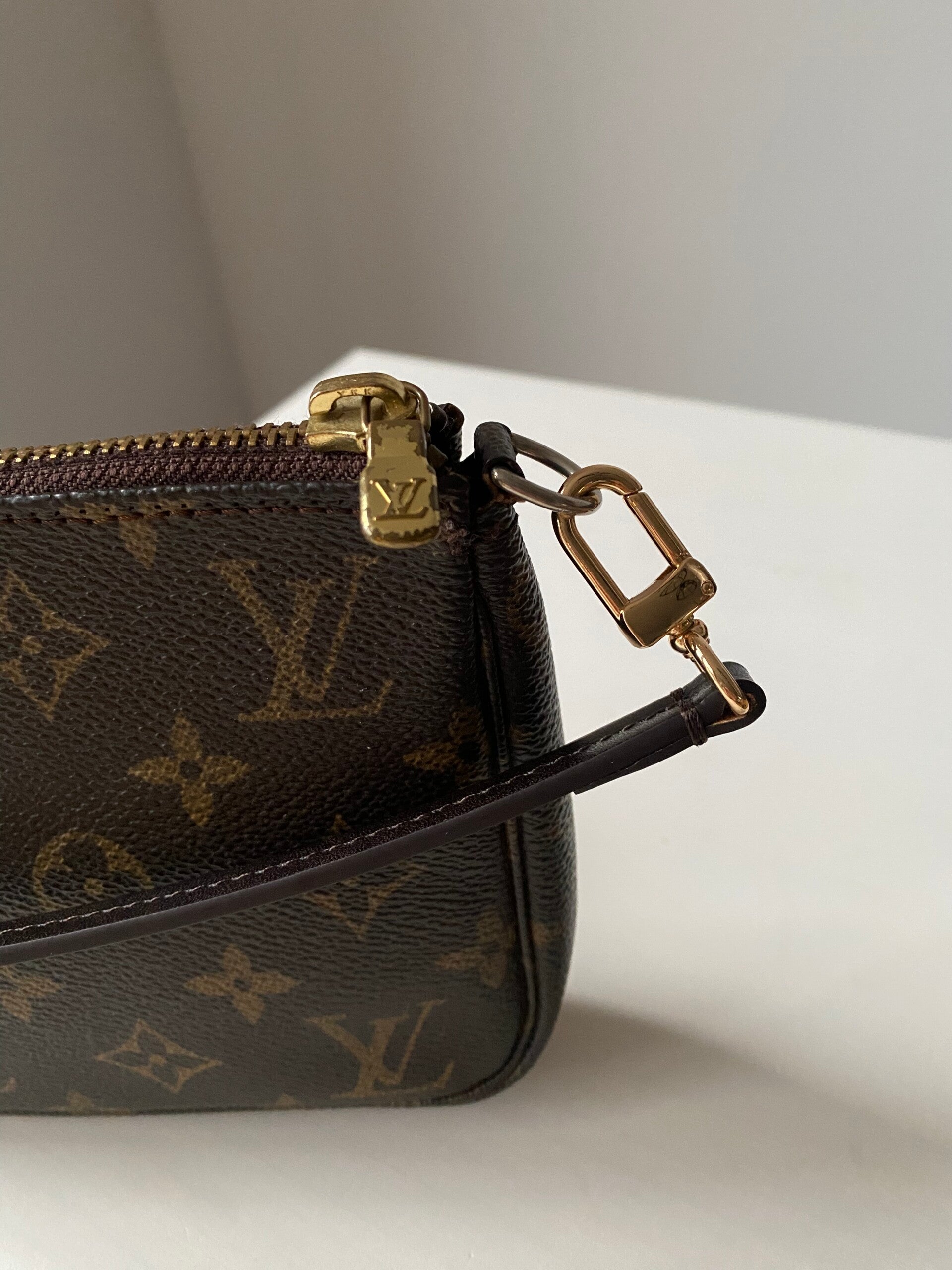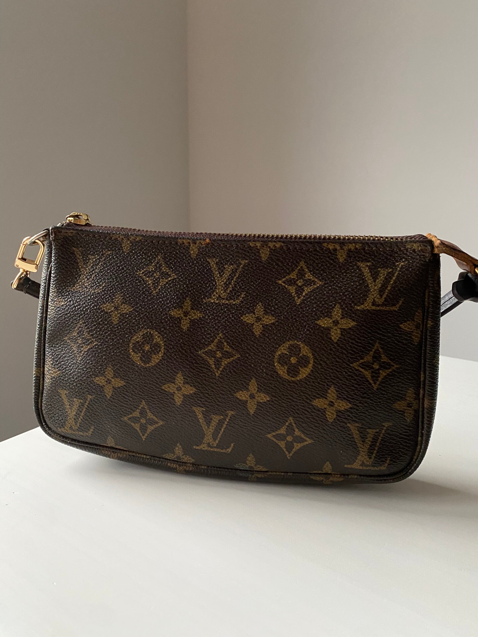 Louis Vuitton pochette accessoires in good condition. Comes with non branded strap and replaced zipper.