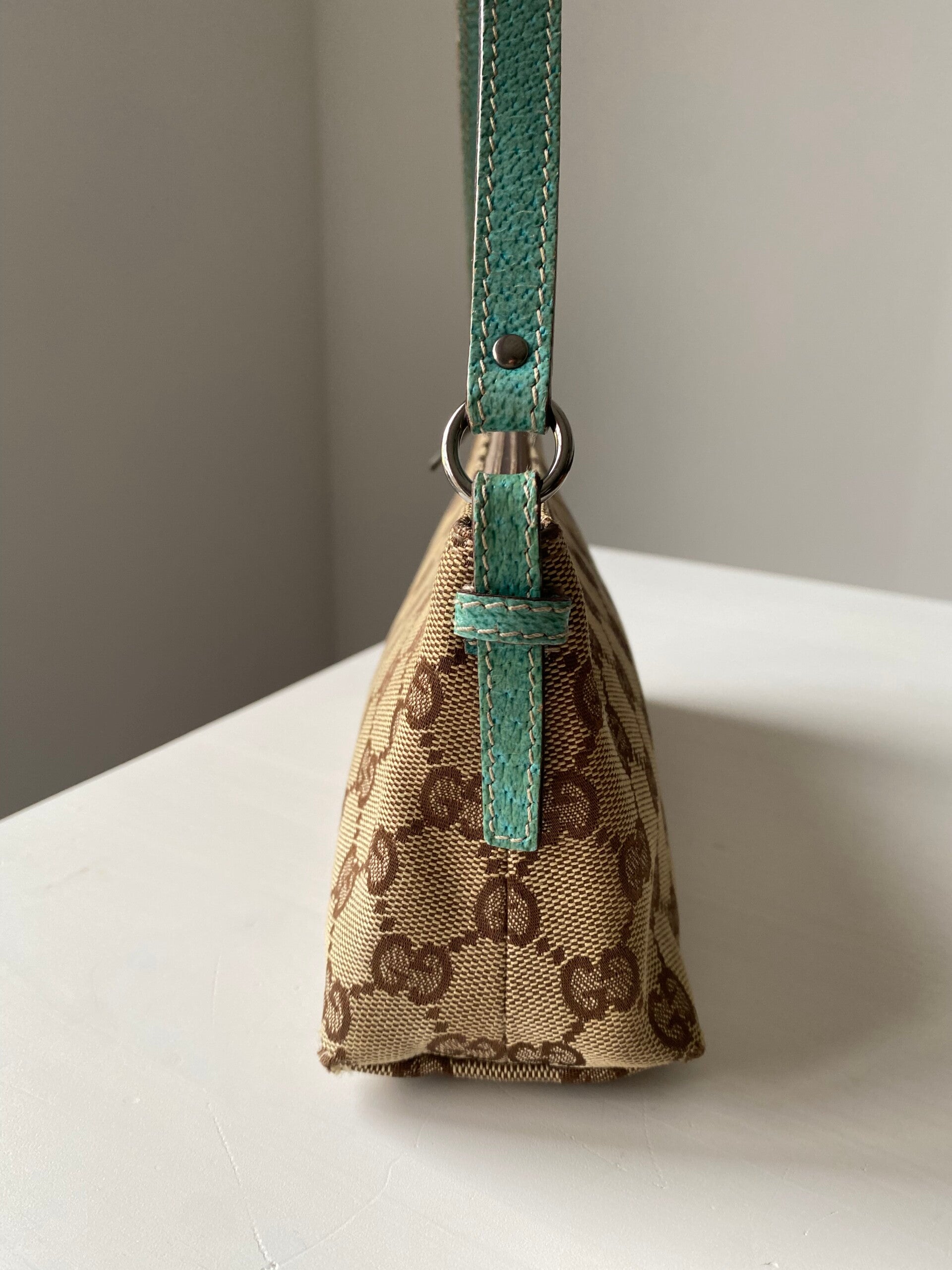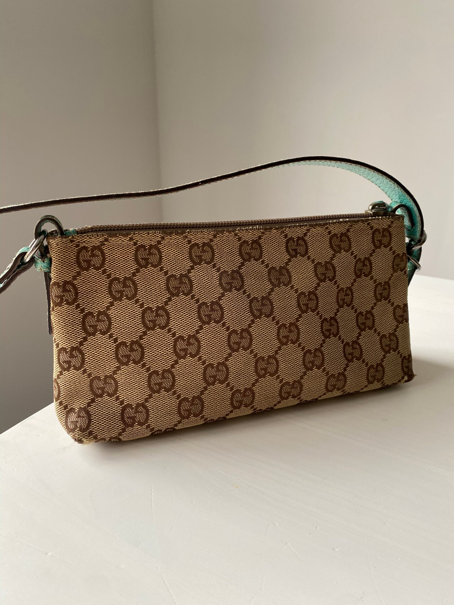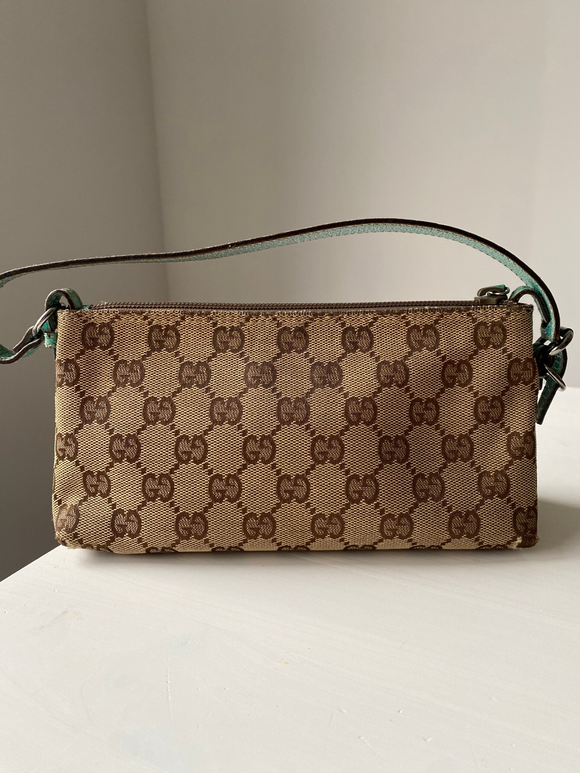 Gucci monogram pochette in very good condition. Some wear on the corners.