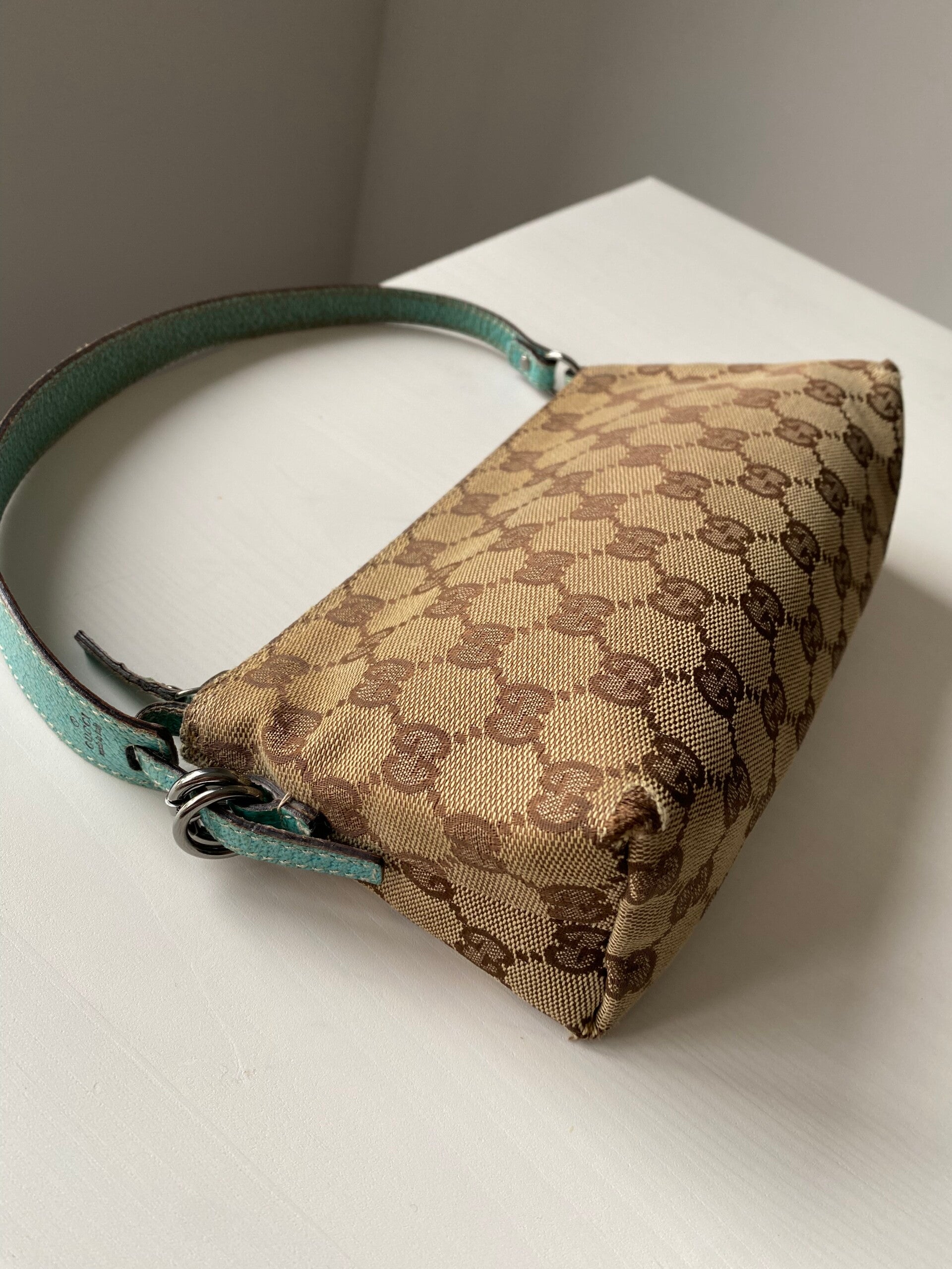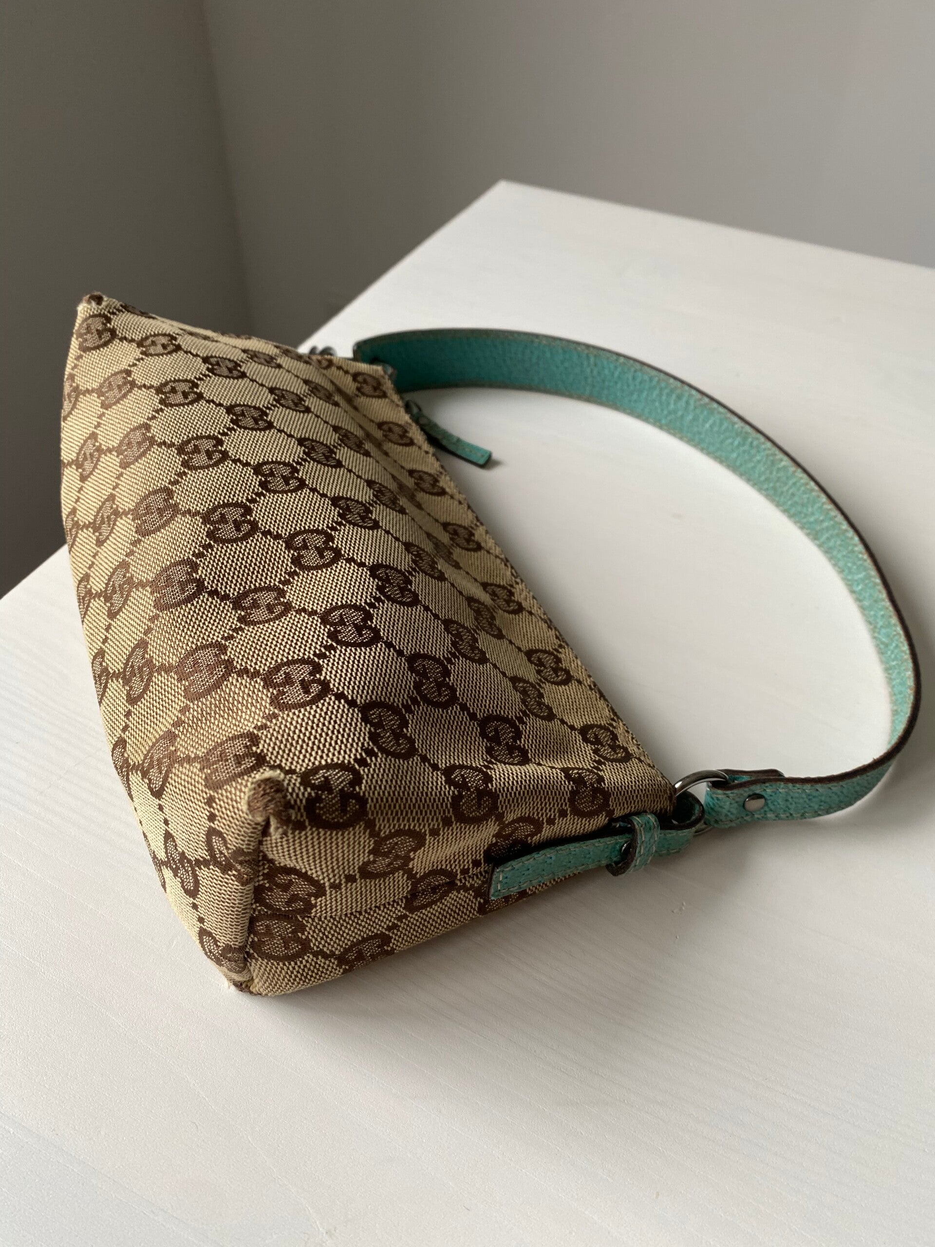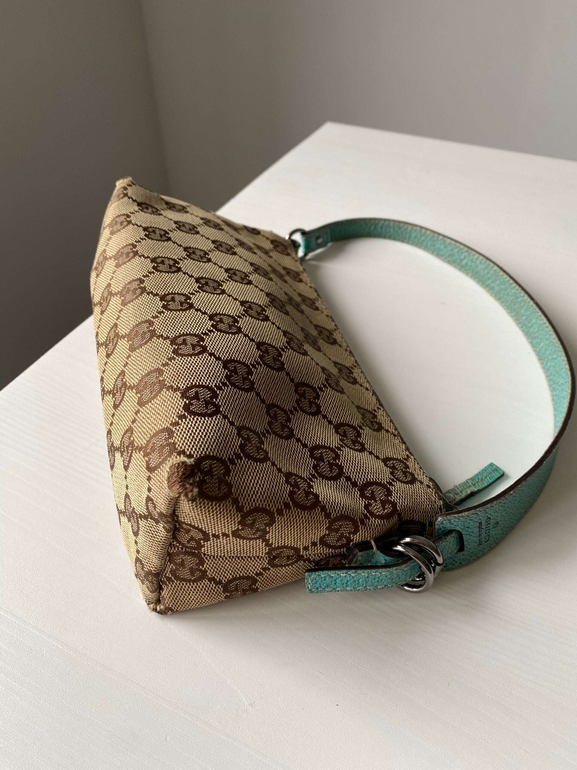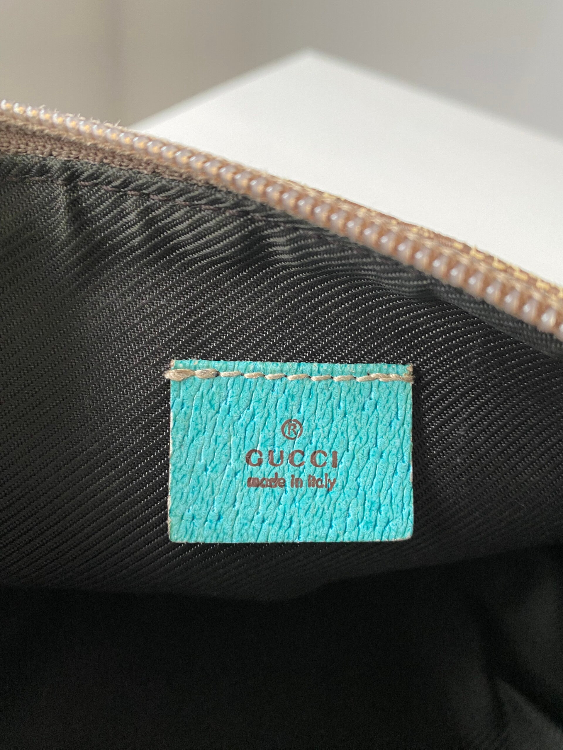 Gucci monogram pochette in very good condition. Some wear on the corners.