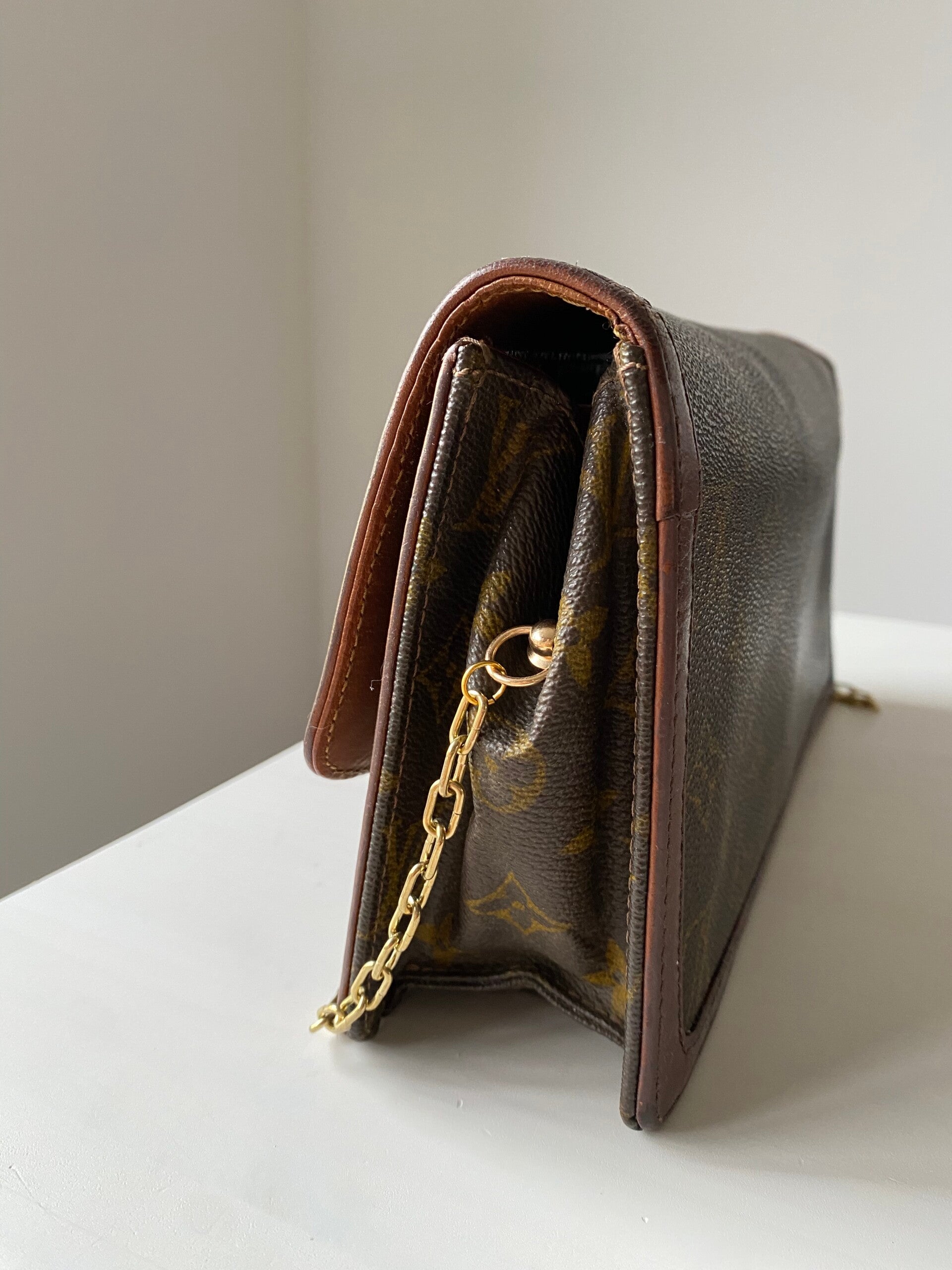 Louis Vuitton dame GM in very good condition. The closure does close, but doesnt work very well. The strap is non branded.