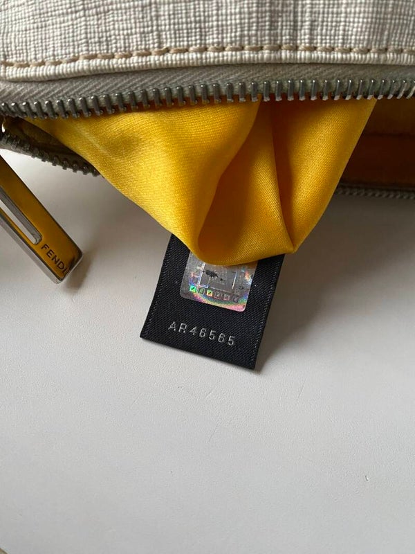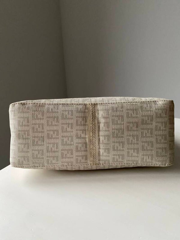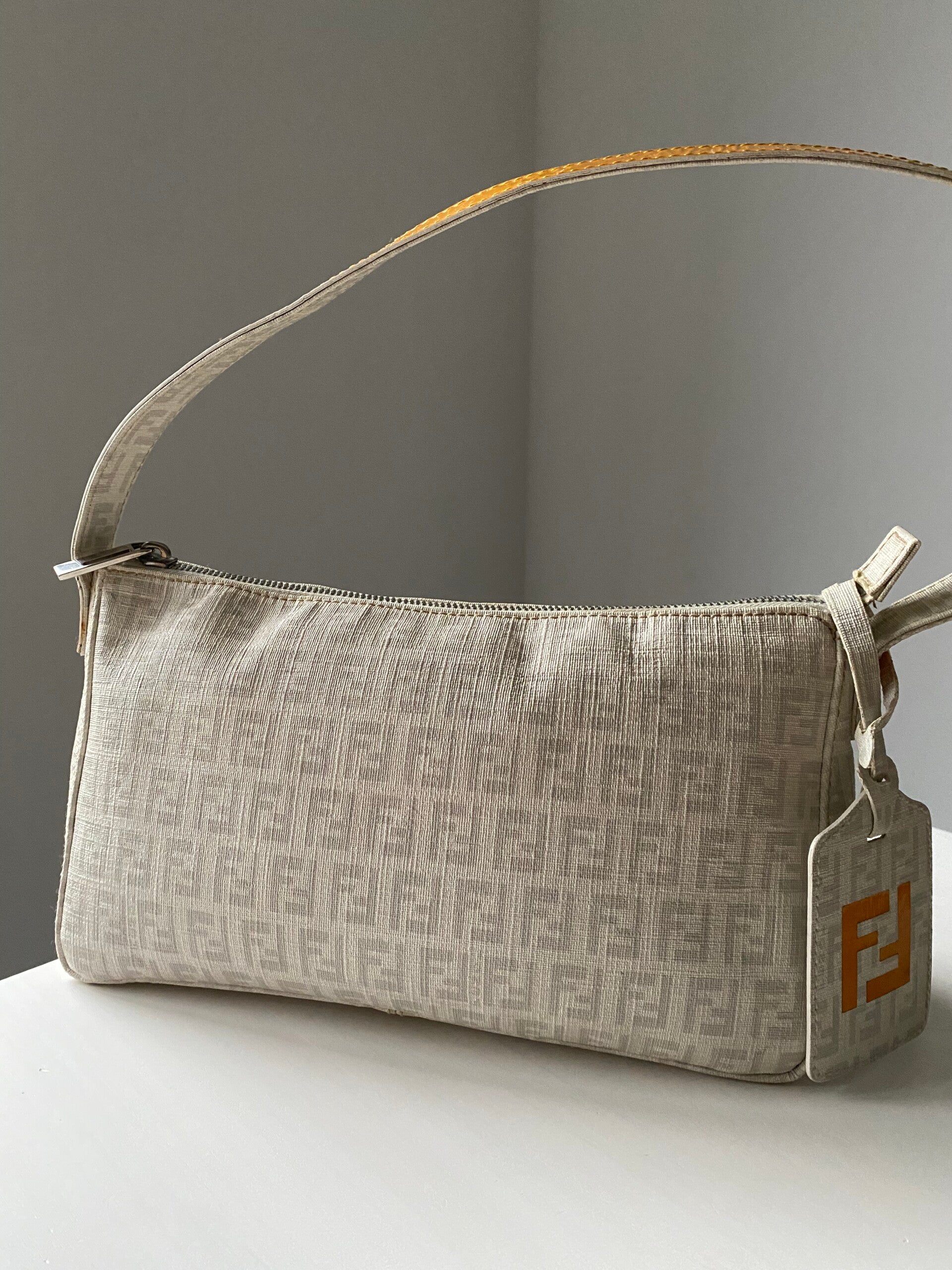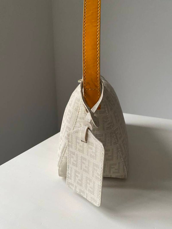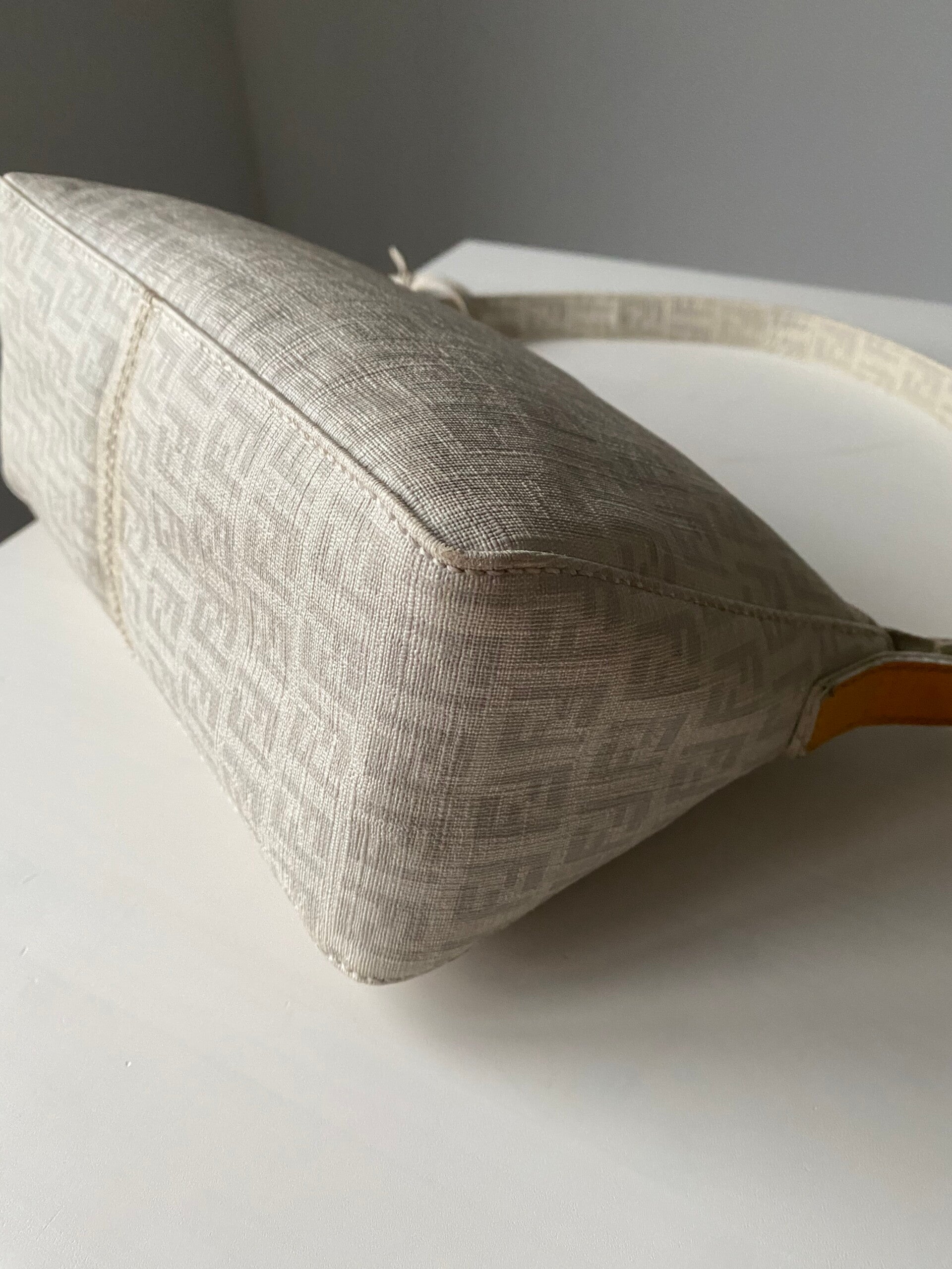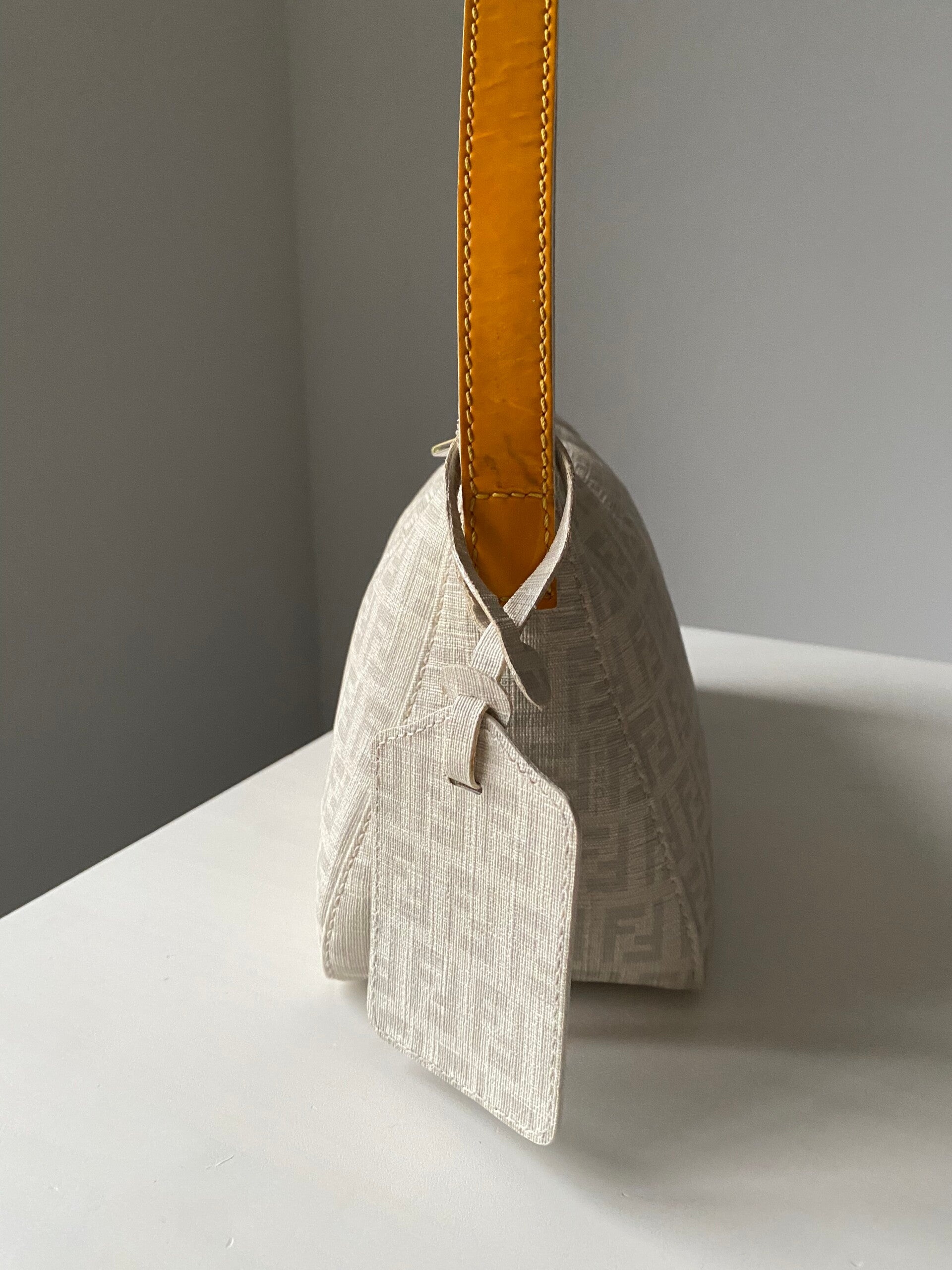 Fendi monogram pochette in very good condition. A small part of the bottom is discolored (pictures 2&4). Small discoloration on strap (picture 11).