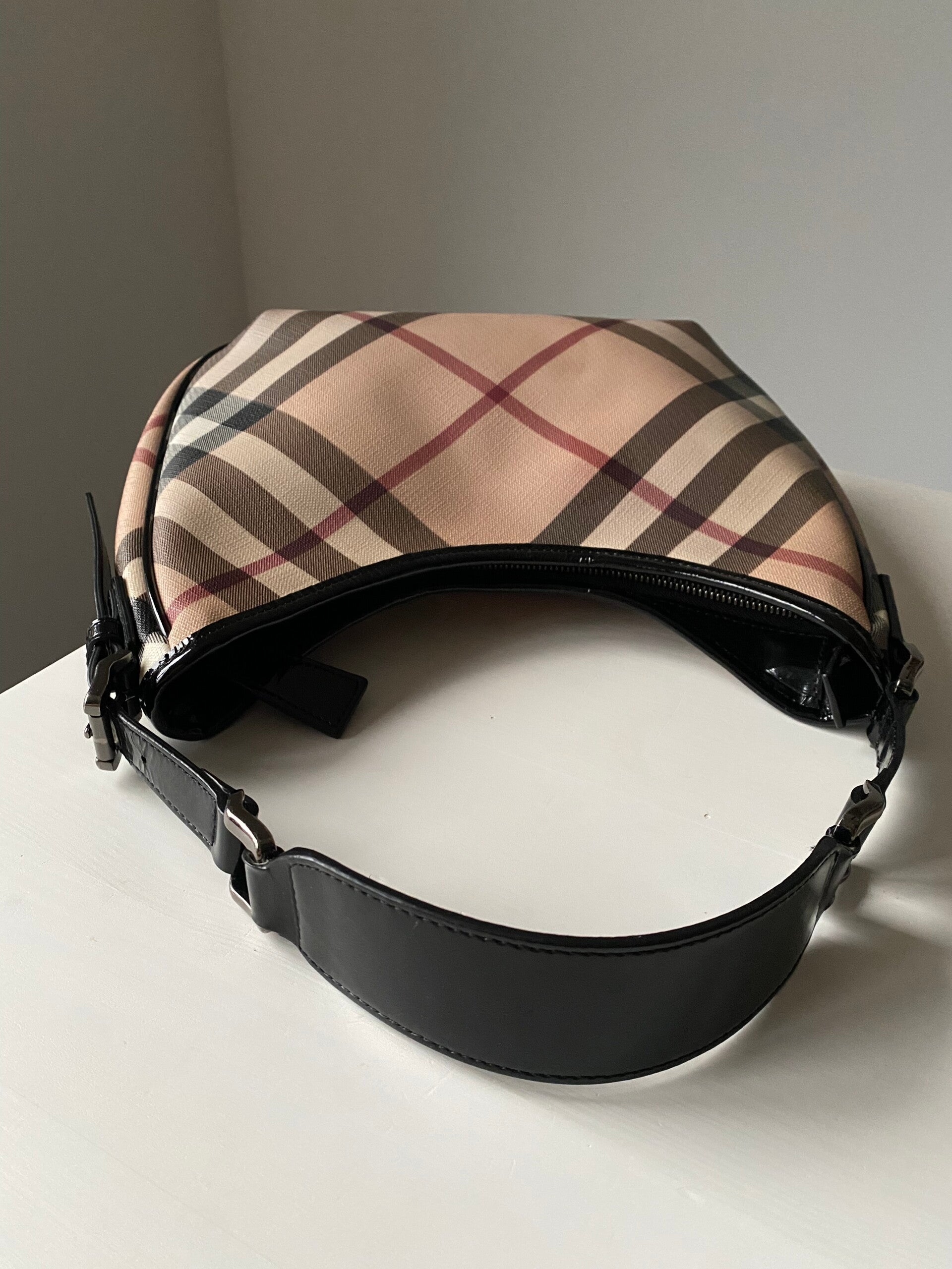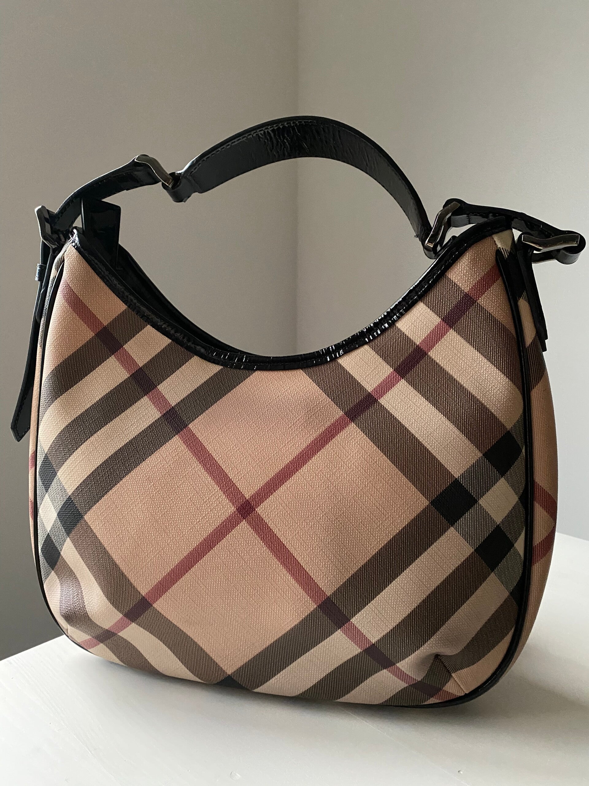 Burberry shoulderbag in good condition. Slightly discolored canvas.