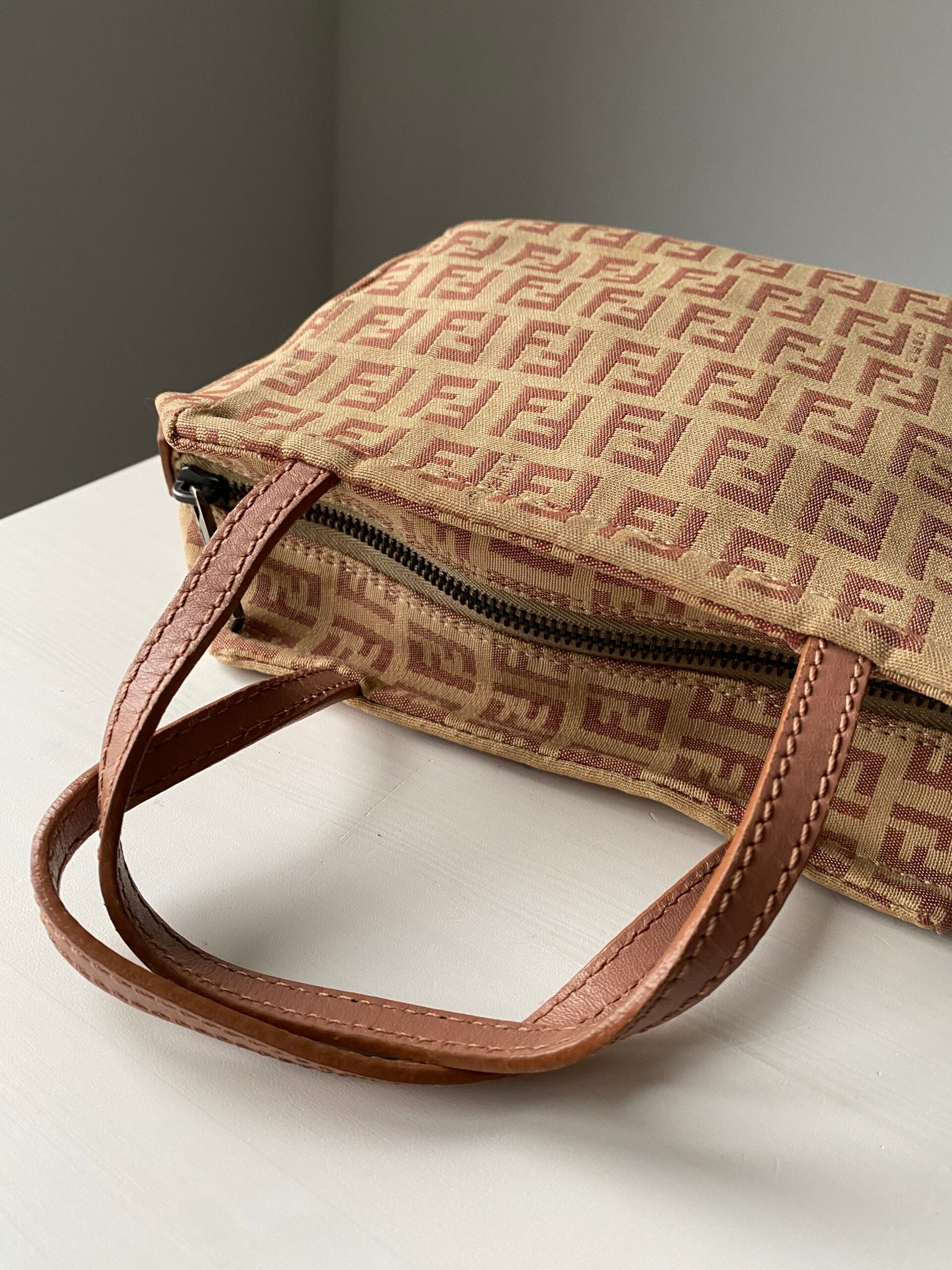 Fendi monogram pochette in good condition. Has some small light stains.
