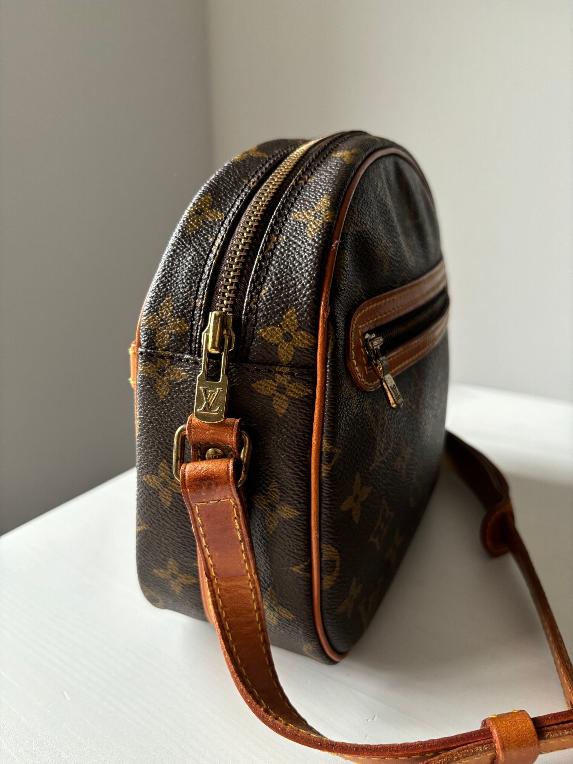 Louis Vuitton Senlis in zeer goede staat. De tas bevat een verstelbare strap en kan crossbody worden gedragen. We raden af om de kleine vakjes te gebruiken. De stof in de kleine vakjes laat helaas wat los. Dit is een kwaaltje bij vintage Louis Vuitton. Het grote vak is netjes en bruikbaar.