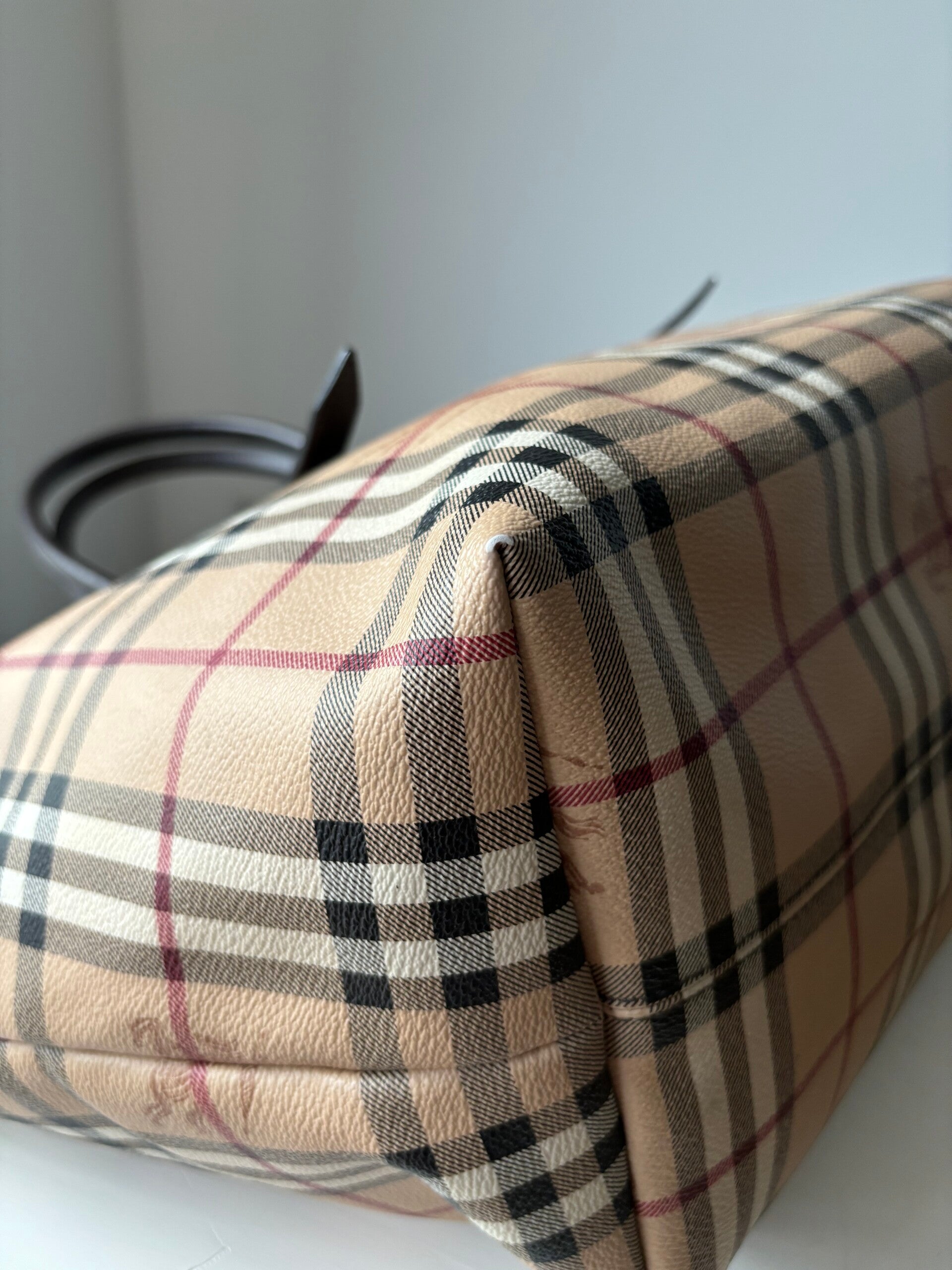 Burberry tote in zeer goede staat. Er past een laptop in deze tas. Kan over de schouder worden gedragen. De afmetingen zijn ongeveer 45 x 30 cm. Komt inclusief Veggel Vintage certificaat van authenticiteit.