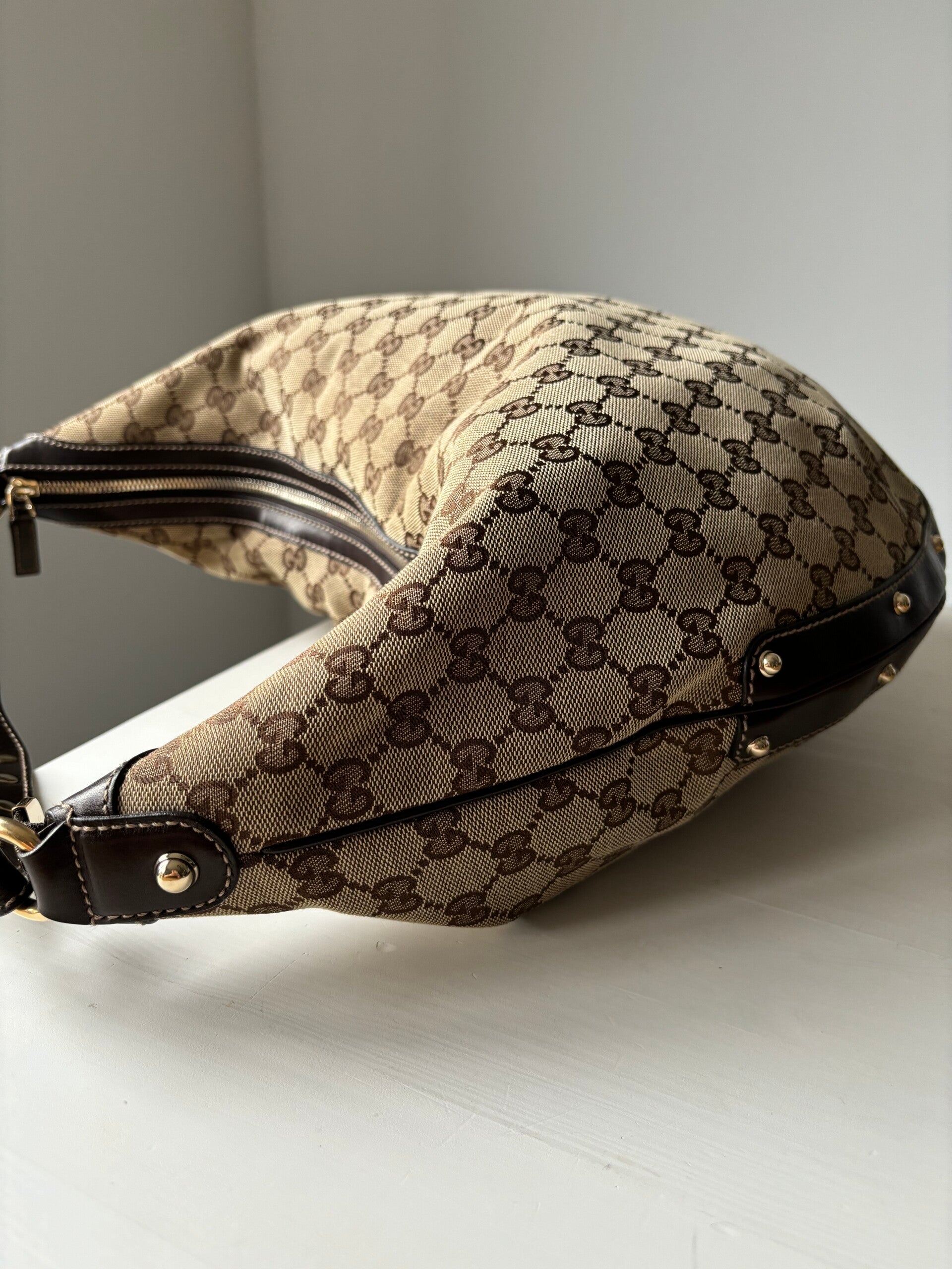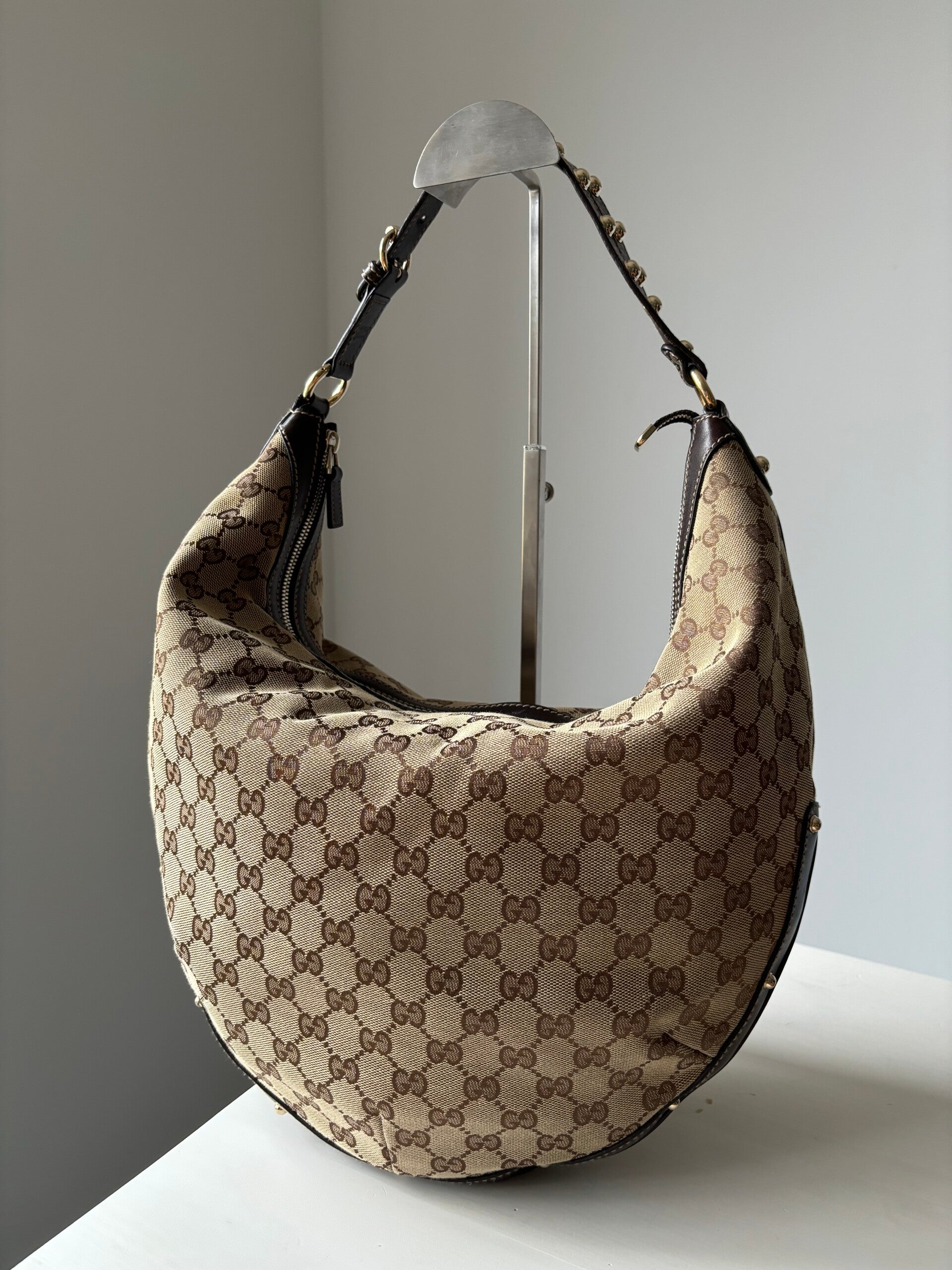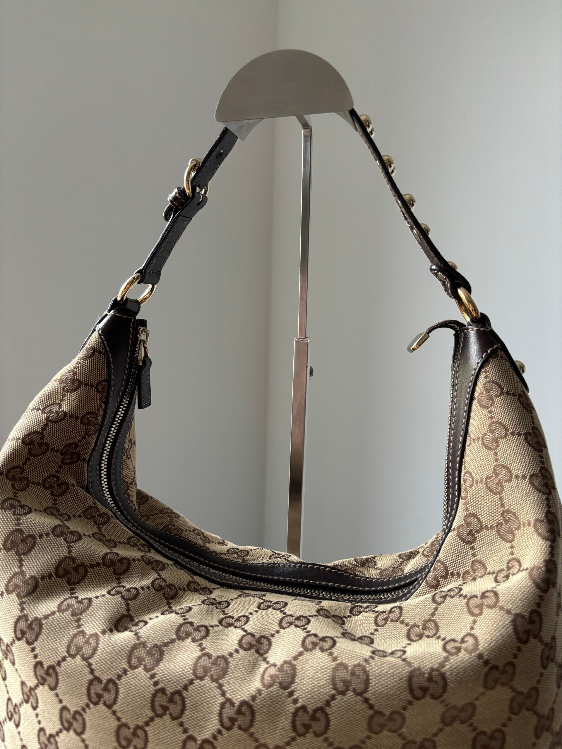 Gucci monogram hobo in perfecte staat. Kan over de schouder worden gedragen. Komt inclusief Veggel Vintage certificaat van authenticiteit.
