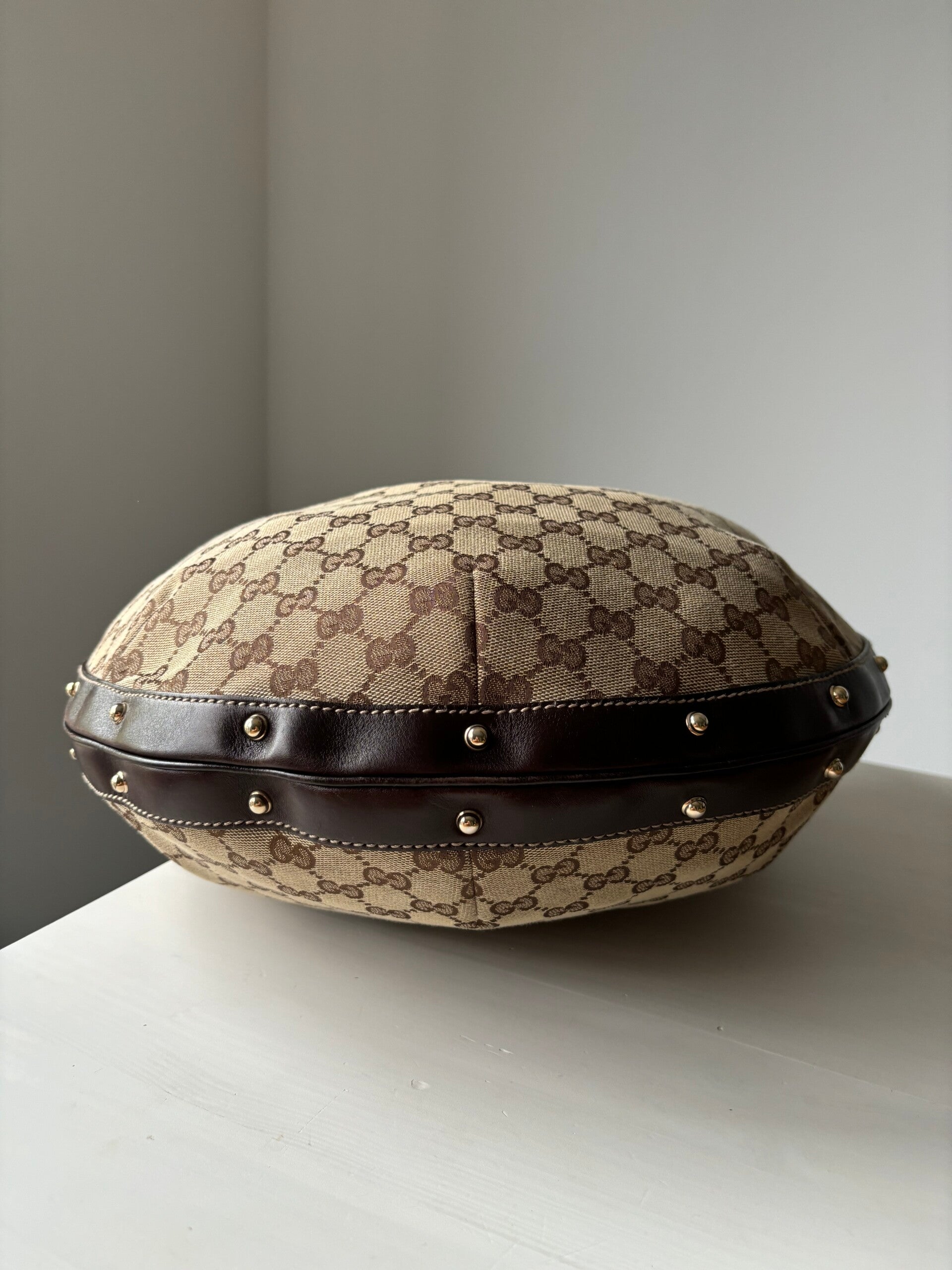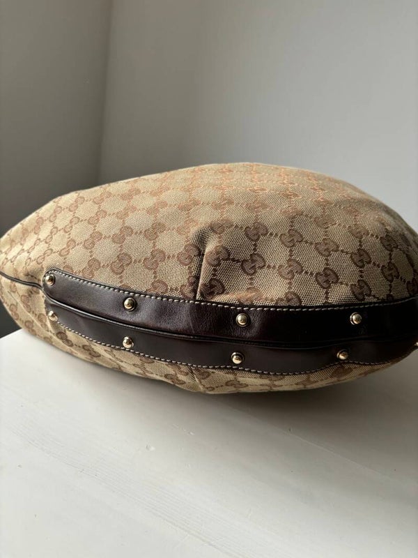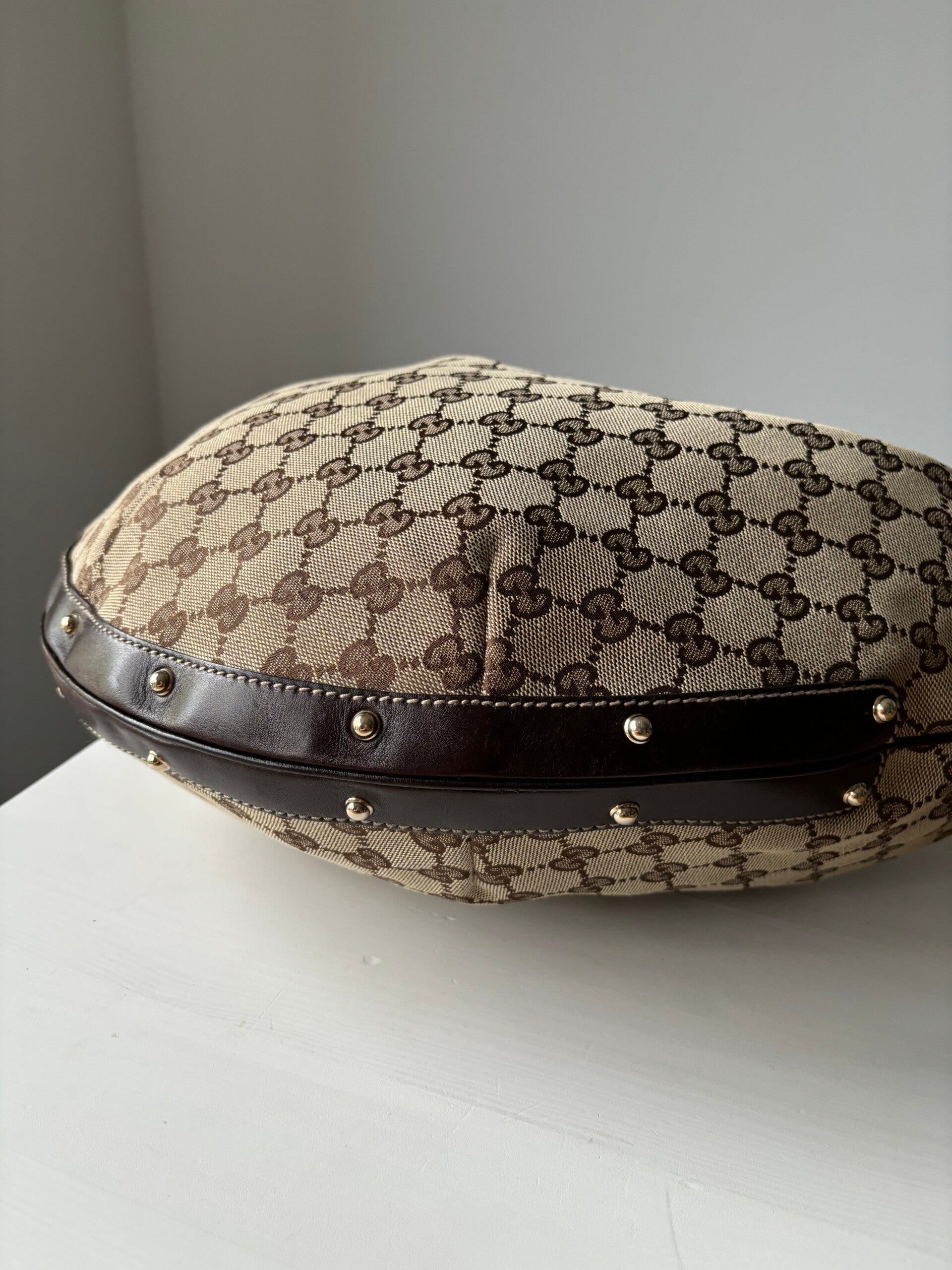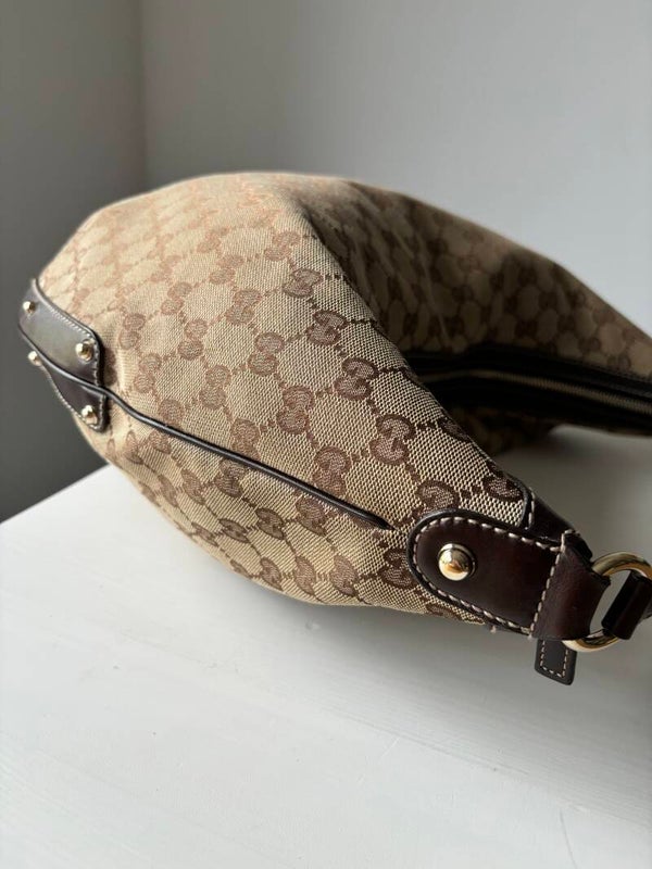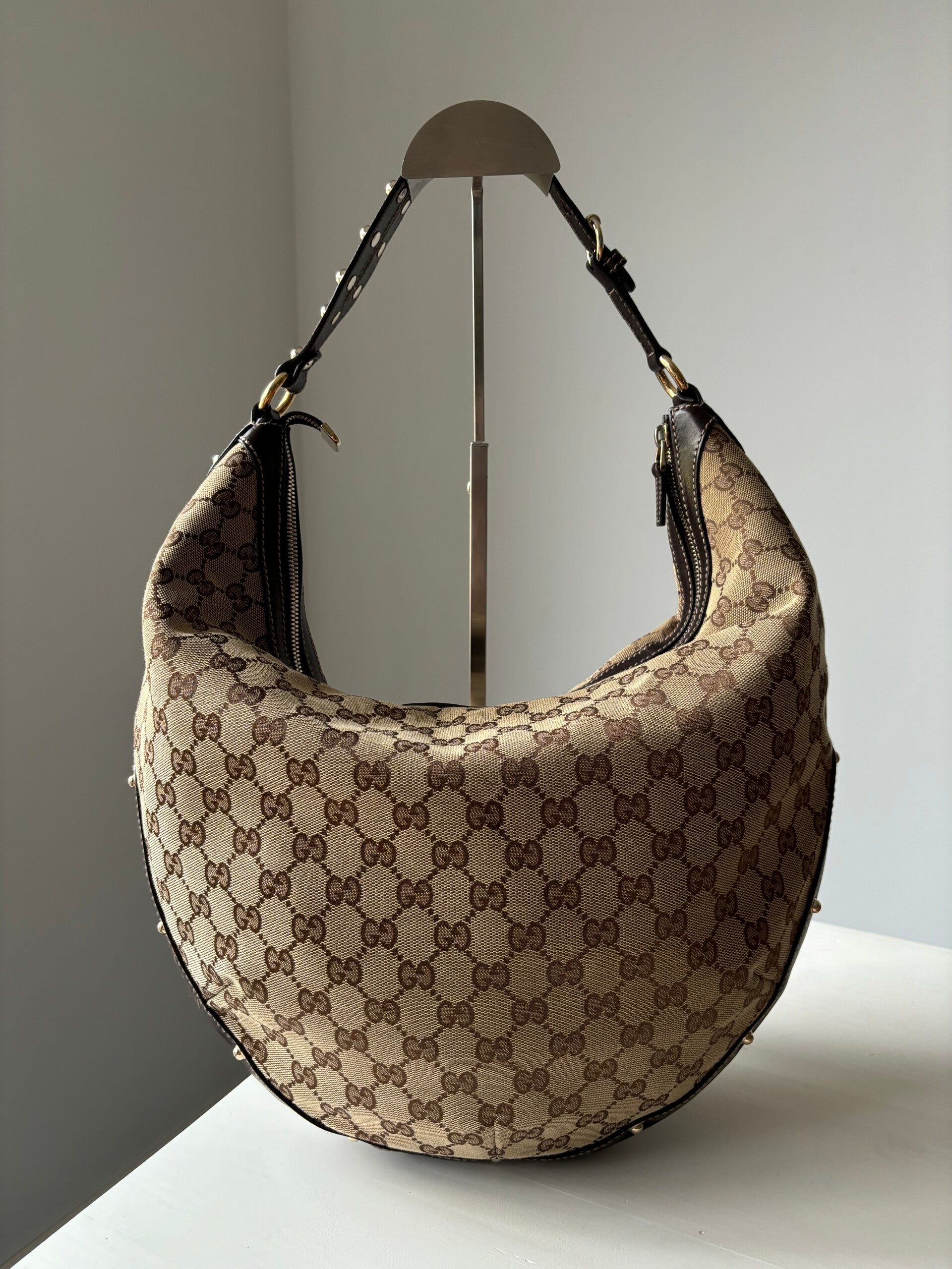 Gucci monogram hobo in perfecte staat. Kan over de schouder worden gedragen. Komt inclusief Veggel Vintage certificaat van authenticiteit.