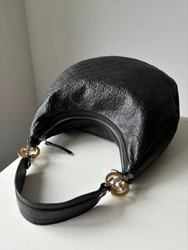 Gucci monogram twins hobo in zeer goede staat. Kan over de schouder worden gedragen. De afmetingen zijn ongeveer 33 x 25 cm exclusief strap. Komt inclusief Veggel Vintage certificaat van authenticiteit en Gucci dustbag.