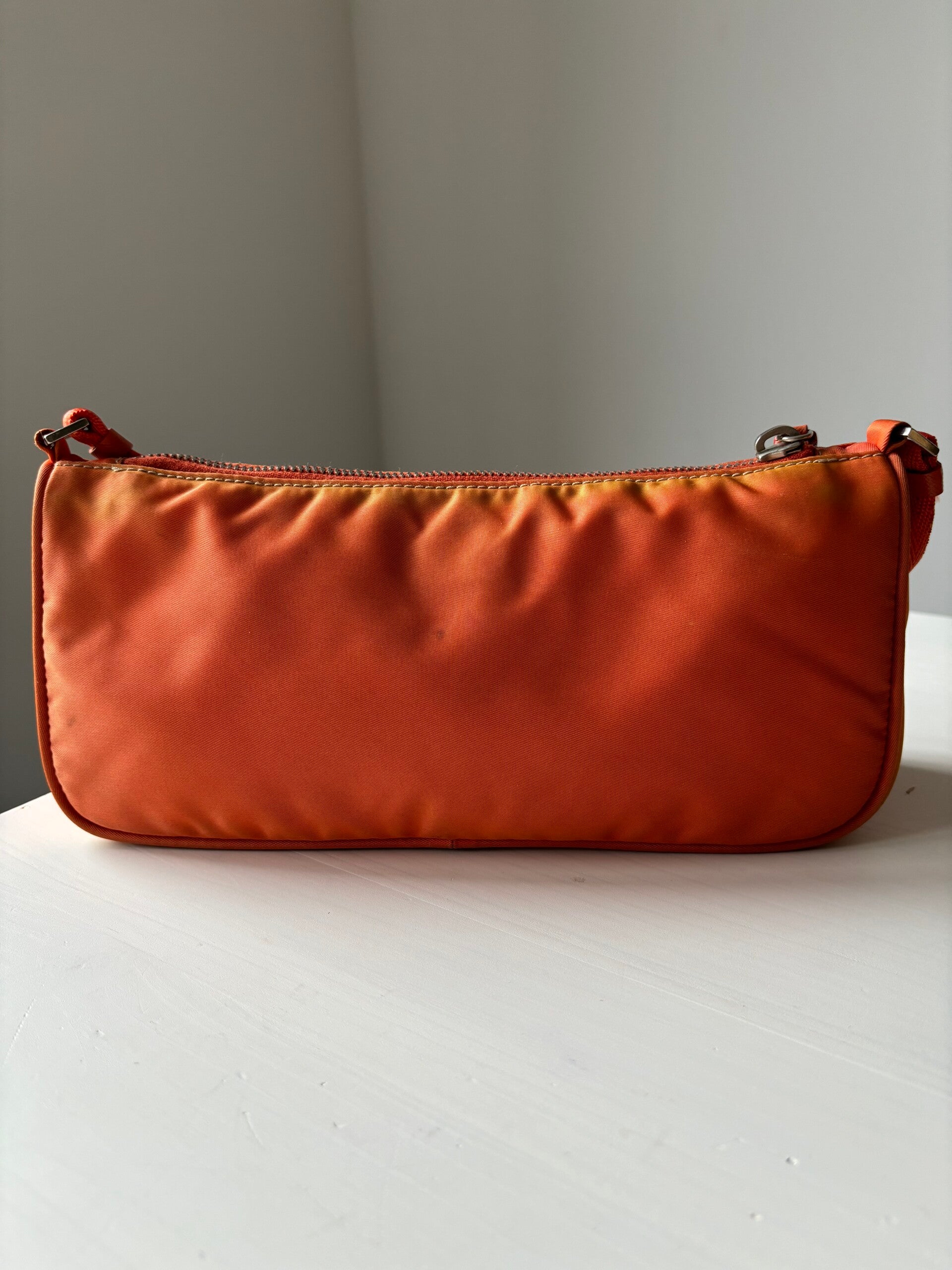 Prada nylon pochette in gebruikte staat. Kan over de schouder worden gedragen. De afmetingen zijn ongeveer 25 x 12 cm. Komt inclusief certificaat van authenticiteit en Veggel Vintage dustbag.