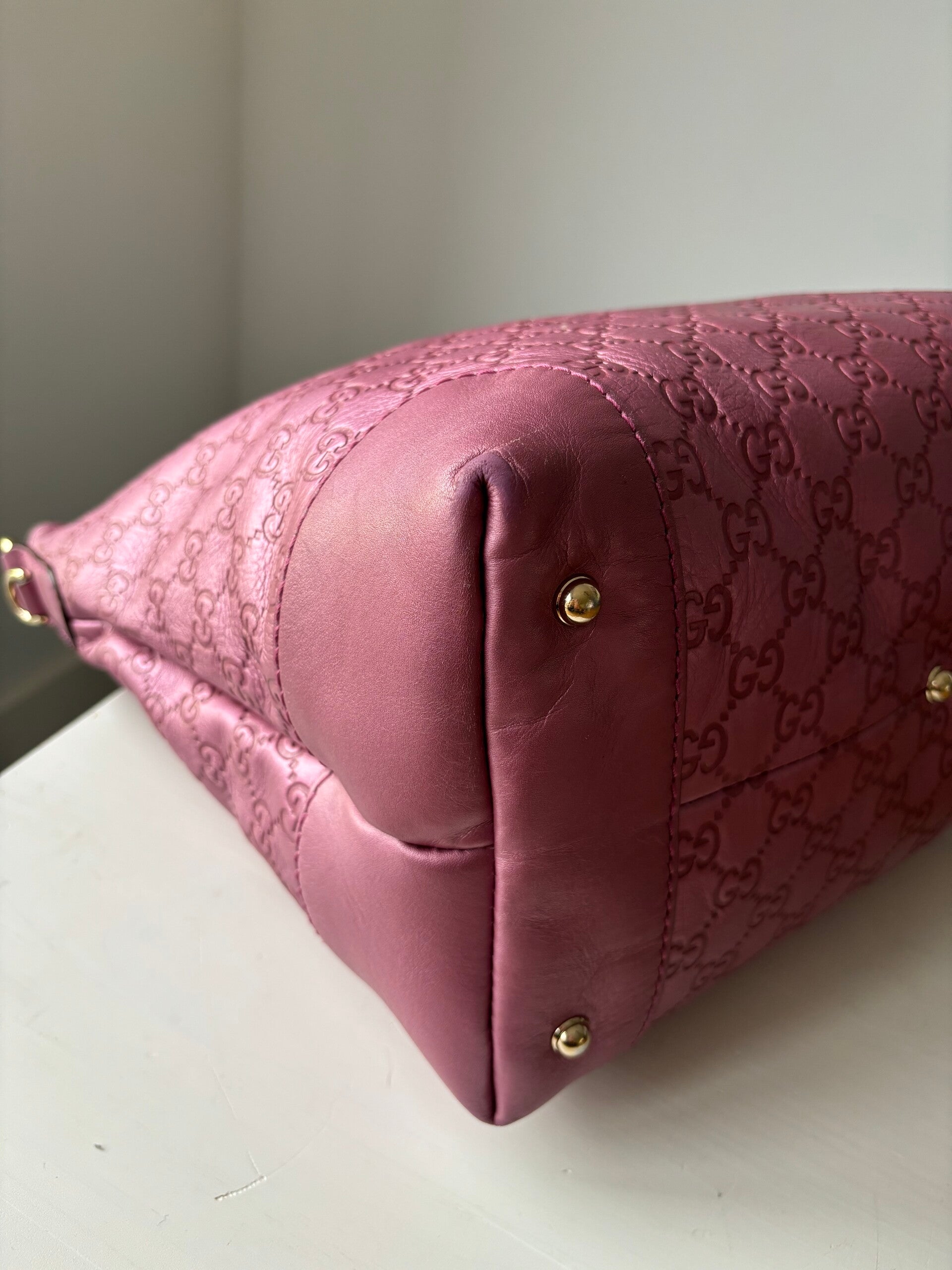 Gucci monogram hobo in zeer goede staat. De tas kan over de schouder worden gedragen. Er past een laptop in de tas. De afmetingen zijn ongeveer 29 x 30 cm. Komt inclusief Veggel Vintage certificaat van authenticiteit.