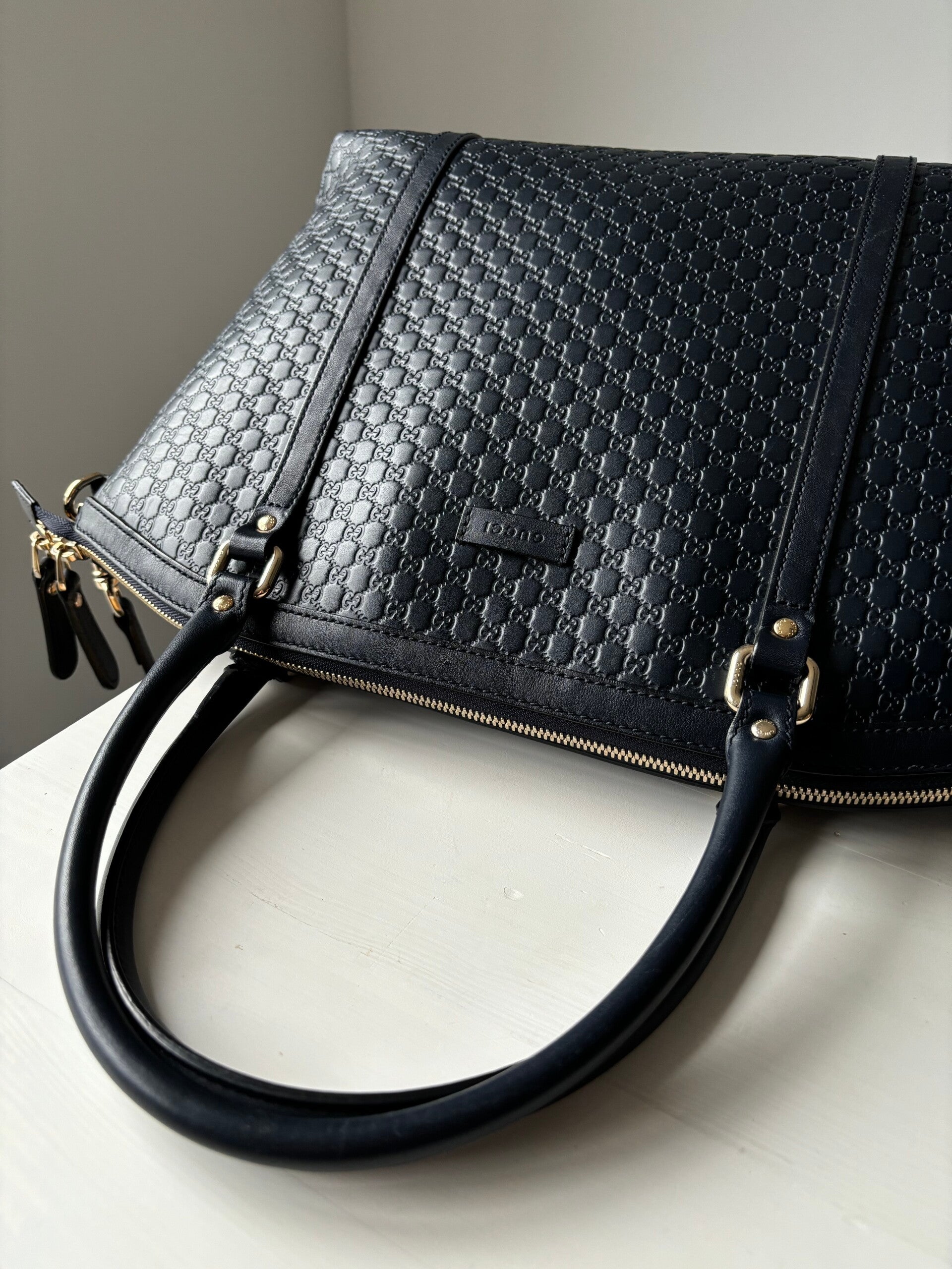 Gucci microguccissima tas in perfecte staat. Kan over de schouder worden gedragen. Komt met Gucci crossbody strap dus kan ook crossbody worden gedragen. Er past een laptop in de tas. De afmetingen zijn ongeveer 38 x 27 cm. Komt inclusief Veggel Vintage certificaat van authenticiteit.
