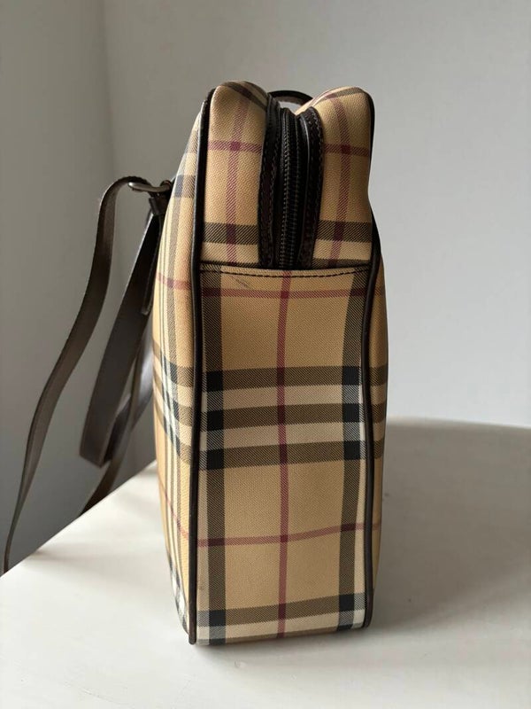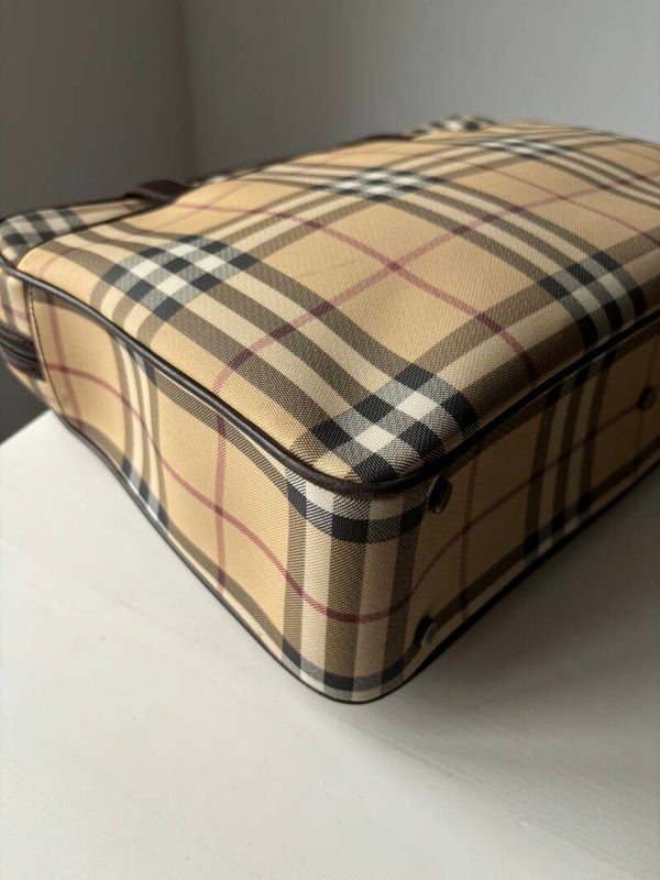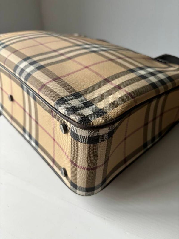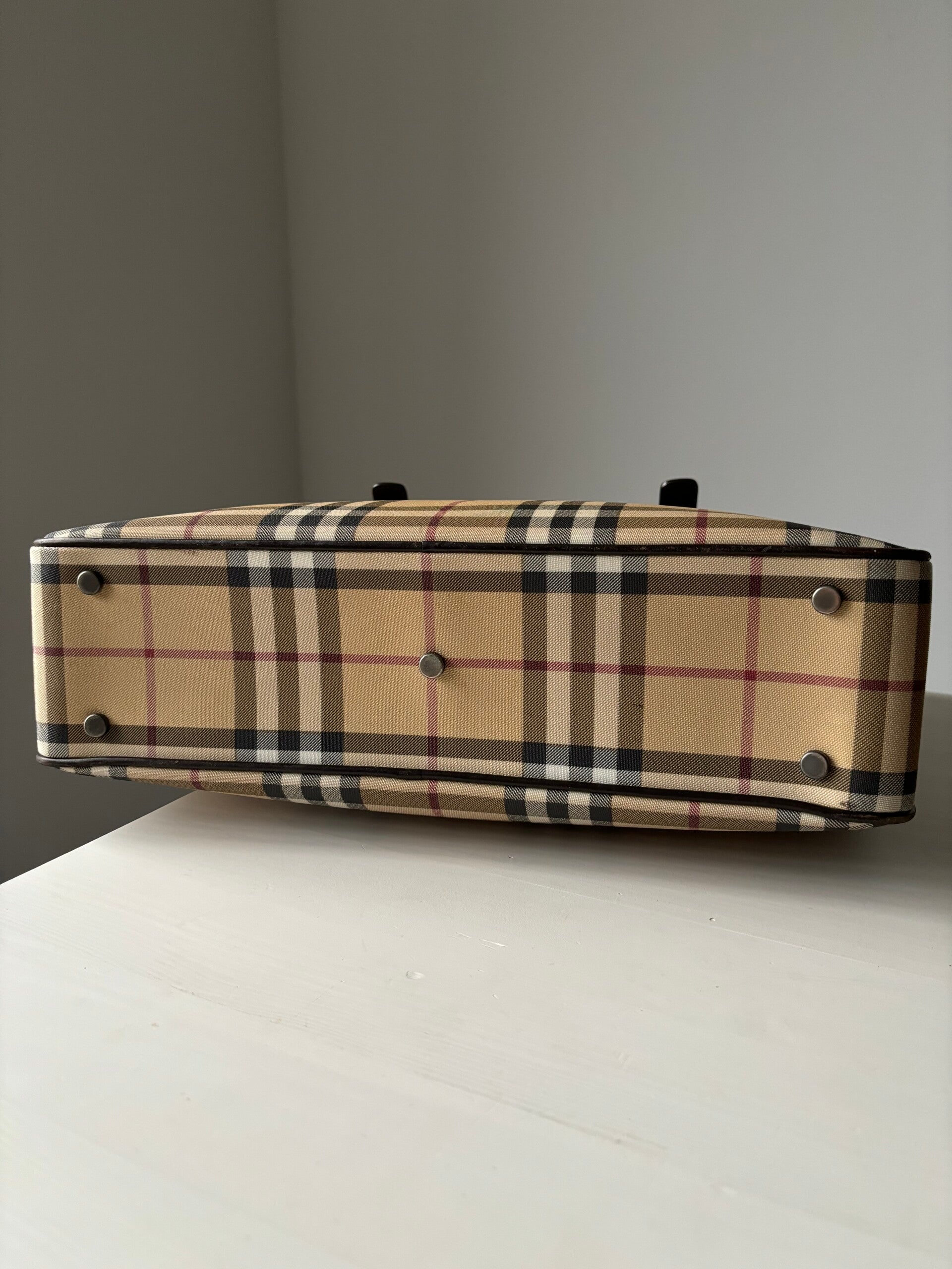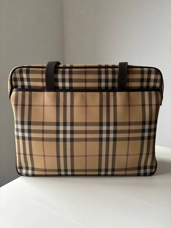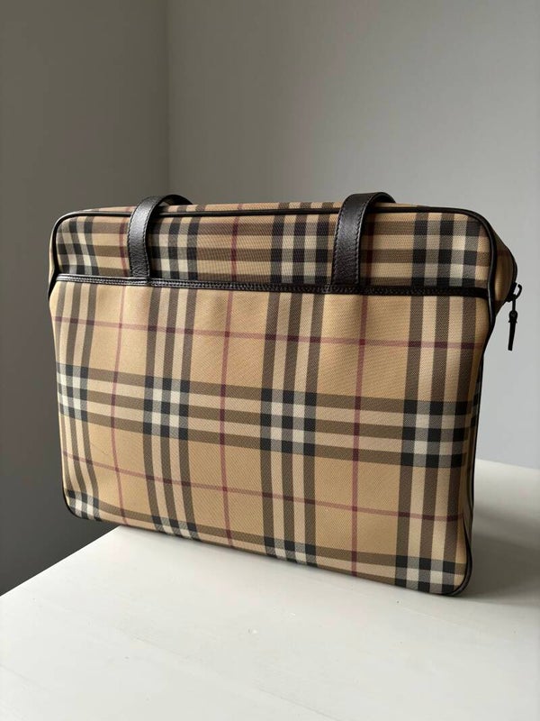 Burberry tas in goede staat. Kan over de schouder worden gedragen. Er past een laptop in de tas. De afmetingen zijn ongeveer 36 x 29 cm. Komt inclusief Veggel Vintage certificaat van authenticiteit.