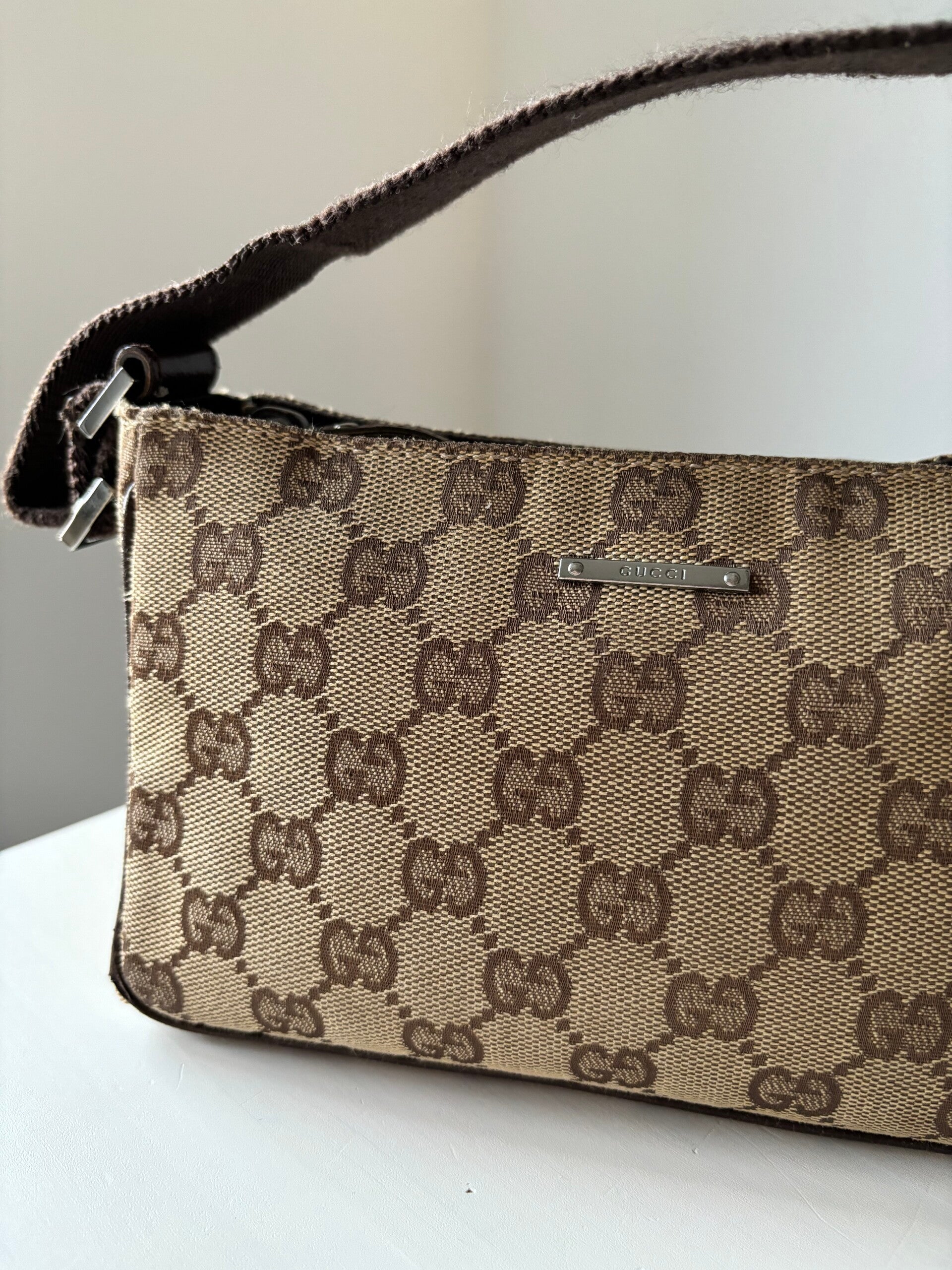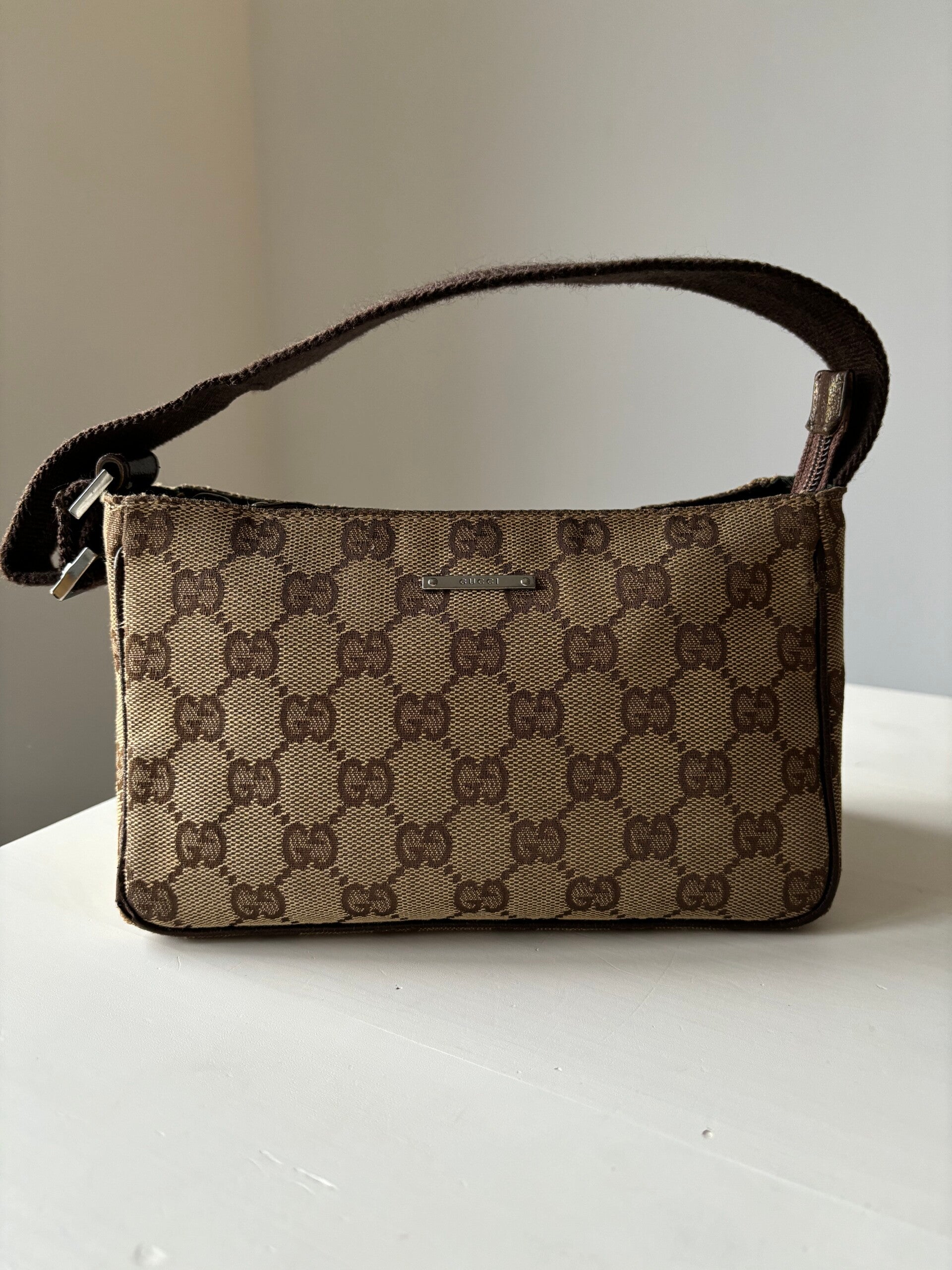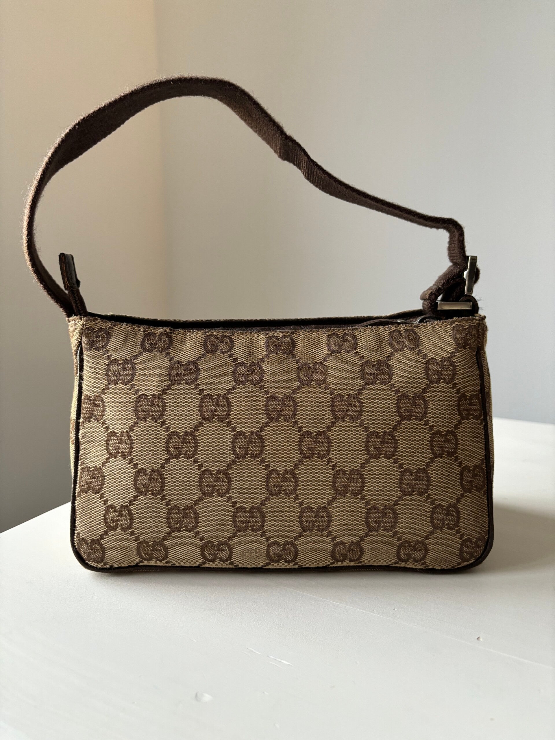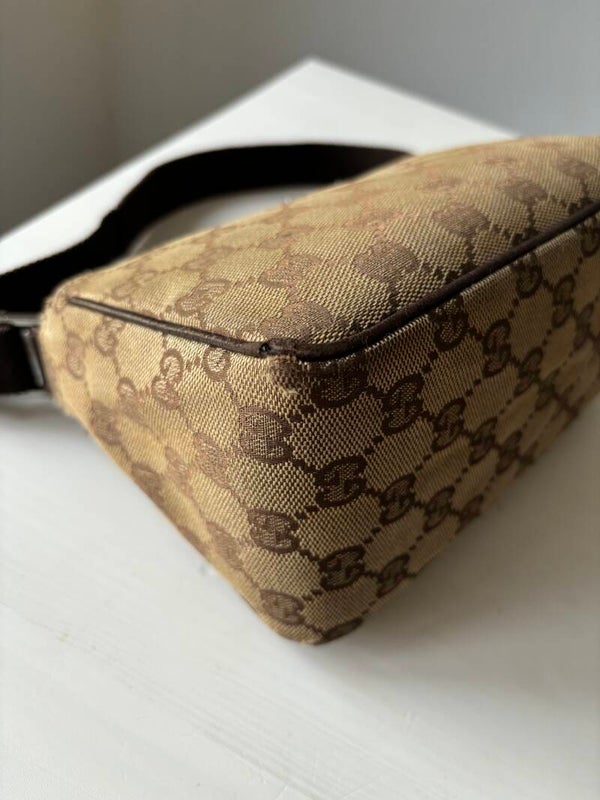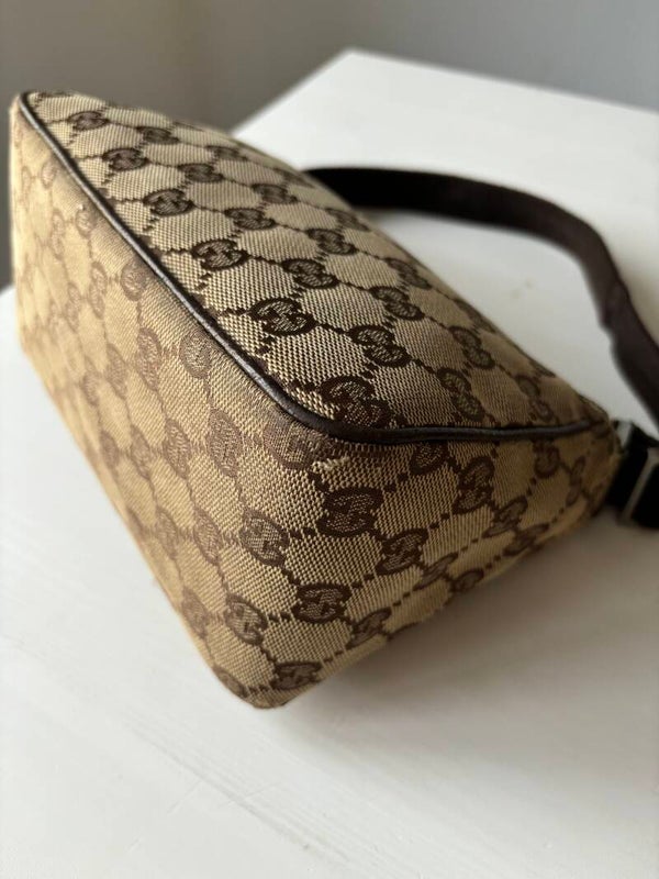 Gucci monogram pochette in zeer goede staat. Kan over de schouder worden gedragen. De afmetingen zijn ongeveer 22 x 12 cm. Komt inclusief Veggel Vintage certificaat van authenticiteit en Veggel Vintage dustbag.