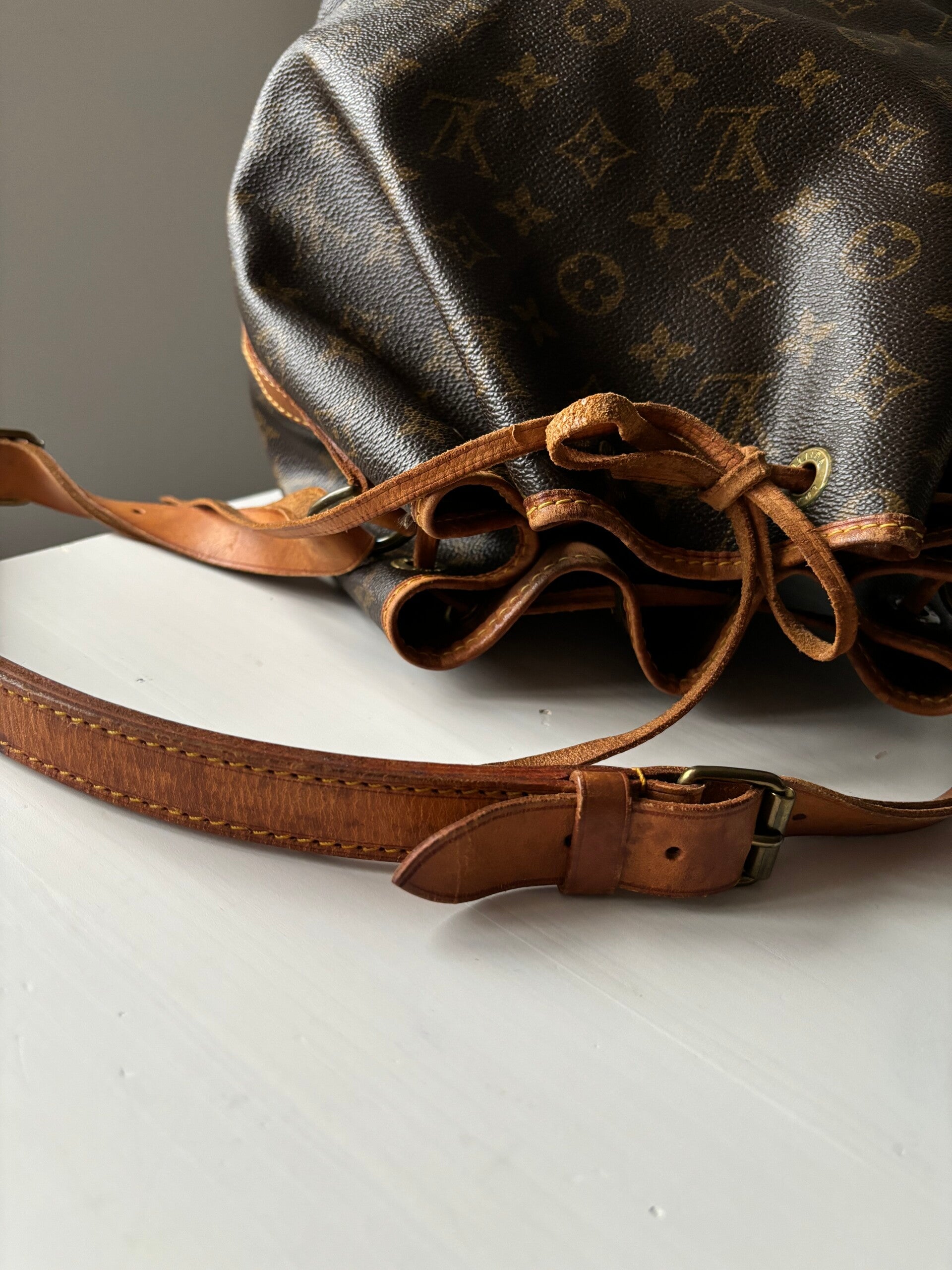 Louis Vuitton petit Noé in zeer goede staat. Kan over de schouder worden gedragen. De afmetingen zijn ongeveer 27 x 27 cm. Komt inclusief Veggel Vintage certificaat van authenticiteit en LV dustbag.