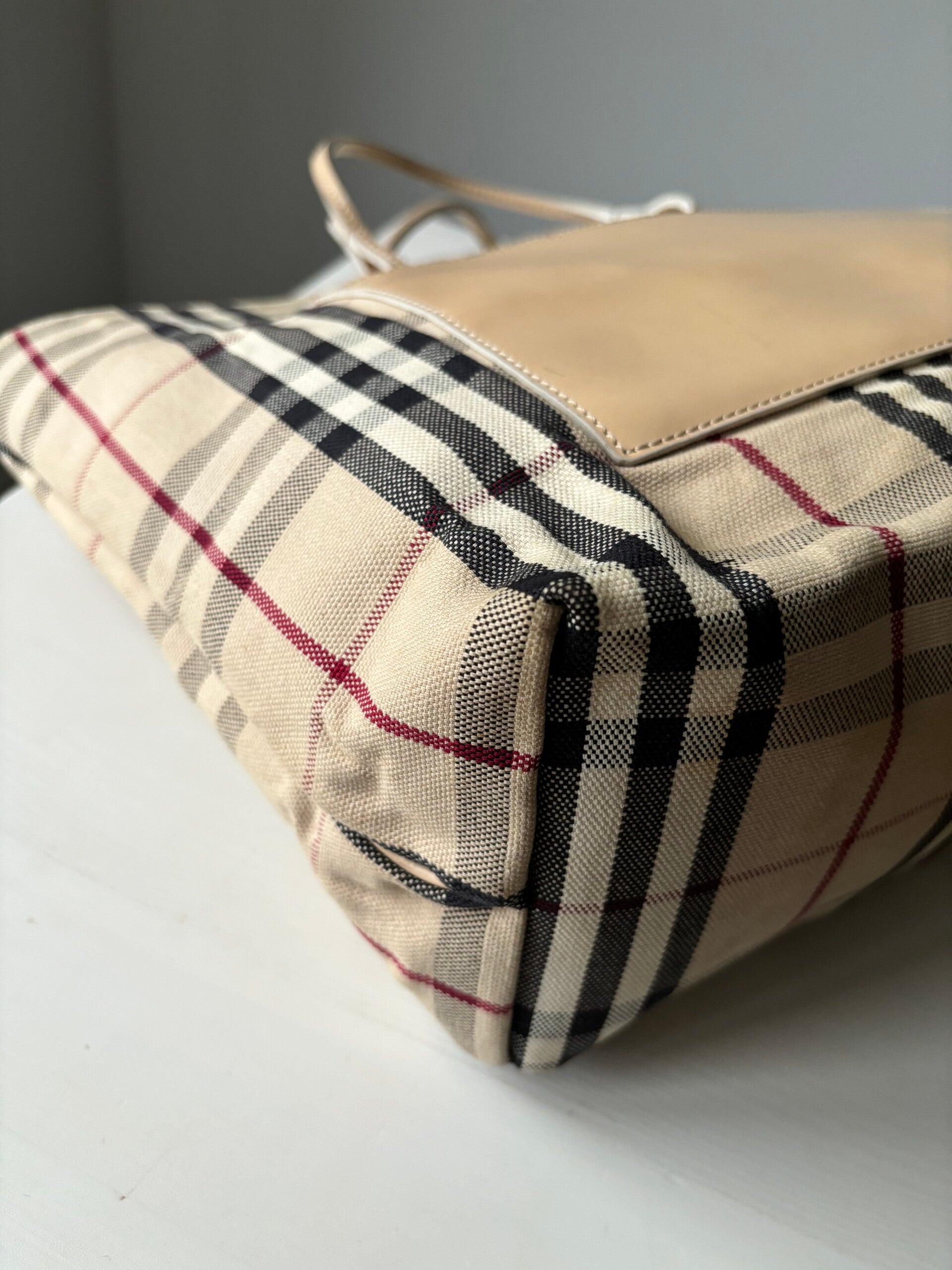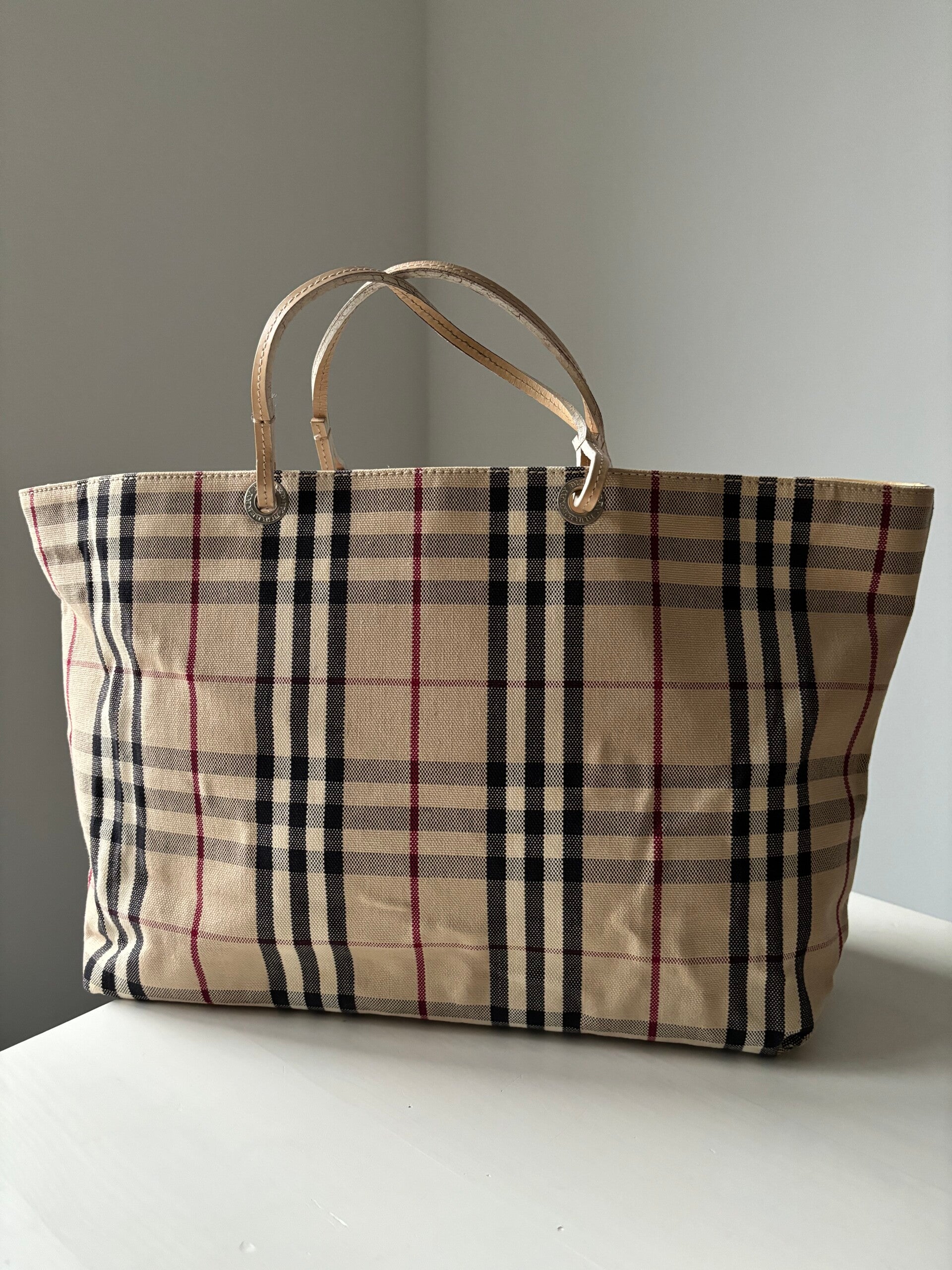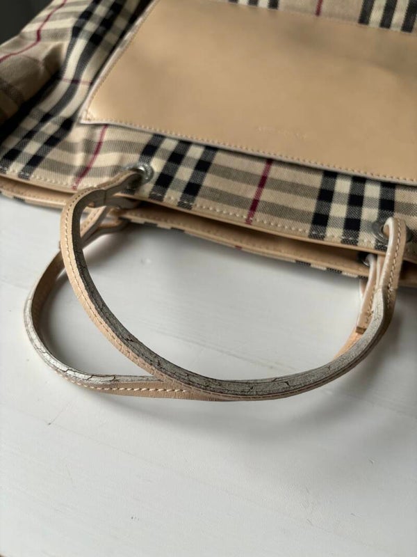 Burberry tote in goede staat. Er past een laptop in. De afmetingen zijn ongeveer 45 x 27 cm. Komt inclusief Veggel Vintage certificaat van authenticiteit.