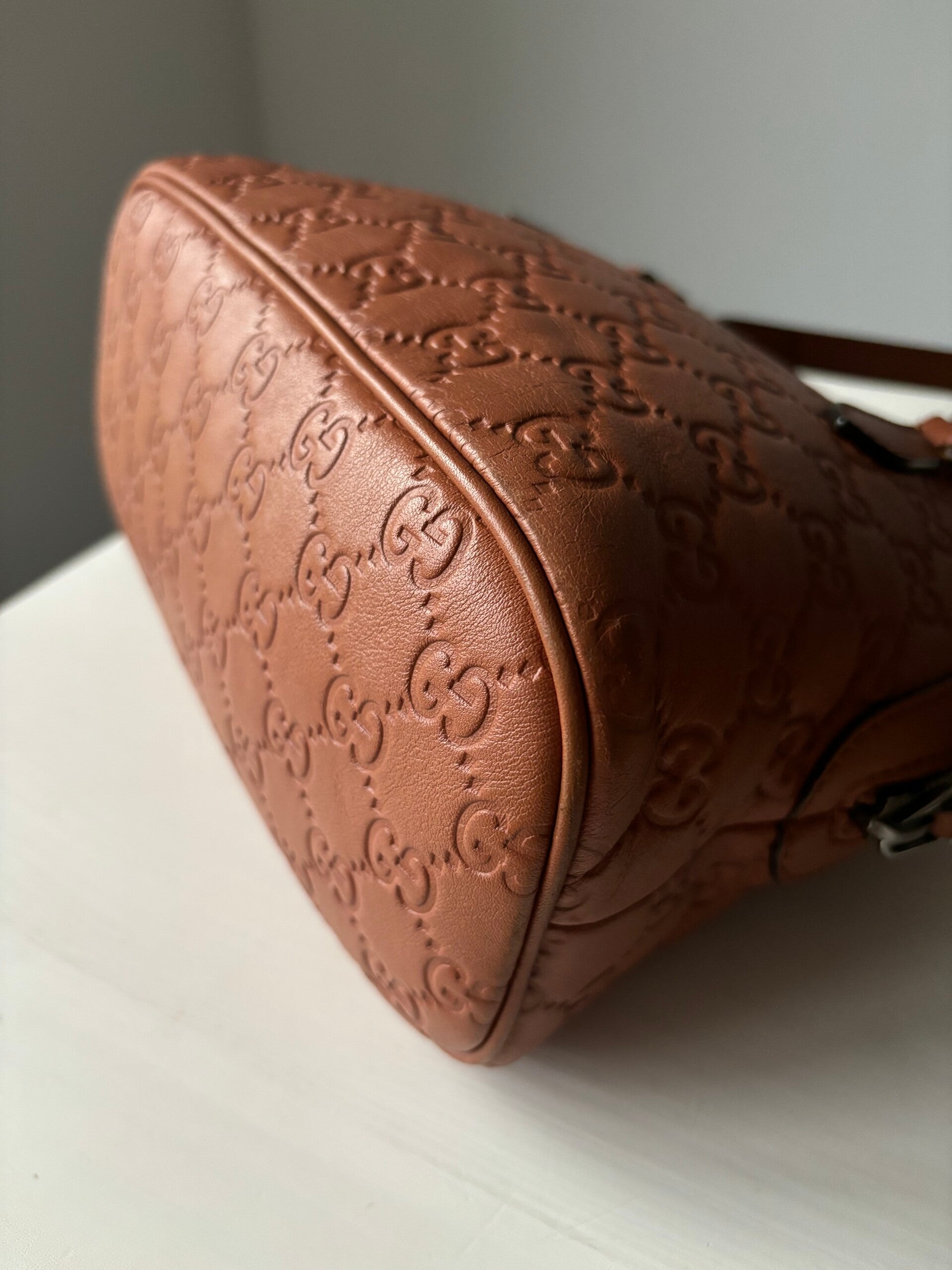 Gucci guccissima dome in zeer goede staat. Komt met lange strap. De afmetingen zijn ongeveer 24 x 18 cm. Komt inclusief Veggel Vintage certificaat van authenticiteit en Gucci dustbag.