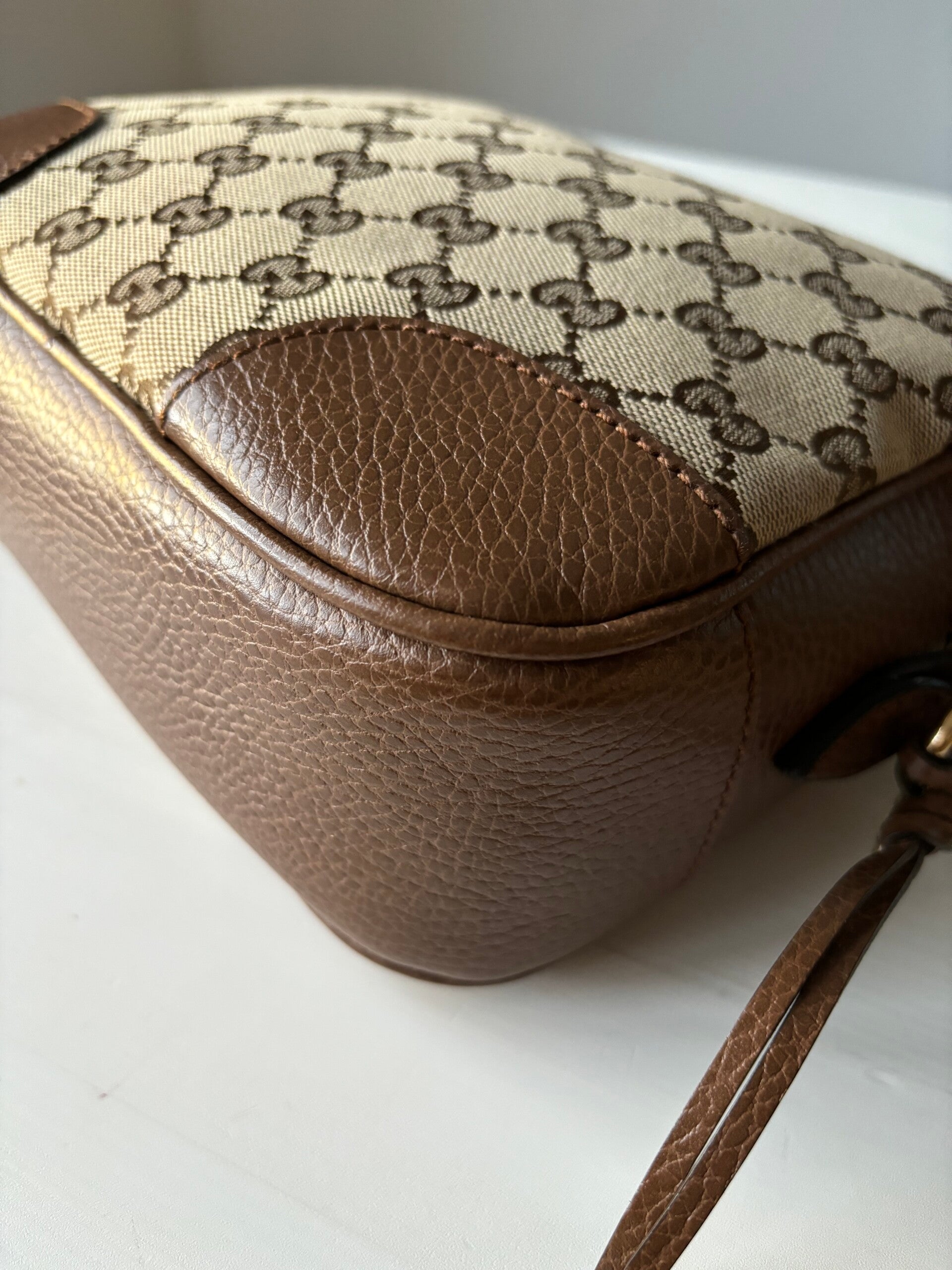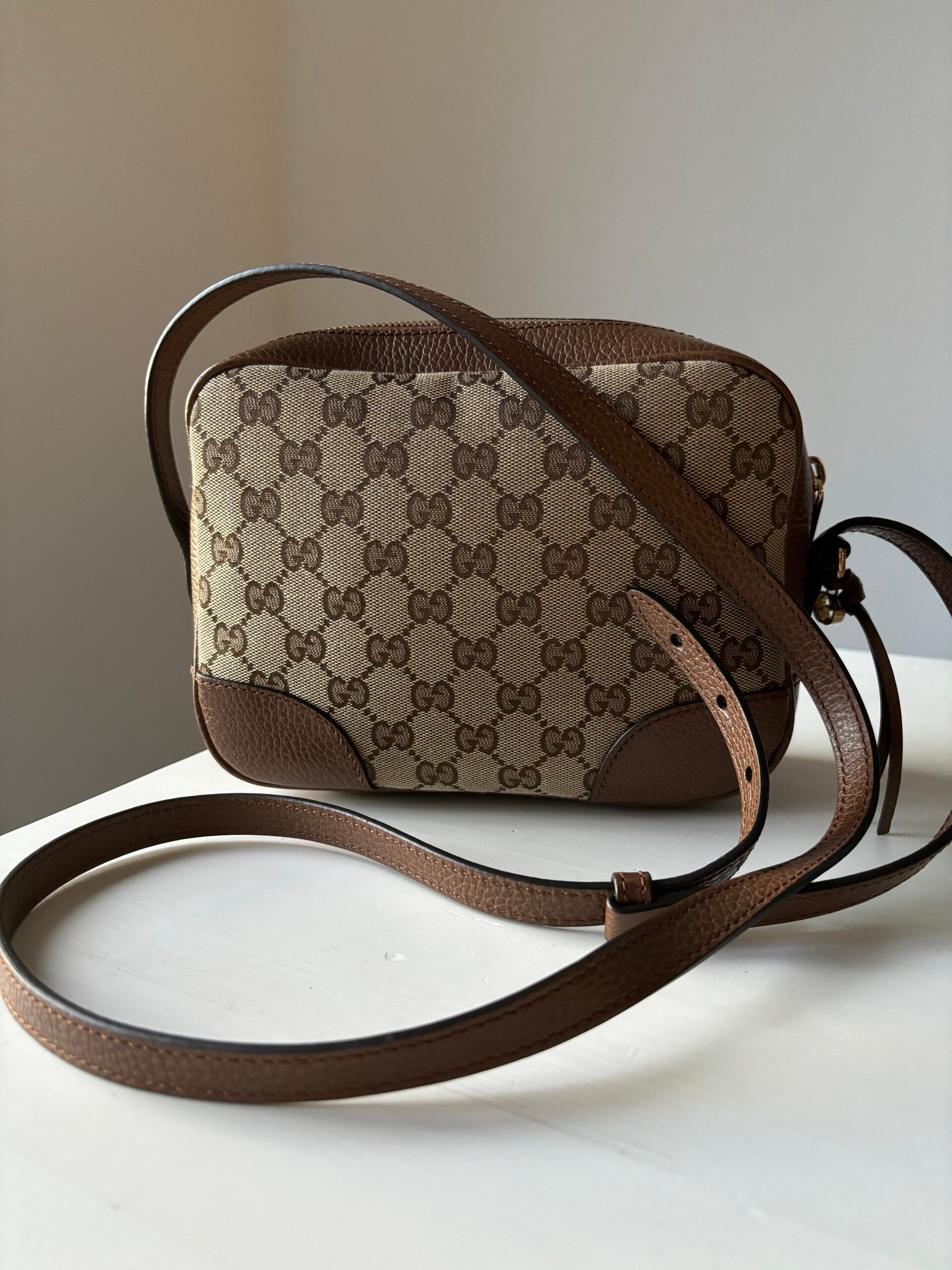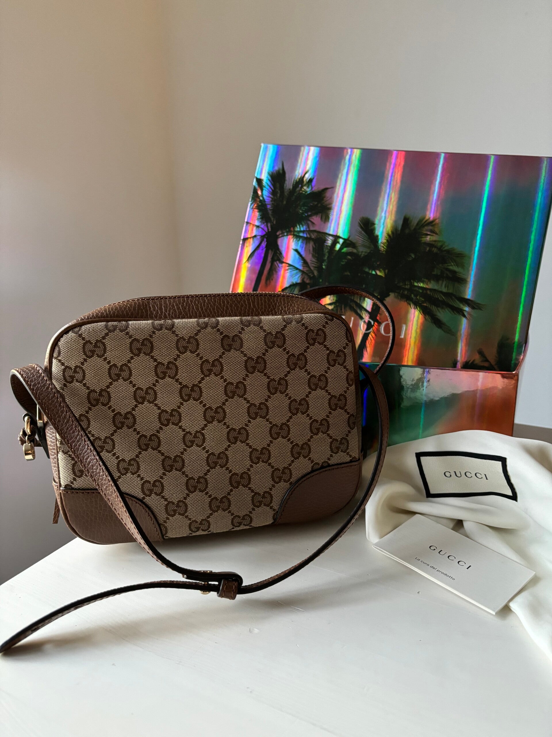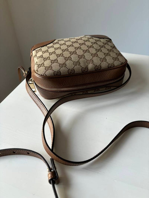 Gucci monogram bree crossbody in nieuwstaat. Kan crossbody worden gedragen. De afmetingen zijn ongeveer 22 x 16 cm. Komt inclusief Veggel Vintage certificaat van authenticiteit, Gucci doos, Gucci dustbag en Gucci kaartje.