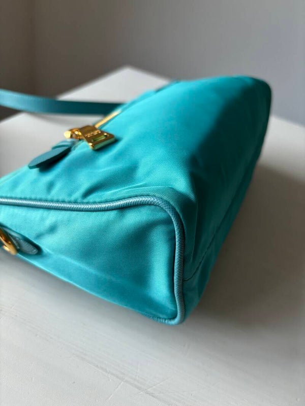 Prada nylon schoudertas in nieuwstaat. Kan over de schouder worden gedragen. De afmetingen zijn ongeveer 23 x 14 cm. Komt inclusief Veggel Vintage certificaat van authenticiteit, Prada authenticiteitskaart, Prada dustbag en Prada kaartjes.