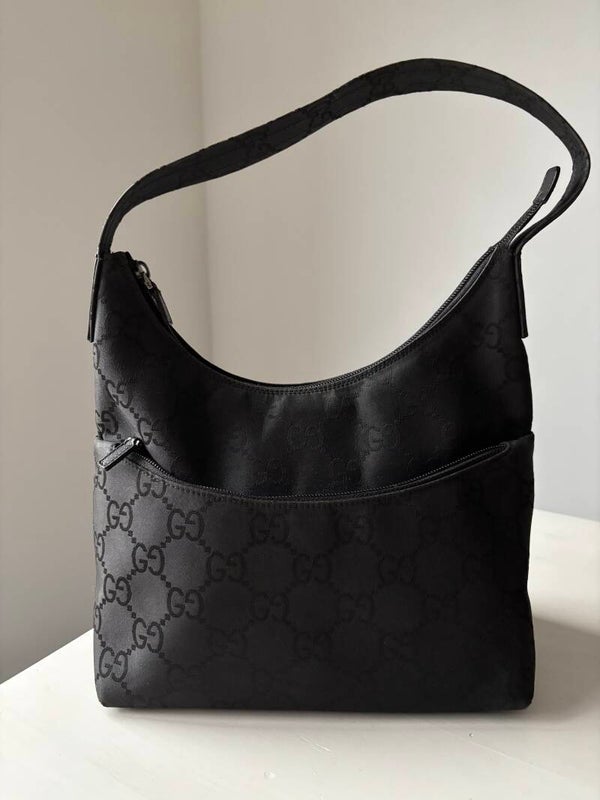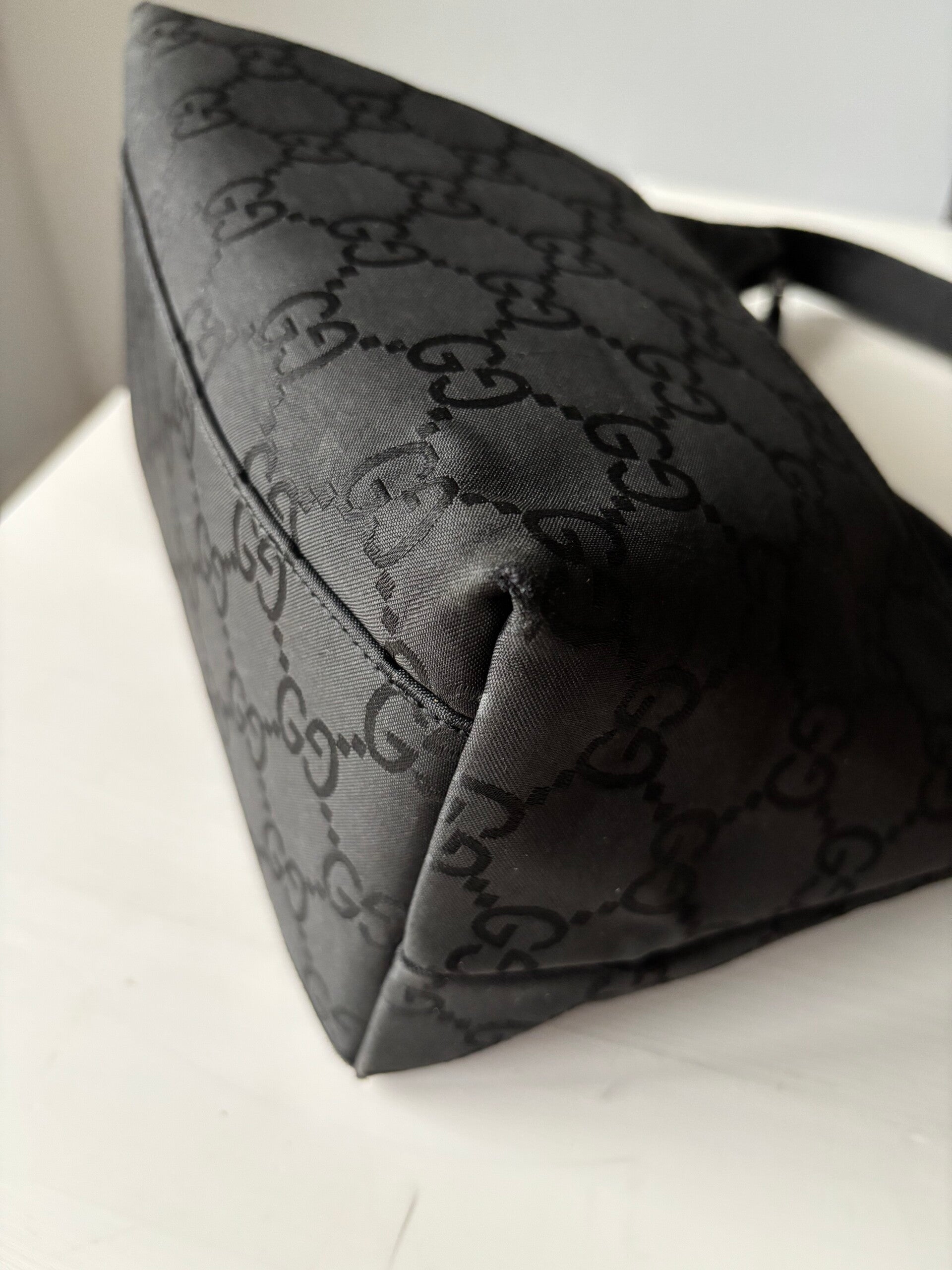 Gucci monogram schoudertas in zeer goede staat. Kan over de schouder worden gedragen. De afmetingen zijn ongeveer 32 x 26 cm exclusief strap. Komt inclusief Veggel Vintage certificaat van authenticiteit en Veggel Vintage dustbag.