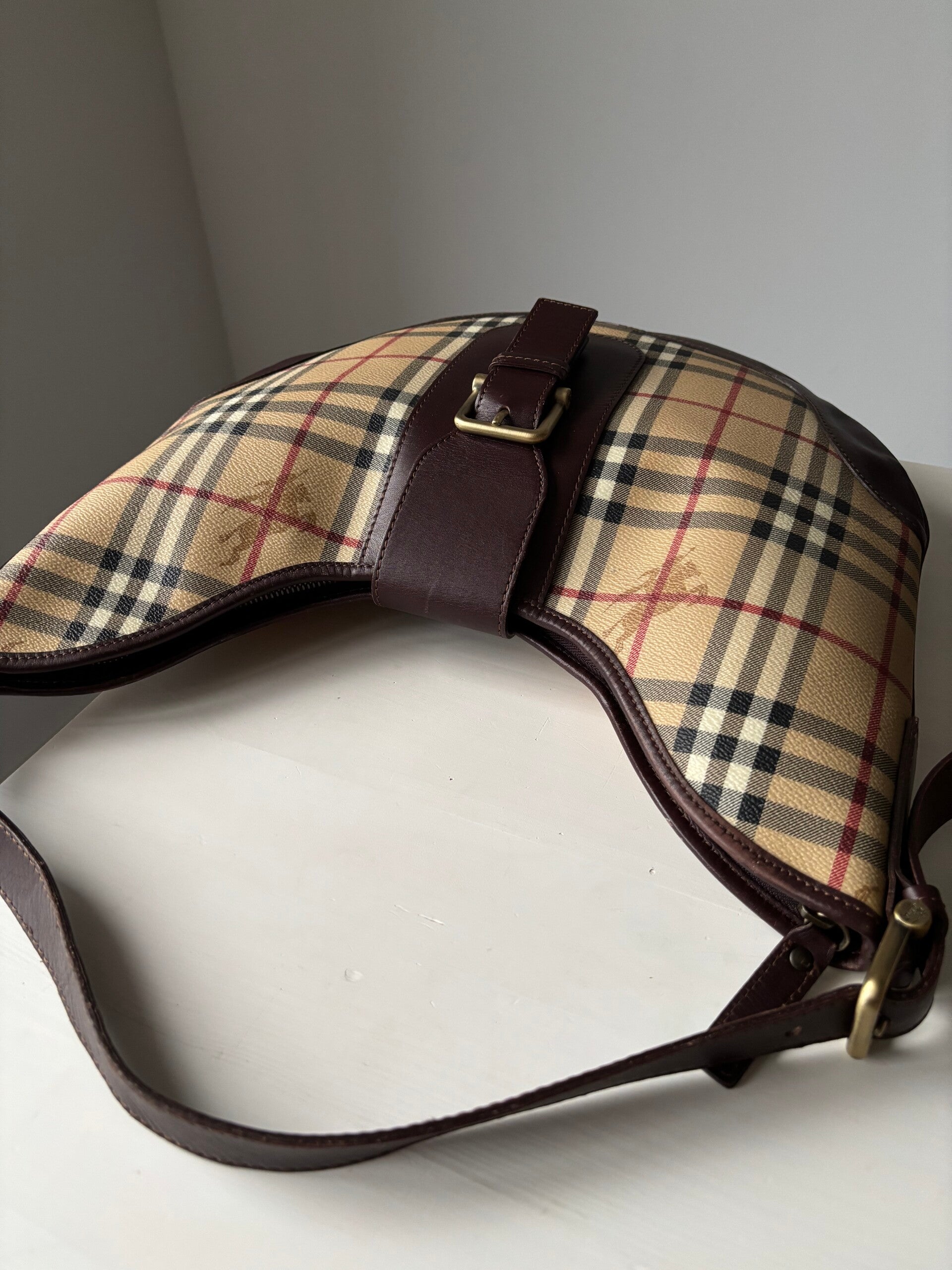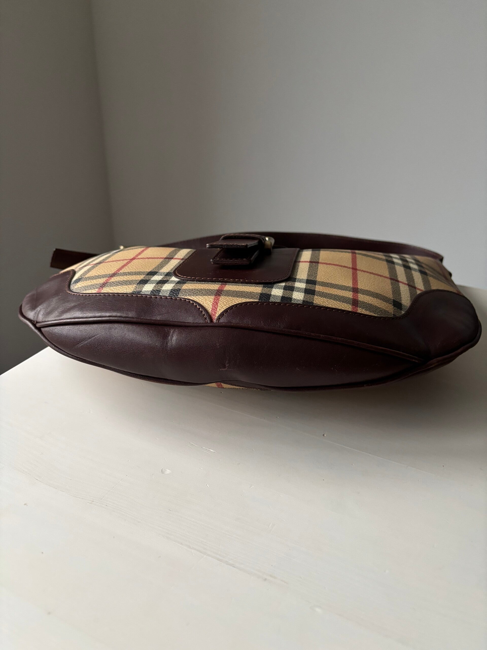 Burberry schoudertas in zeer goede staat. Kan over de schouder worden gedragen. De afmetingen zijn ongeveer 37 x 30 cm exclusief strap. Komt inclusief Veggel Vintage certificaat van authenticiteit.