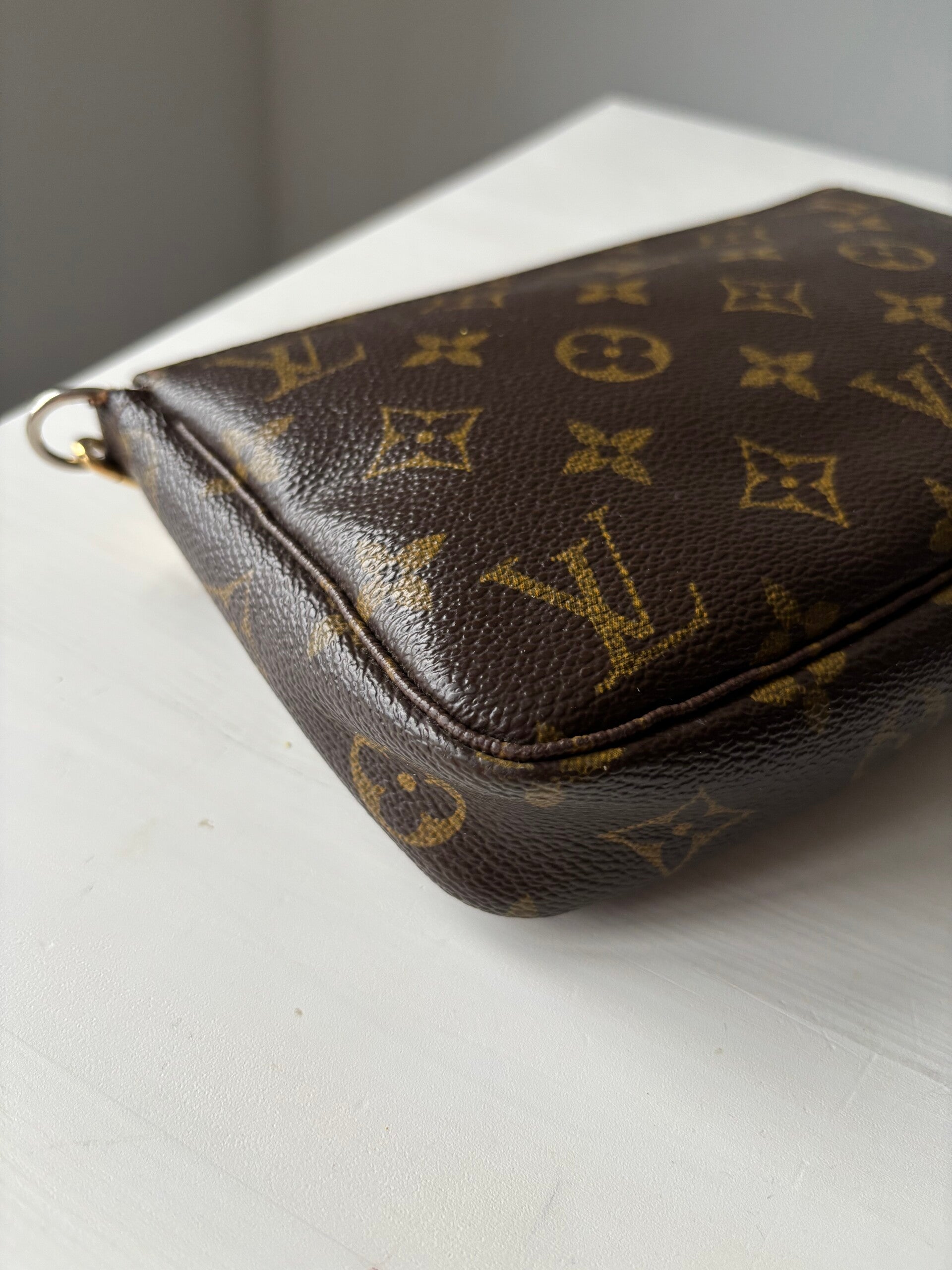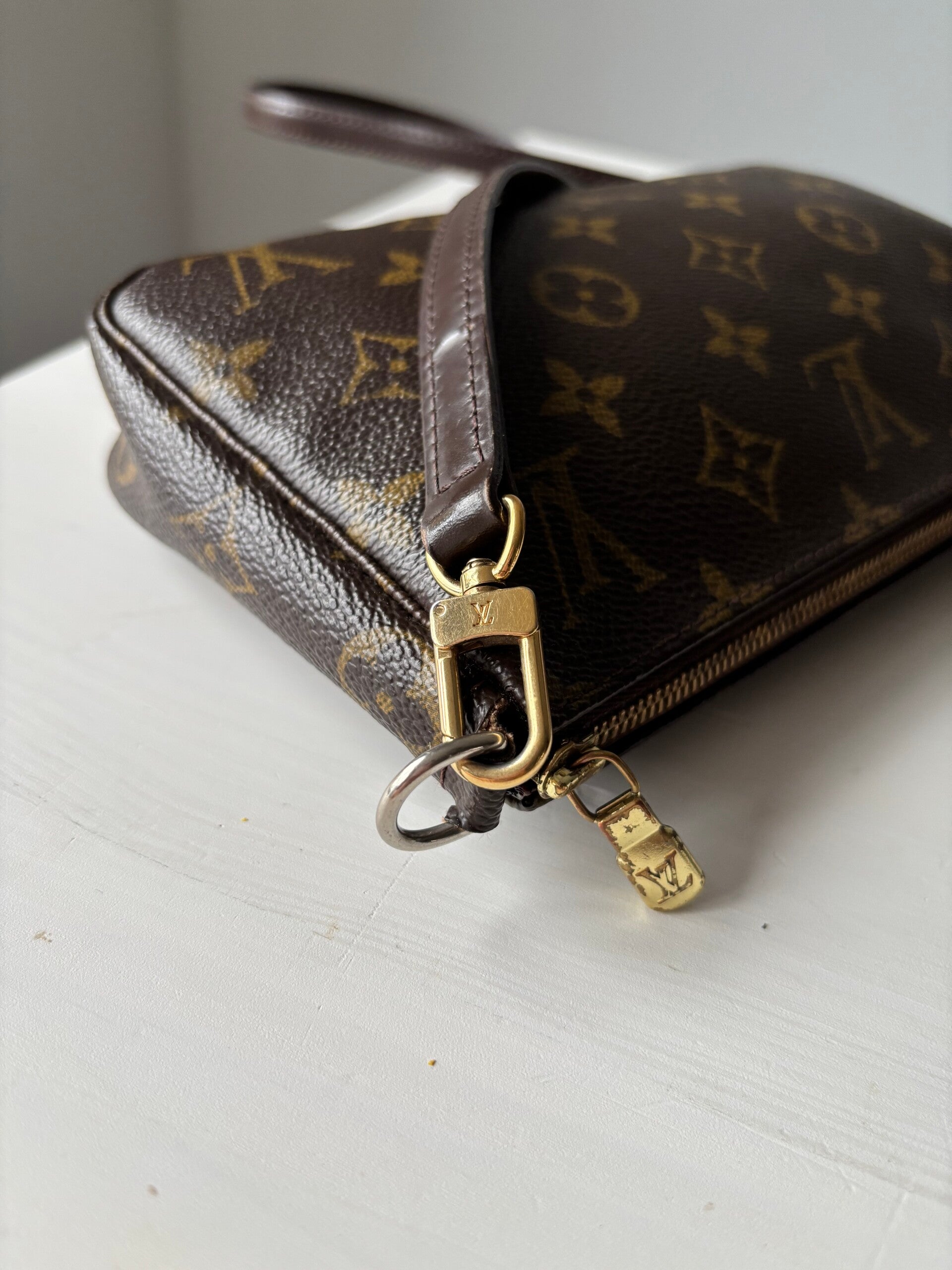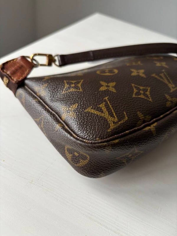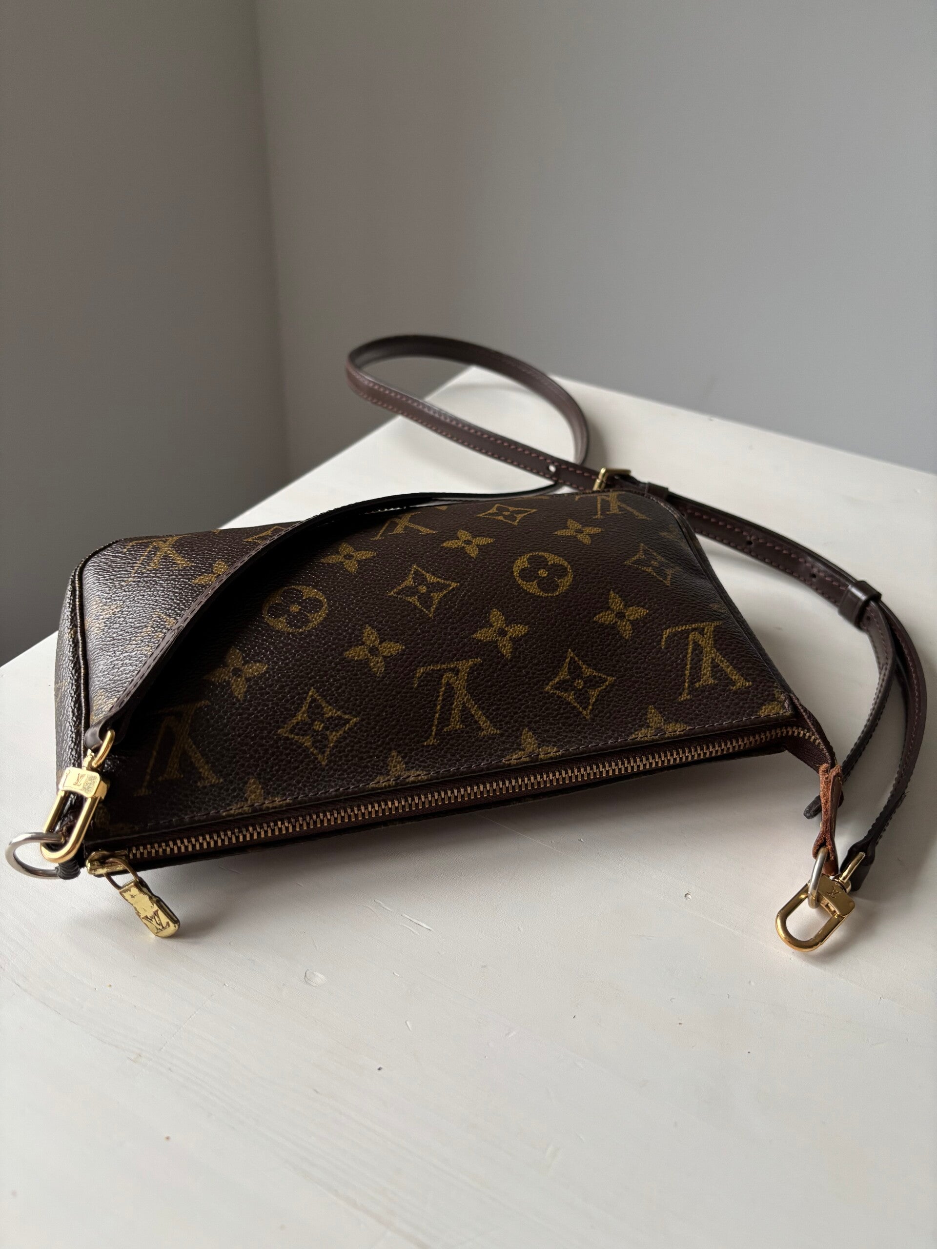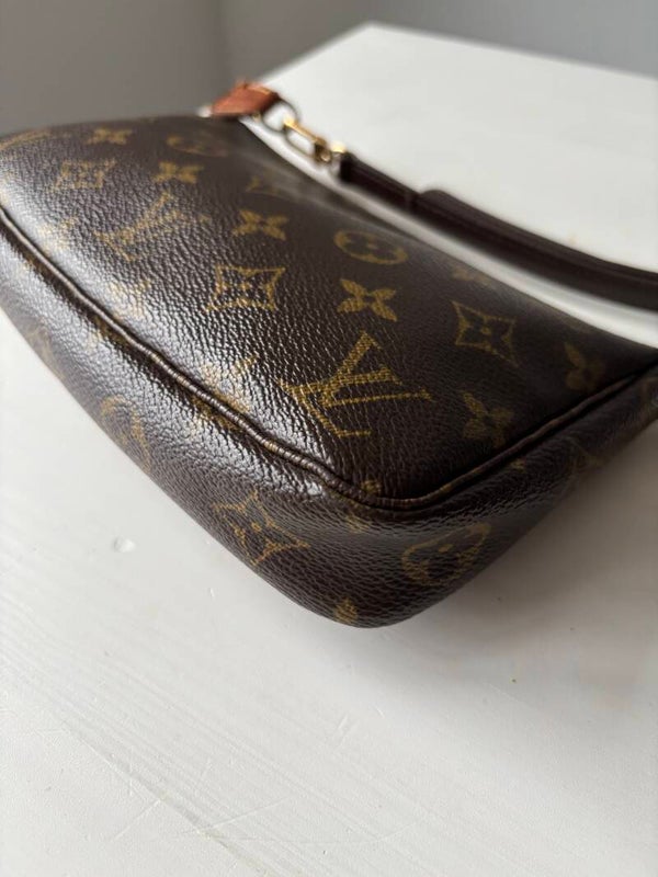 Louis Vuitton pochette accessoires in zeer goede staat. Aan de tas zit een Louis Vuitton crossbody strap bevestigd. Er zit een kopie van de factuur van de strap bij. De strap is verstelbaar. De afmetingen van de tas zijn ongeveer 22 x 13 cm. Komt inclusief Veggel Vintage certificaat van authenticiteit, Veggel Vintage dustbag en kopie van factuur van LV strap.