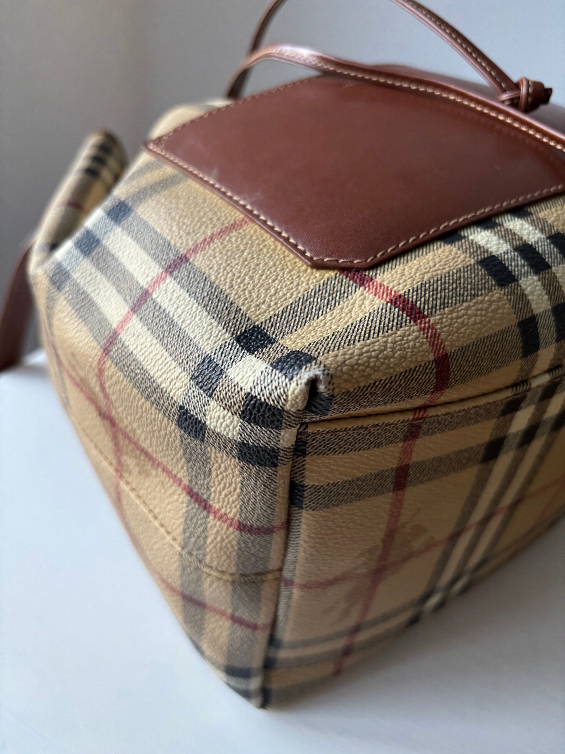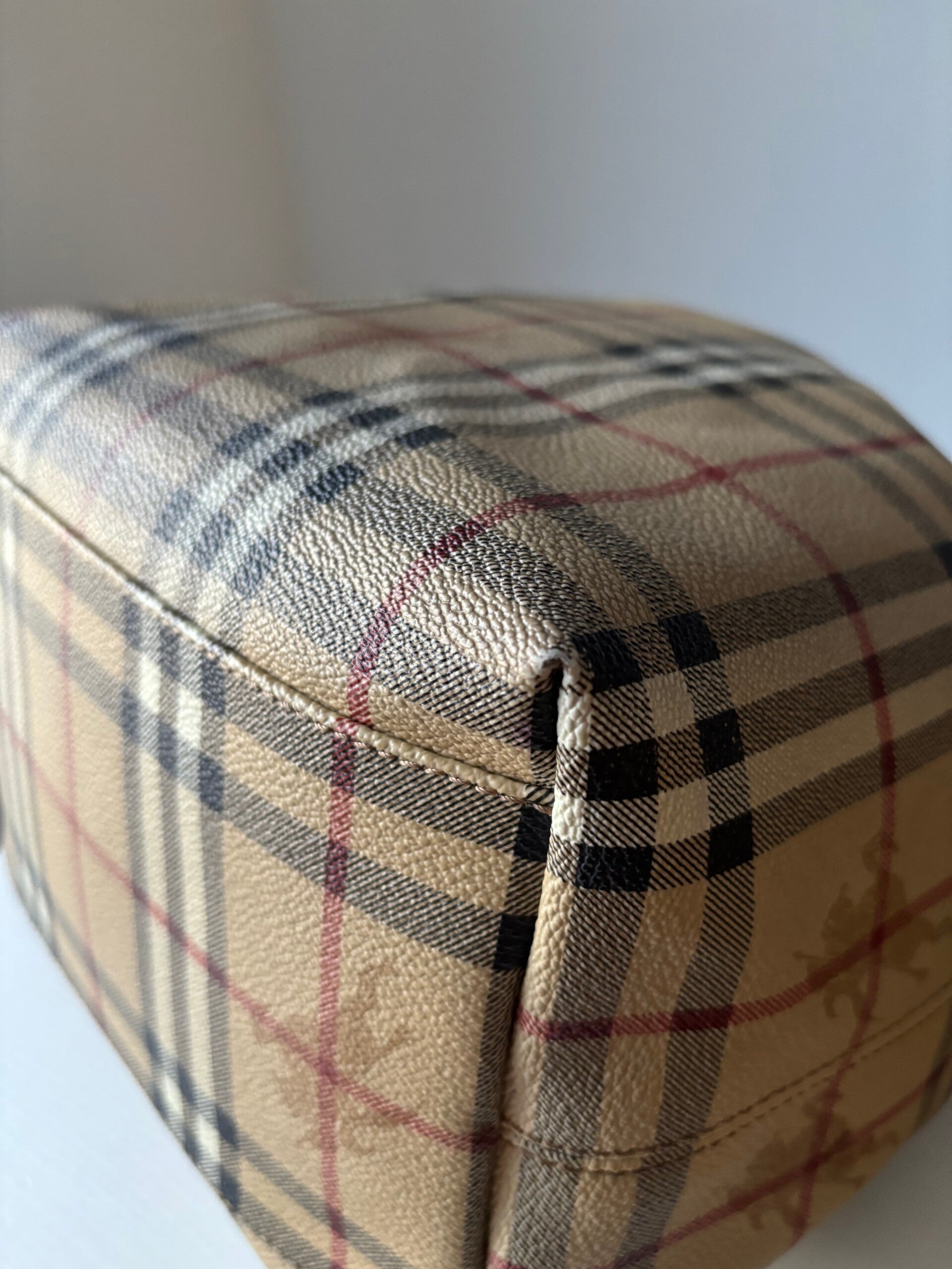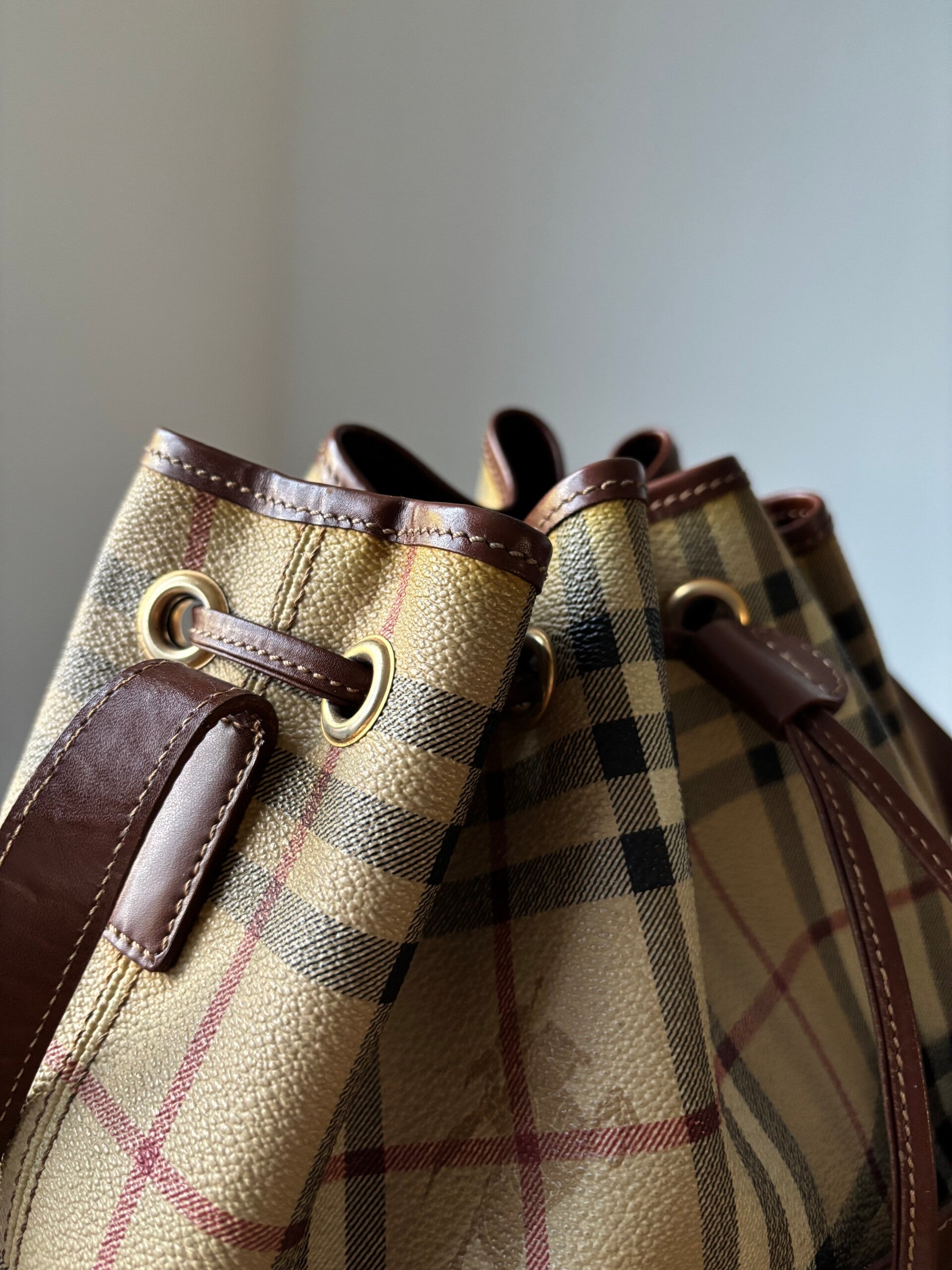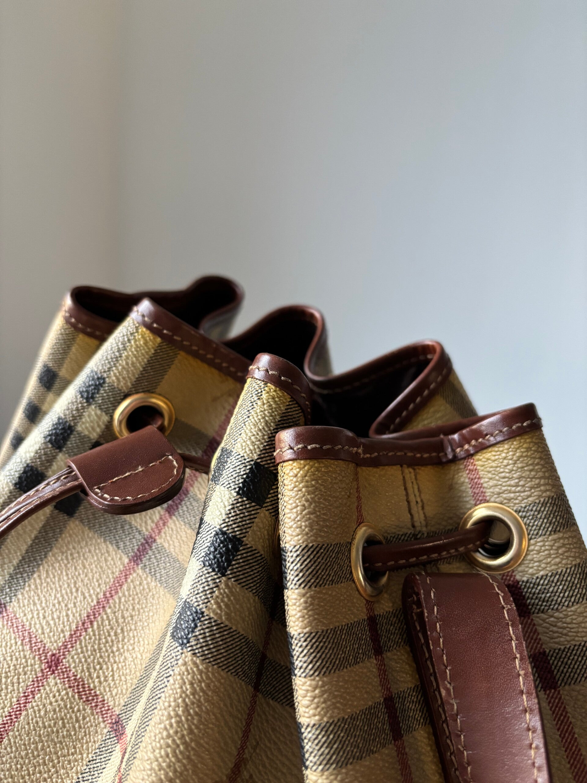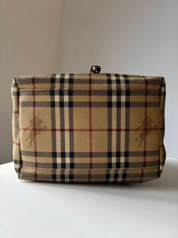 Burberry bucket in zeer goede staat. De afmetingen zijn ongeveer 25 x 25 cm. Komt inclusief Veggel Vintage certificaat van authenticiteit.