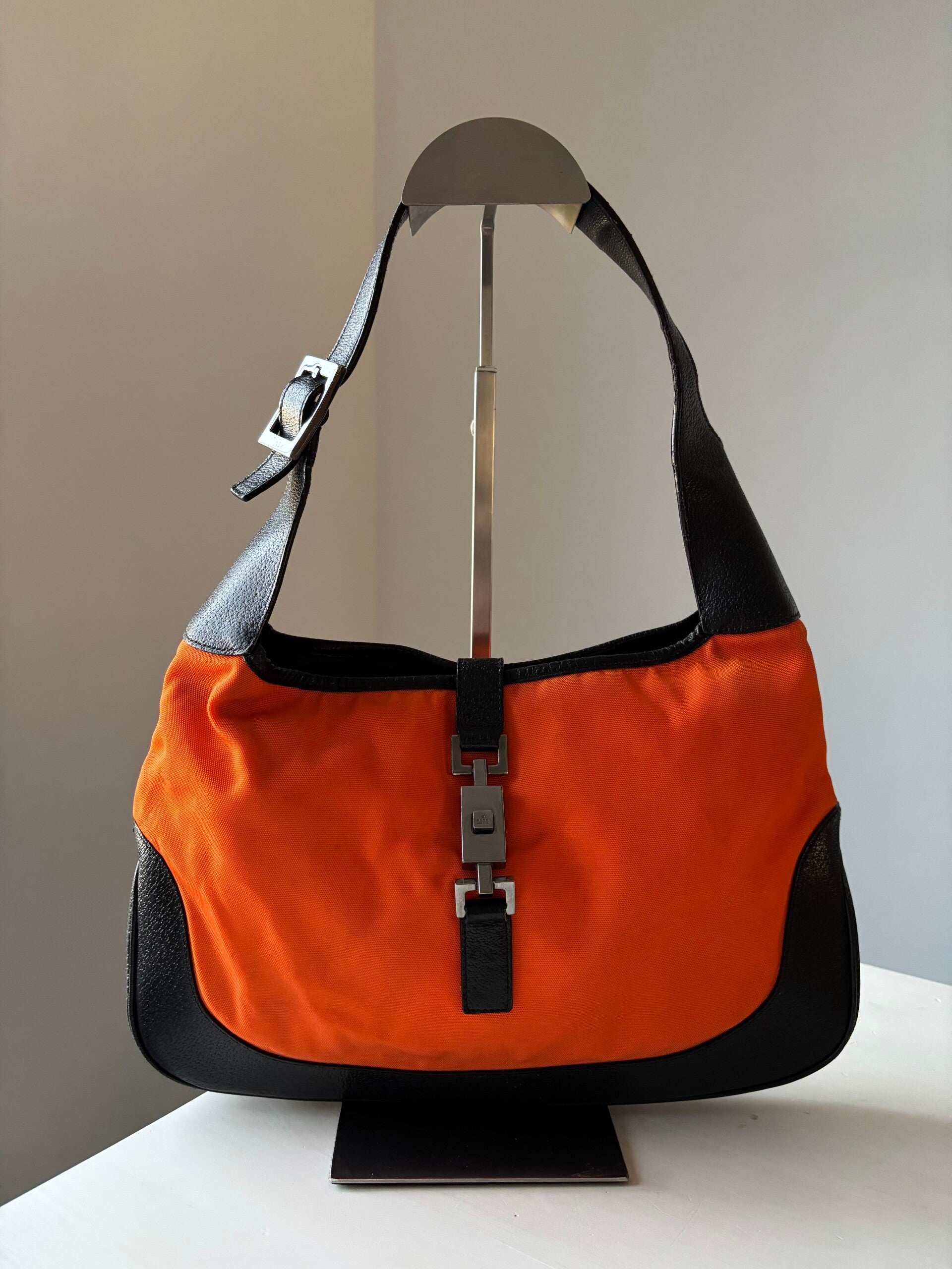 Gucci Jackie in perfecte staat. Kan over de schouder worden gedragen. De afmetingen zijn ongeveer 32 x 20 cm. Komt inclusief Veggel Vintage certificaat van authenticiteit.