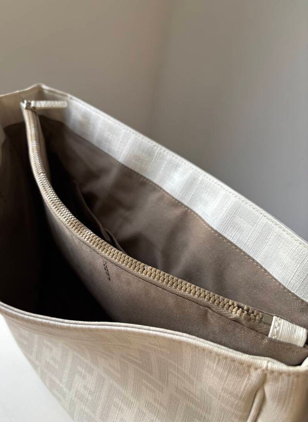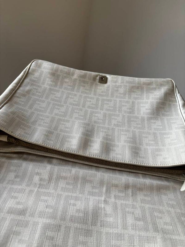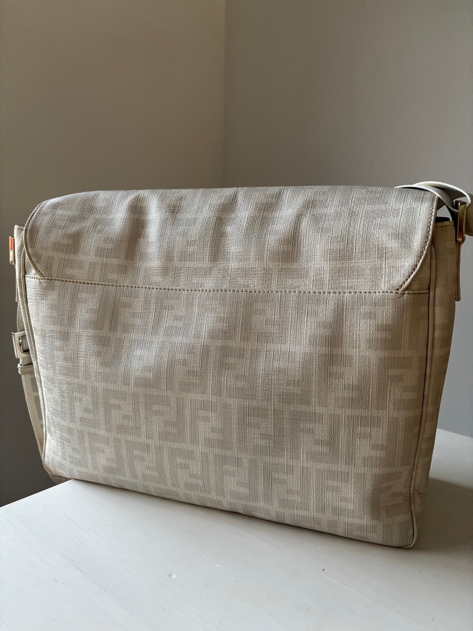 Fendi monogram messenger in zeer goede staat. Kan over de schouder en crossbody worden gedragen. De afmetingen zijn ongeveer 40 x 30 x 10 cm. Kan als luiertas worden gebruikt. De middelste rits in de tas mist een paar tandjes maar werkt prima. Komt inclusief Veggel Vintage certificaat van authenticiteit.