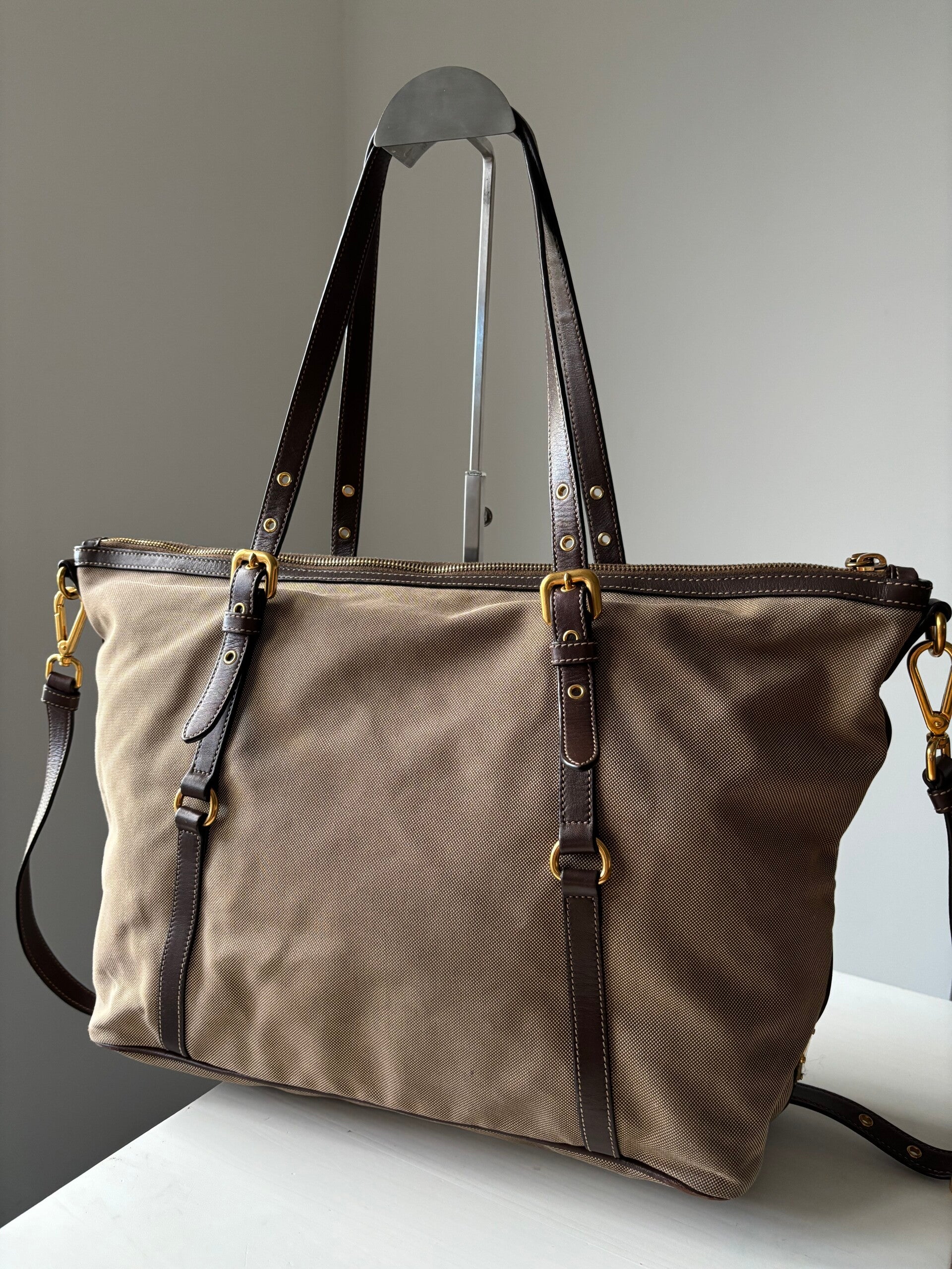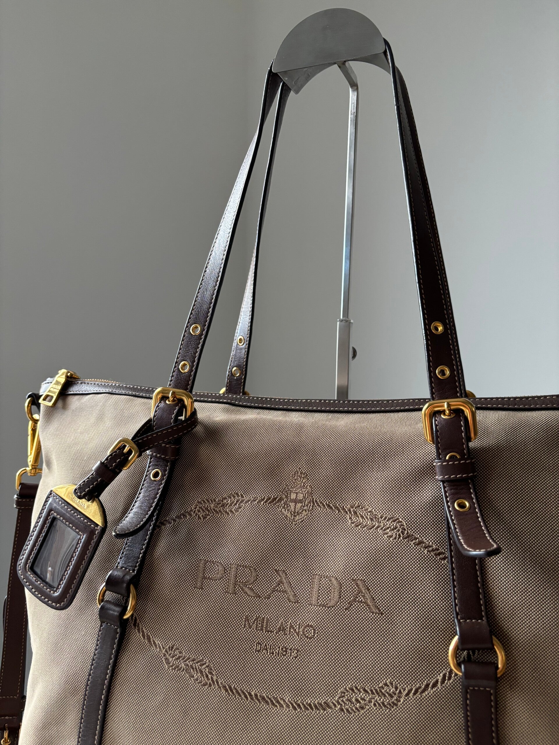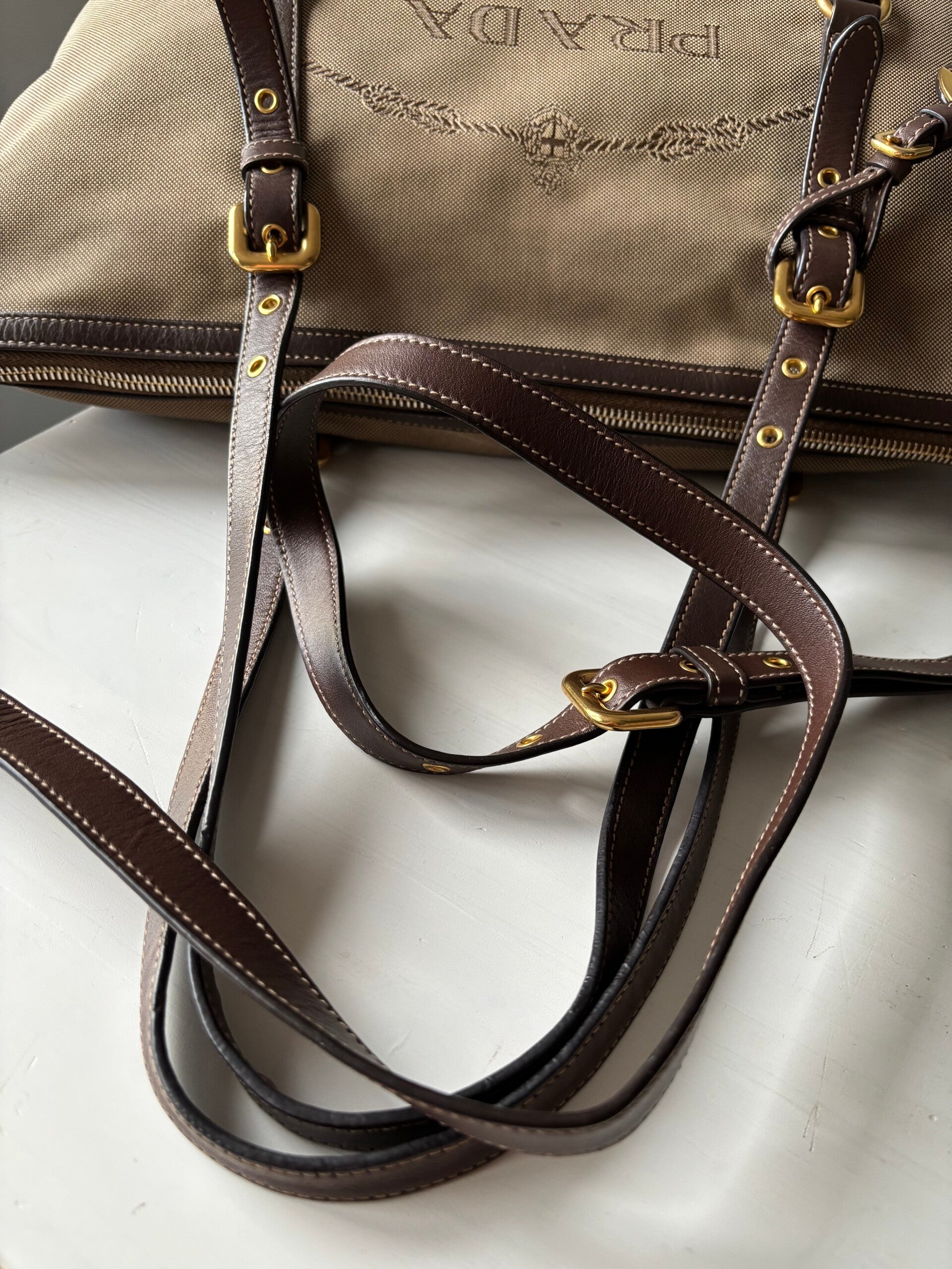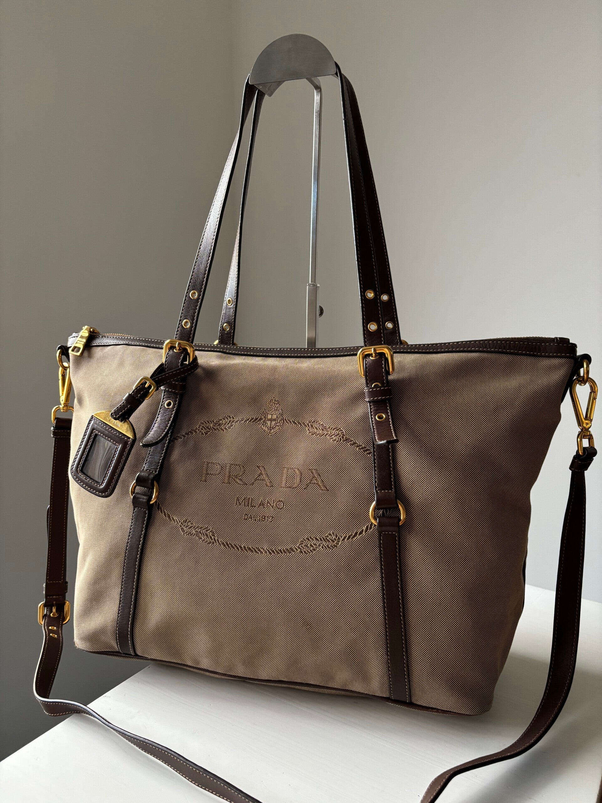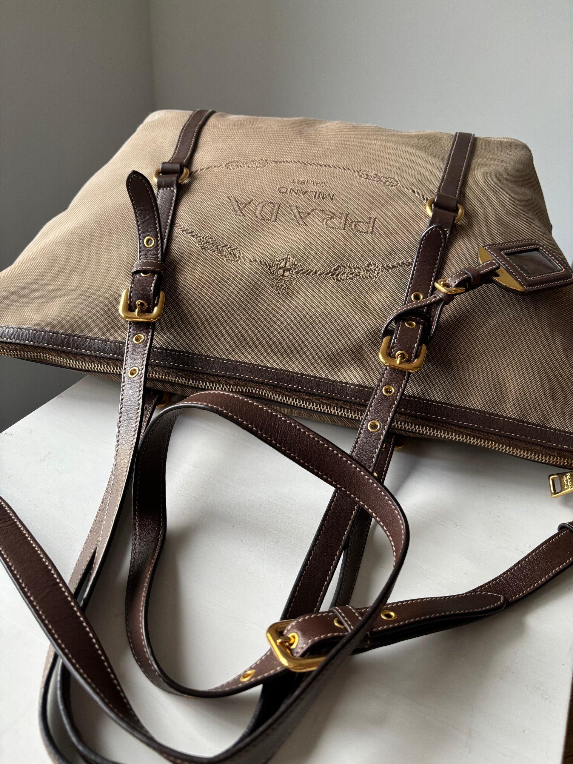 Prada tote in zeer goede staat. Kan over de schouder en crossbody worden gedragen. De afmetingen zijn ongeveer 45 x 30 cm. Komt inclusief Veggel Vintage certificaat van authenticiteit.