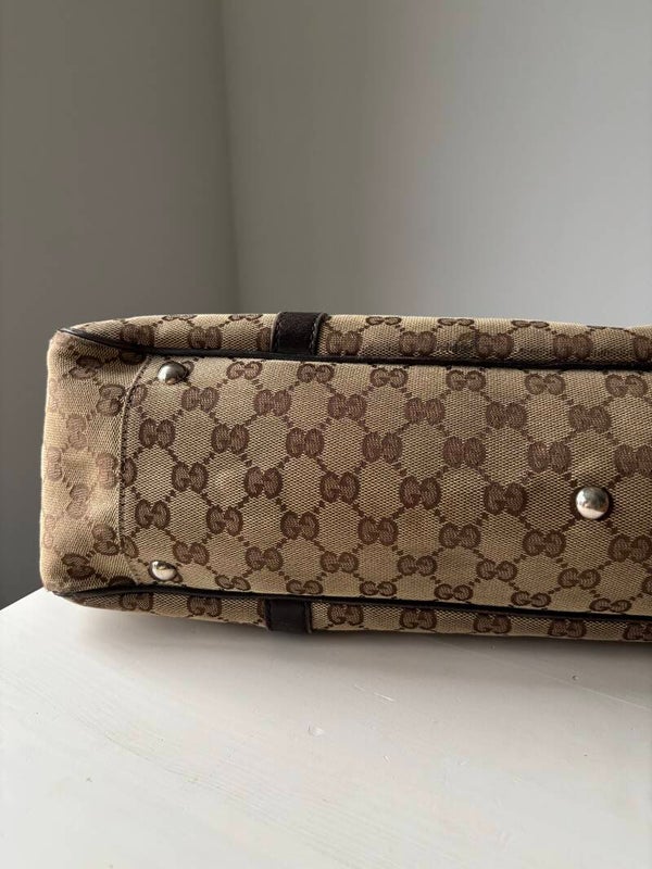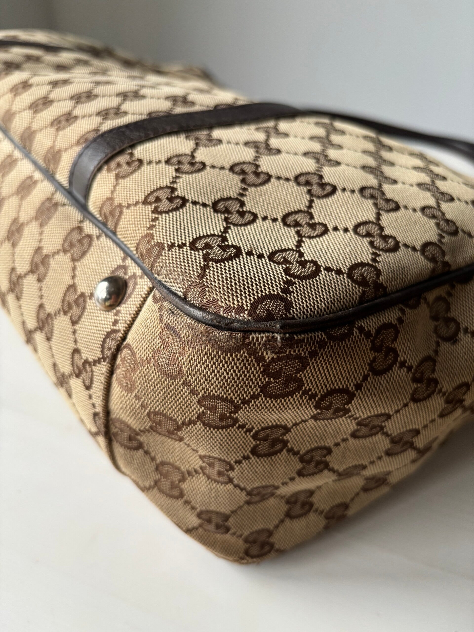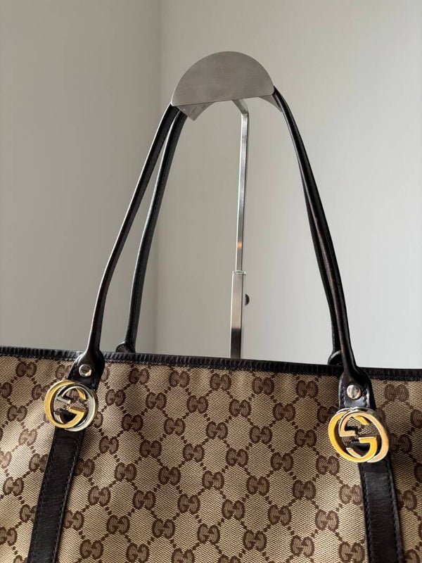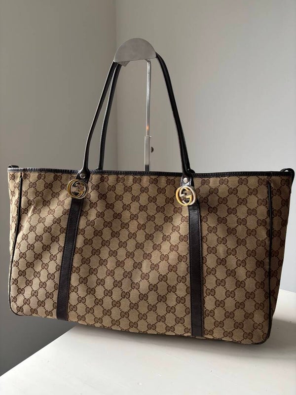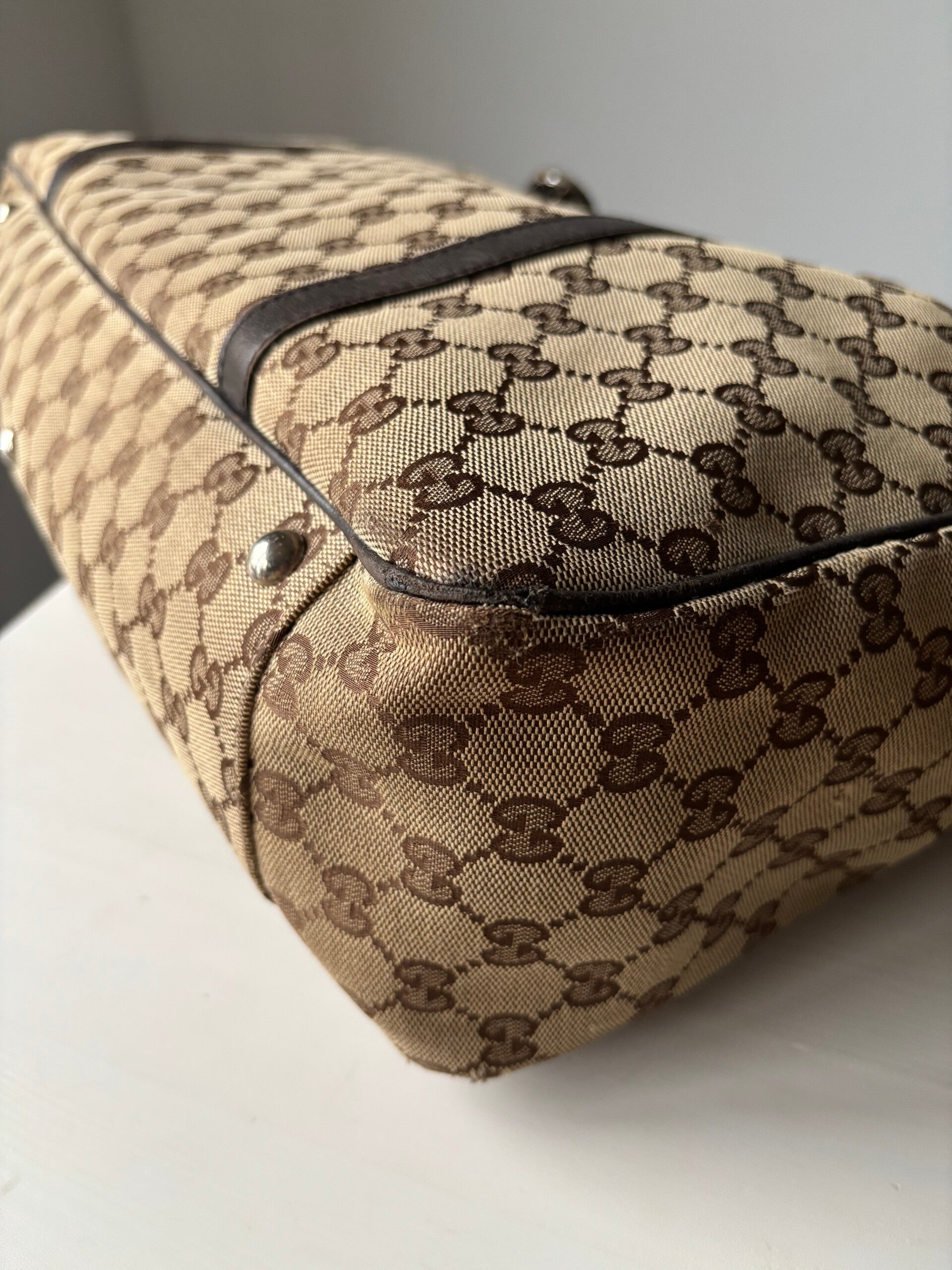 Gucci monogram twins hobo in zeer goede staat. Kan over de schouder worden gedragen. De afmetingen zijn ongeveer 45 x 27 cm. Er past een laptop in. Komt inclusief Veggel Vintage certificaat van authenticiteit.