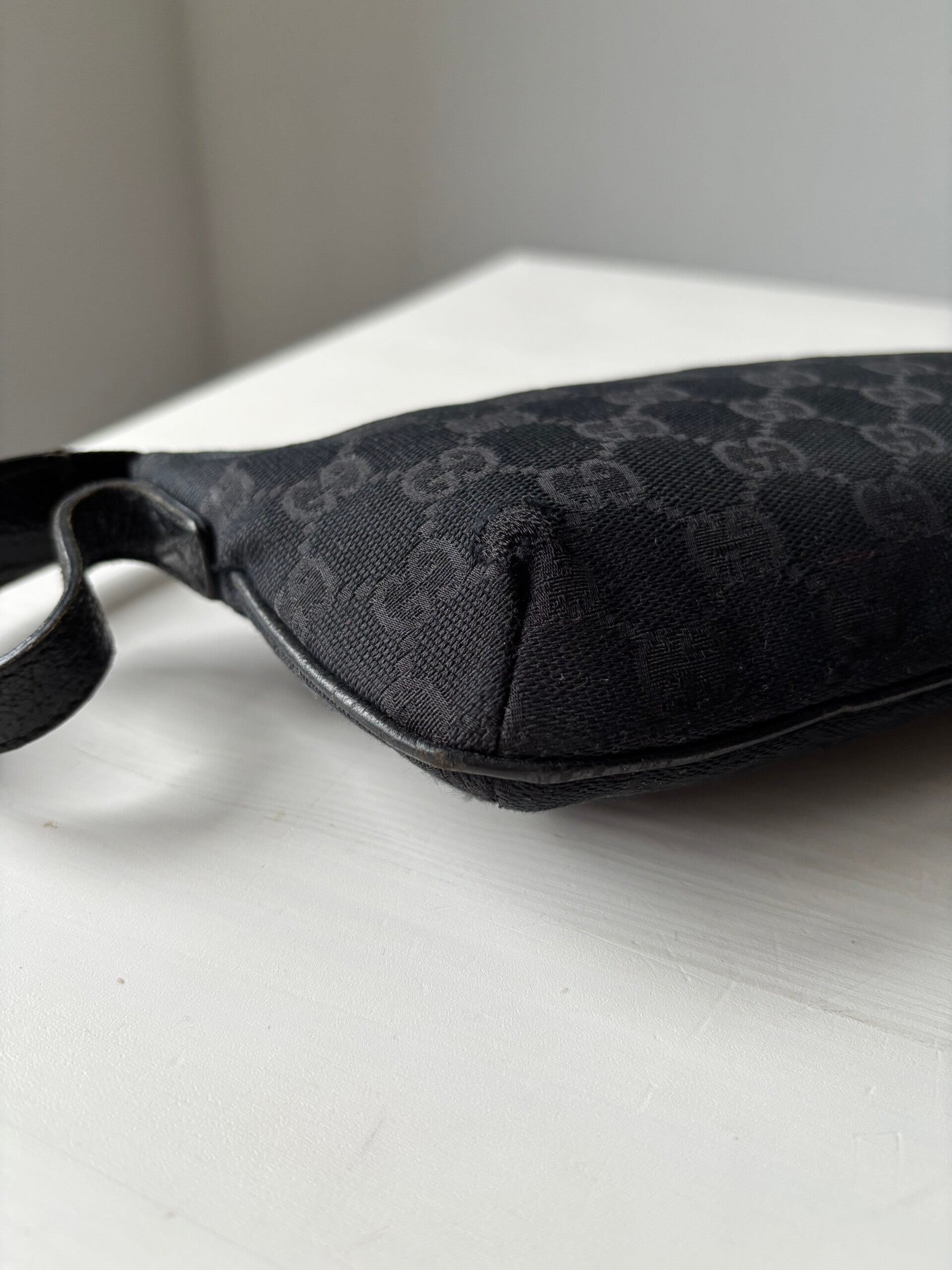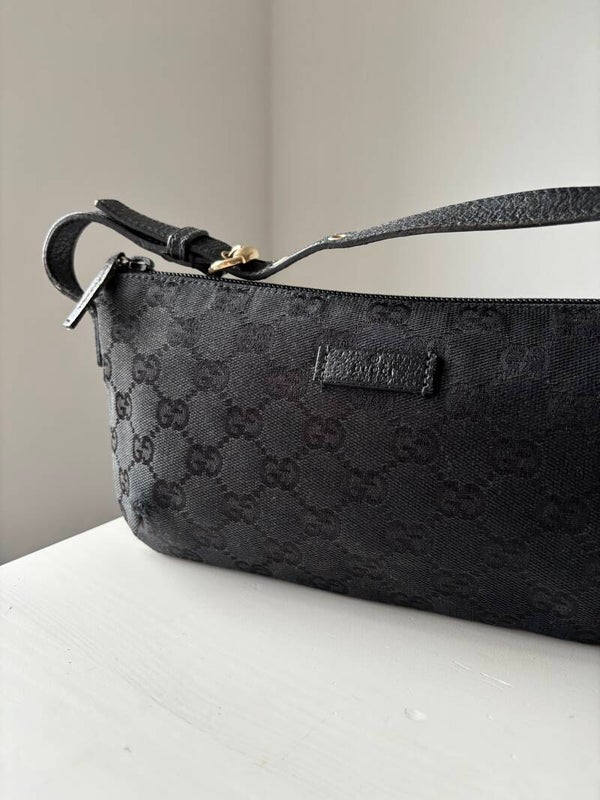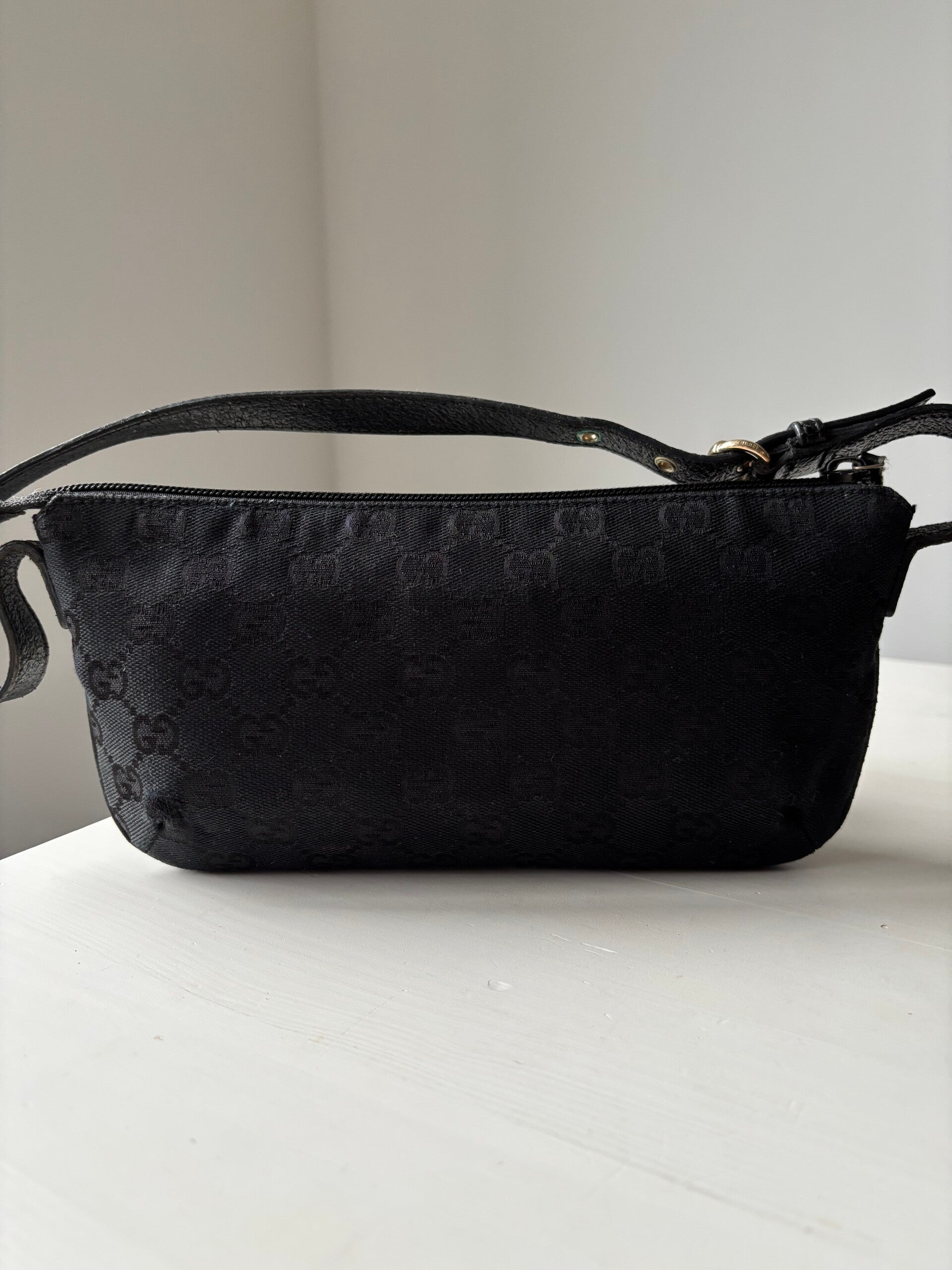 Gucci monogram pochette in goede staat. Kan over de schouder worden gedragen. De afmetingen zijn ongeveer 24 x 12 cm. Komt inclusief Veggel Vintage certificaat van authenticiteit en Veggel Vintage dustbag.