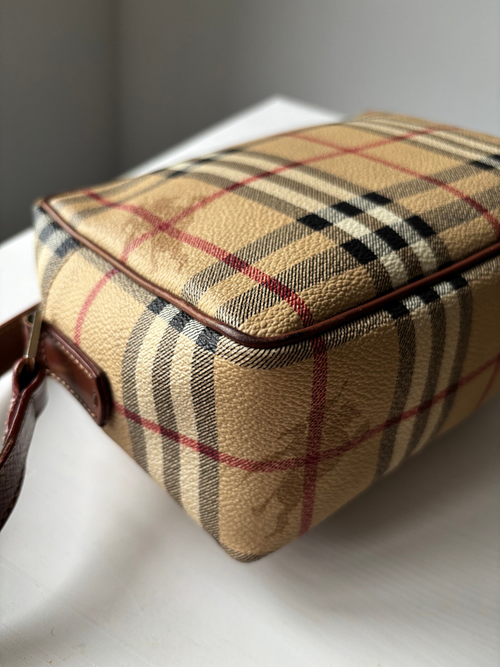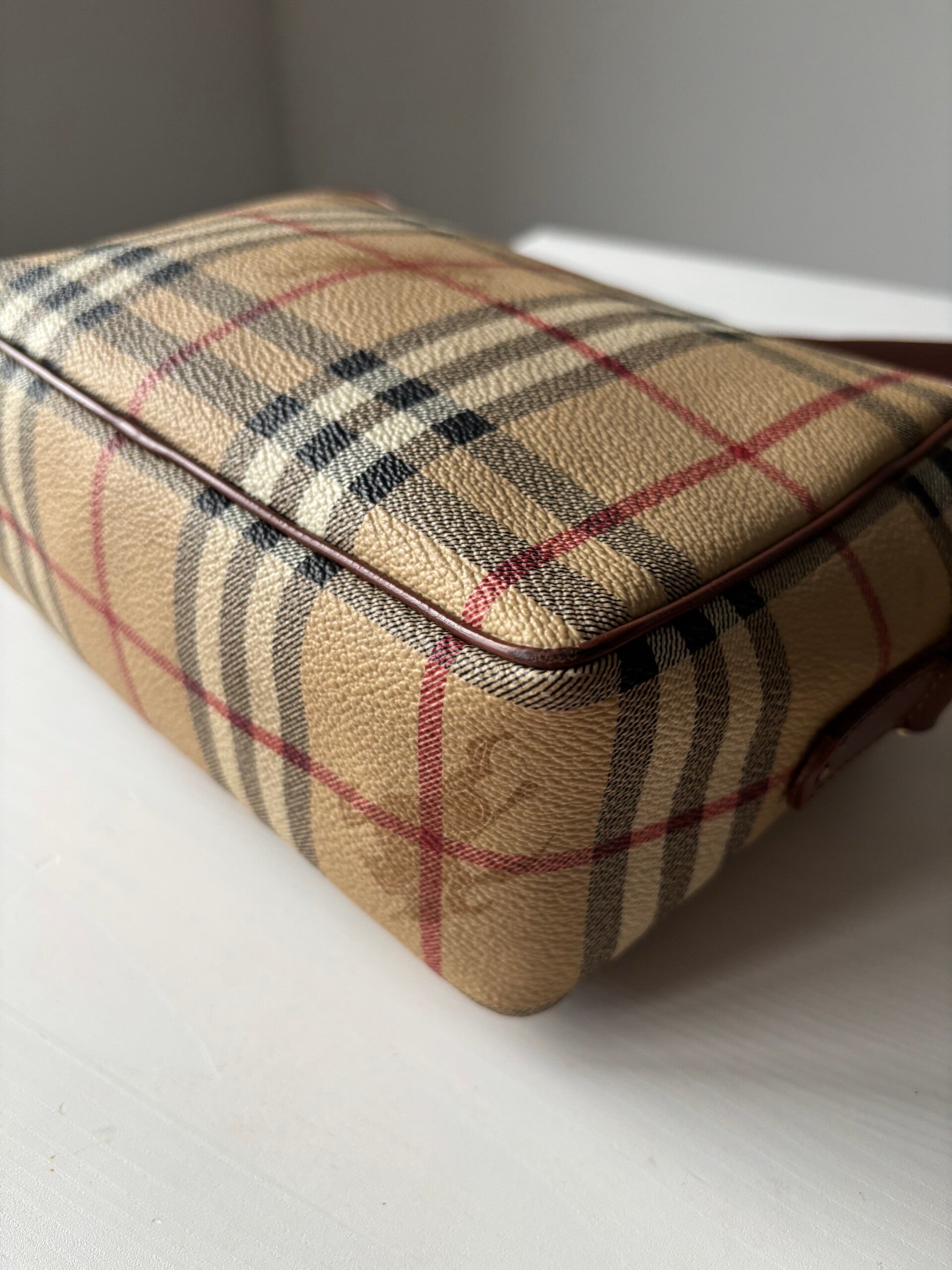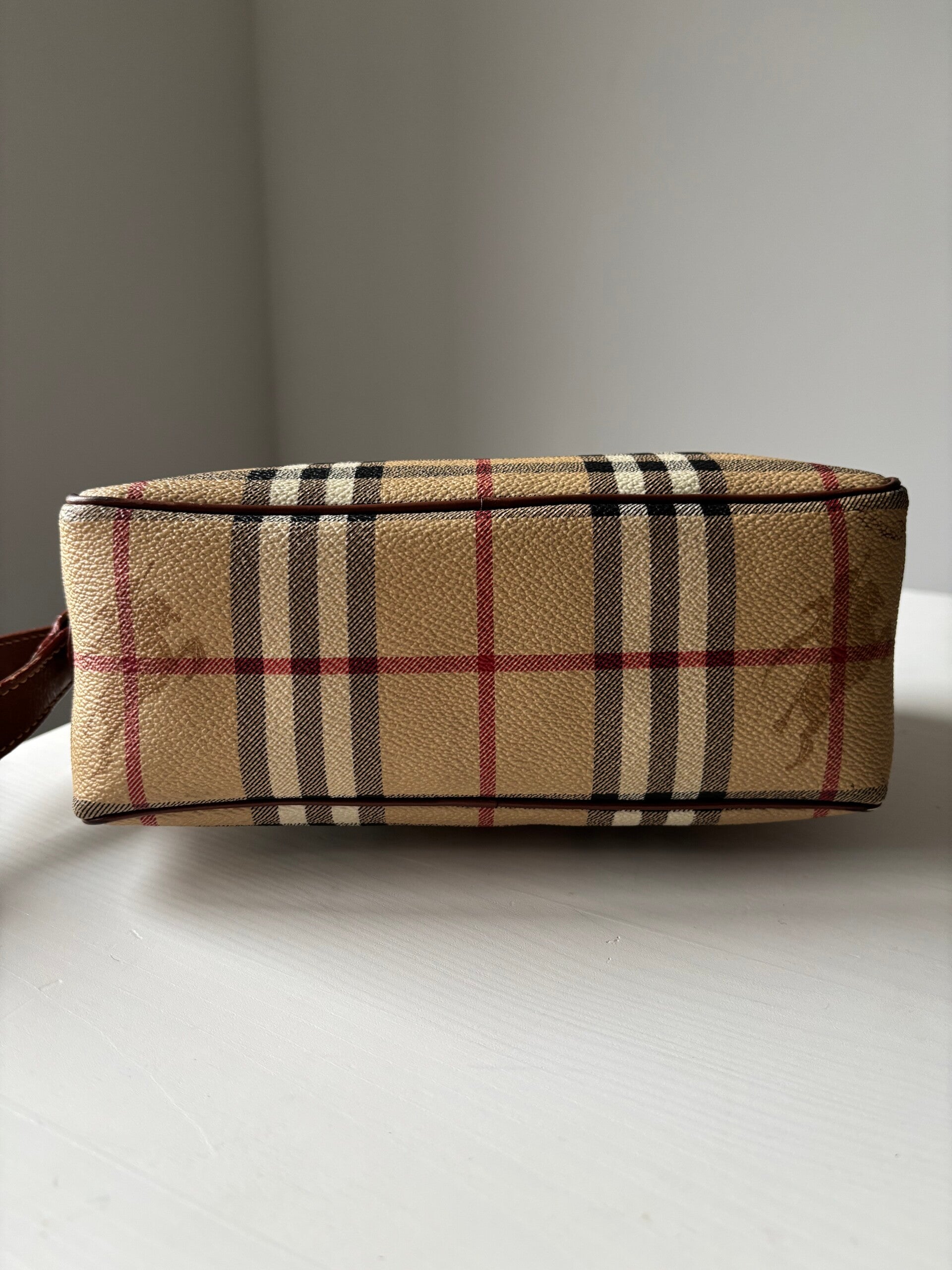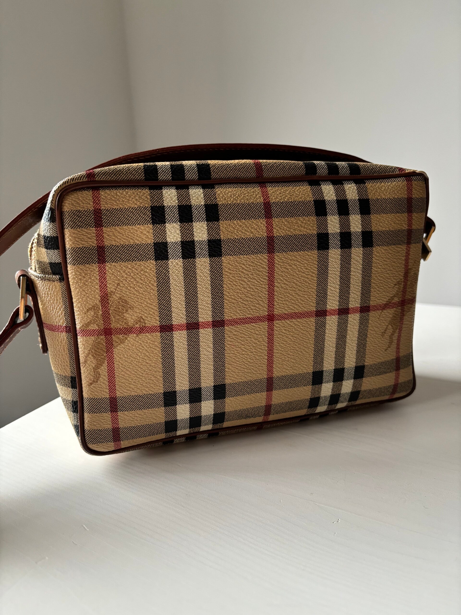 Burberry crossbody in zeer goede staat. Kan crossbody worden gedragen. De afmetingen zijn ongeveer 22 x 15 cm. Komt inclusief Veggel Vintage certificaat van authenticiteit en Veggel Vintage dustbag.