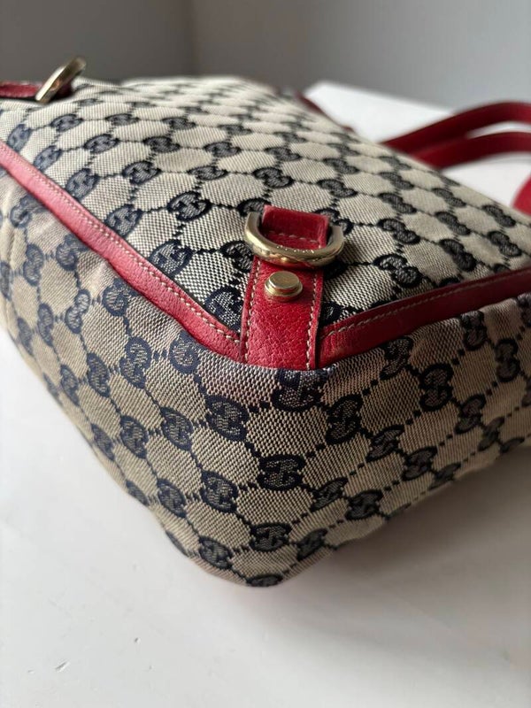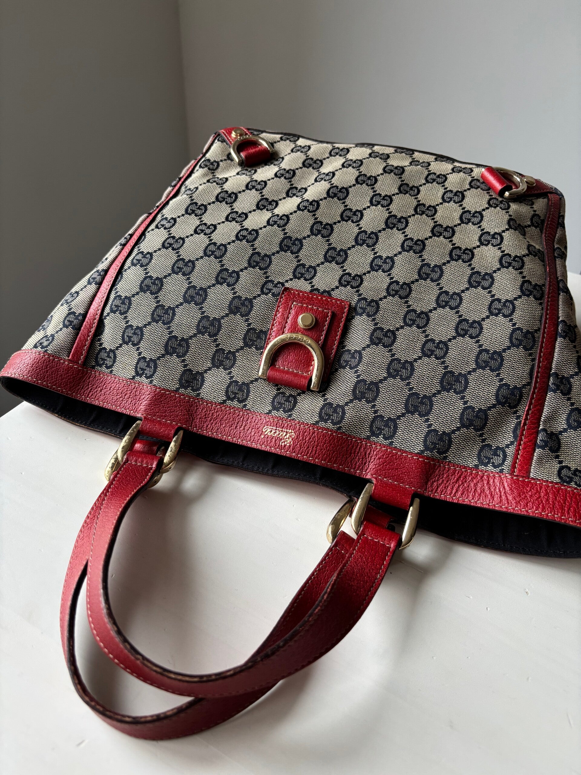 Gucci monogram tote in zeer goede staat. Kan over de schouder worden gedragen, maar houd rekening met redelijk korte straps. De afmetingen zijn ongeveer 30 x 25 cm. Komt inclusief Veggel Vintage certificaat van authenticiteit en Veggel Vintage dustbag.