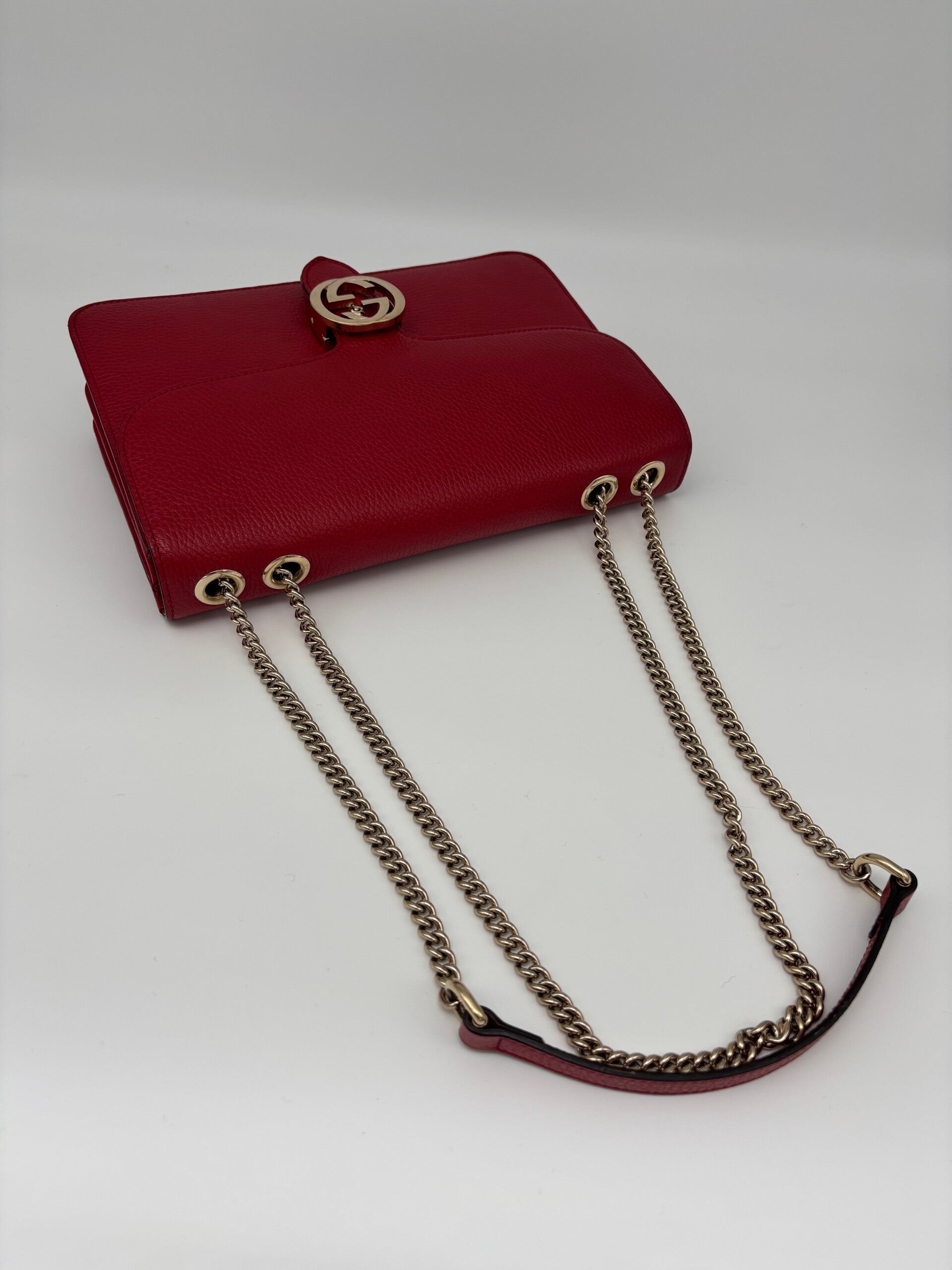 Gucci interlocking crossbody in perfecte staat. De tas kan als crossbody- en schoudertas worden gedragen. De afmetingen zijn ongeveer 24 x 20 cm. Komt inclusief Veggel Vintage certificaat van authenticiteit, Gucci dustbag en Gucci factuur