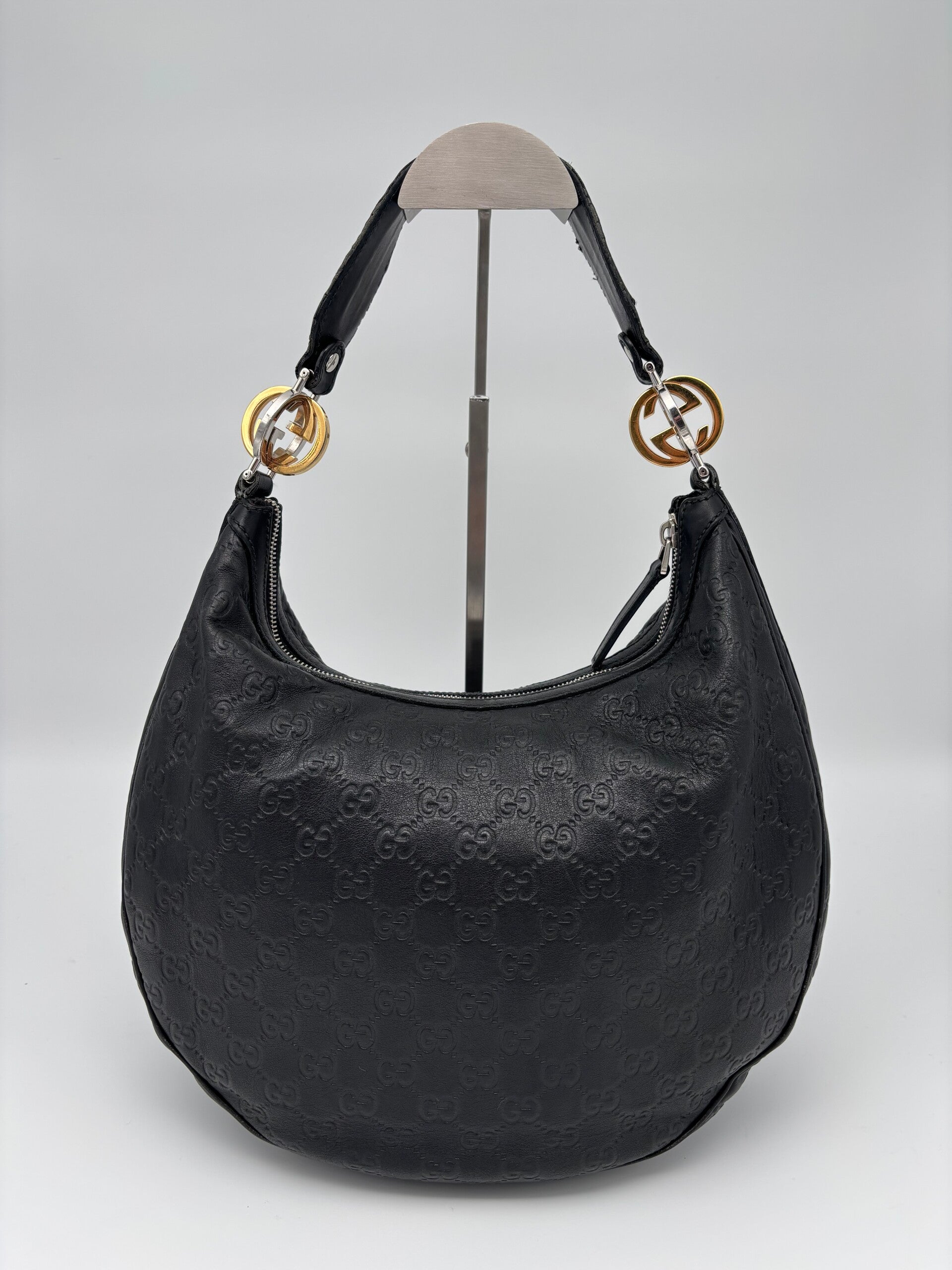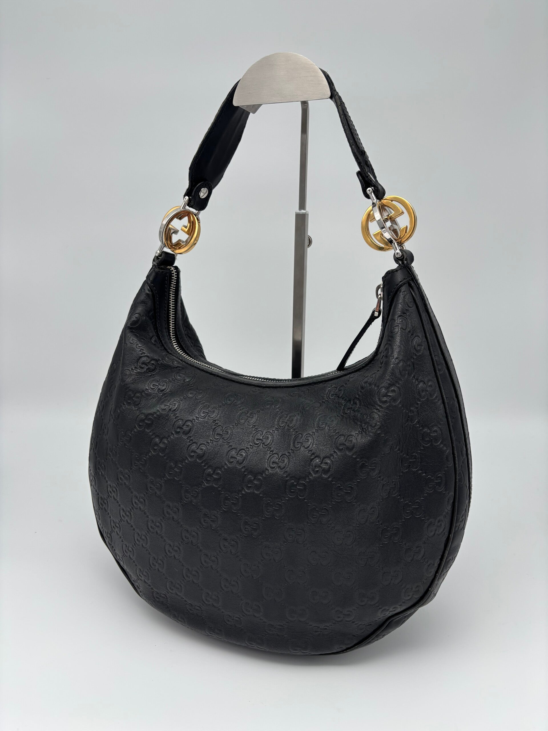 Gucci guccissima twins hobo in zeer goede staat. Kan over de schouder worden gedragen. De afmetingen zijn ongeveer 33 x 25 cm exclusief strap. Komt inclusief Veggel Vintage certificaat van authenticiteit en Veggel Vintage dustbag.