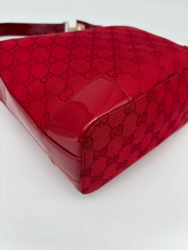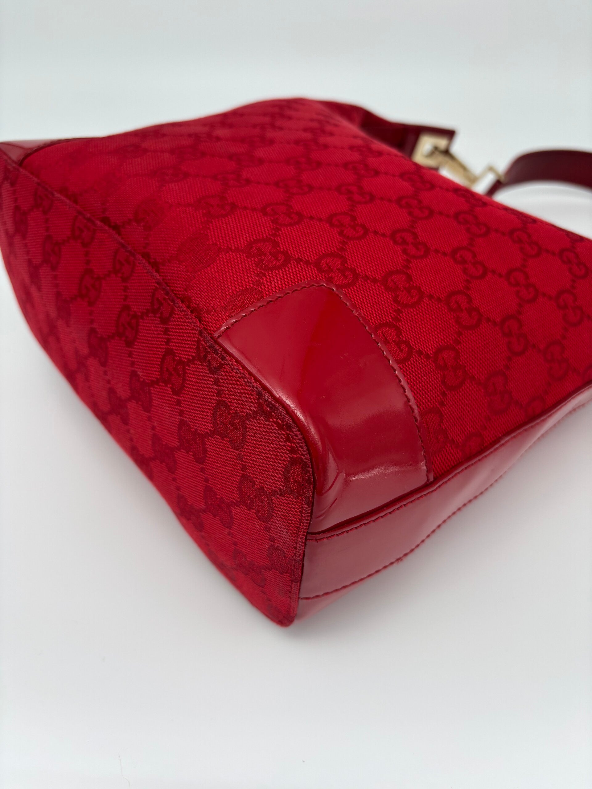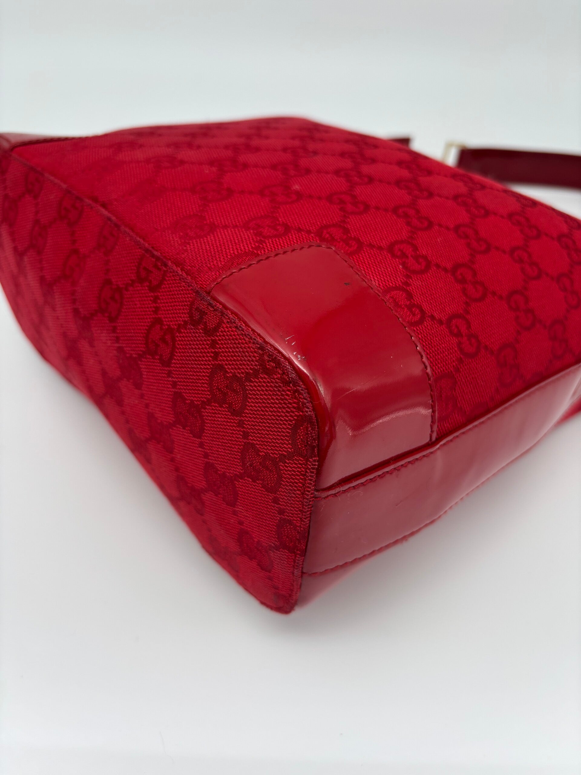 Gucci monogram schoudertas in perfecte staat. Kan over de schouder worden gedragen. De afmetingen zijn ongeveer 25 x 25 cm. Komt inclusief Veggel Vintage certificaat van authenticiteit.