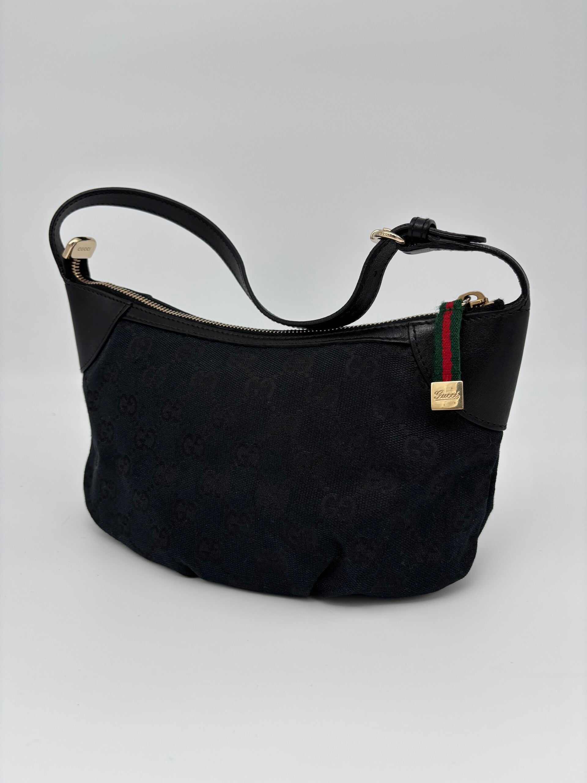 Gucci monogram pochette in perfecte staat. Kan over de schouder worden gedragen. De afmetingen zijn ongeveer 20 x 11 cm. Komt inclusief Veggel Vintage certificaat van authenticiteit.